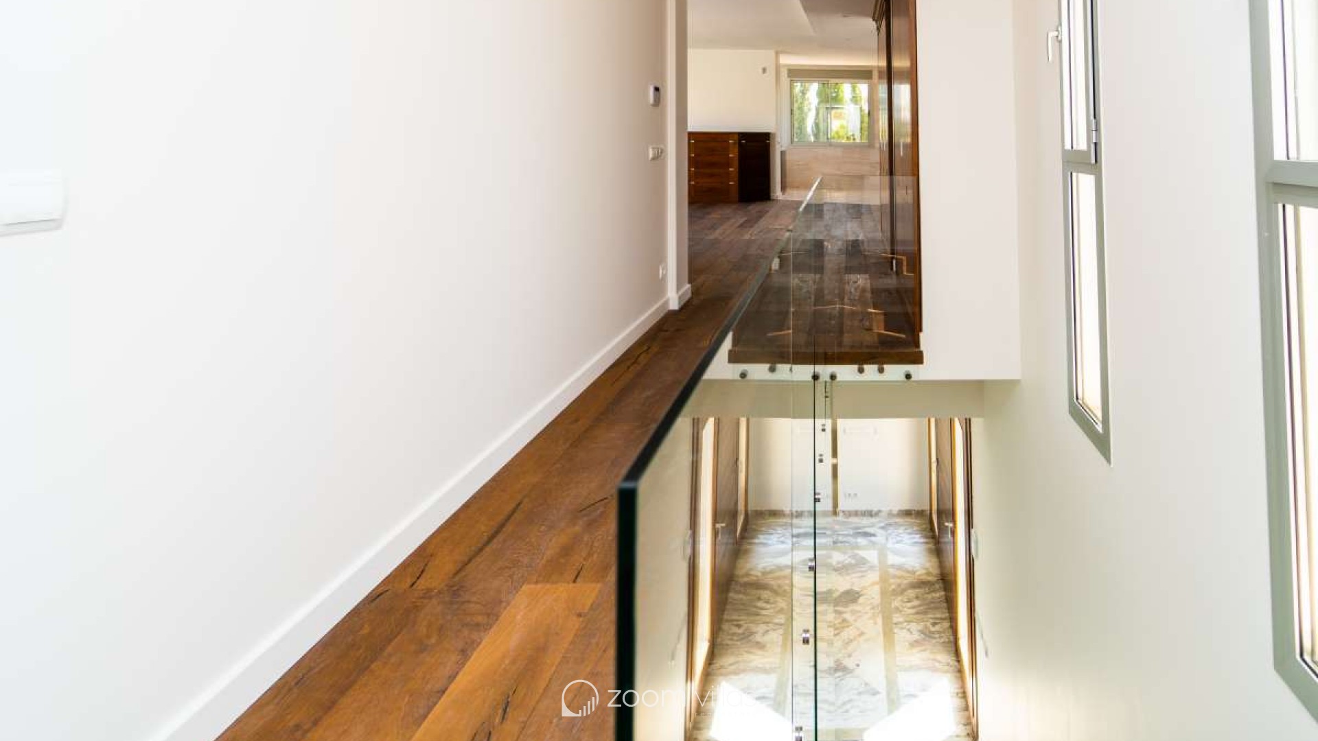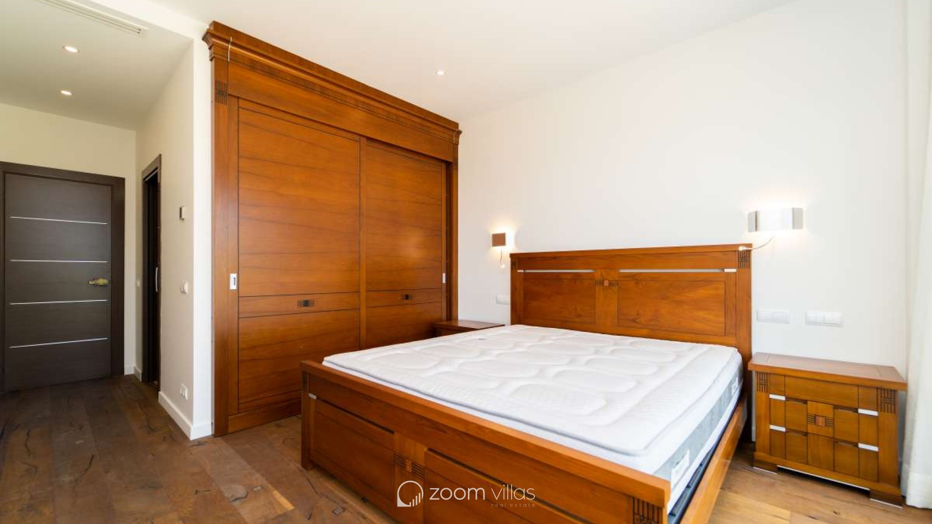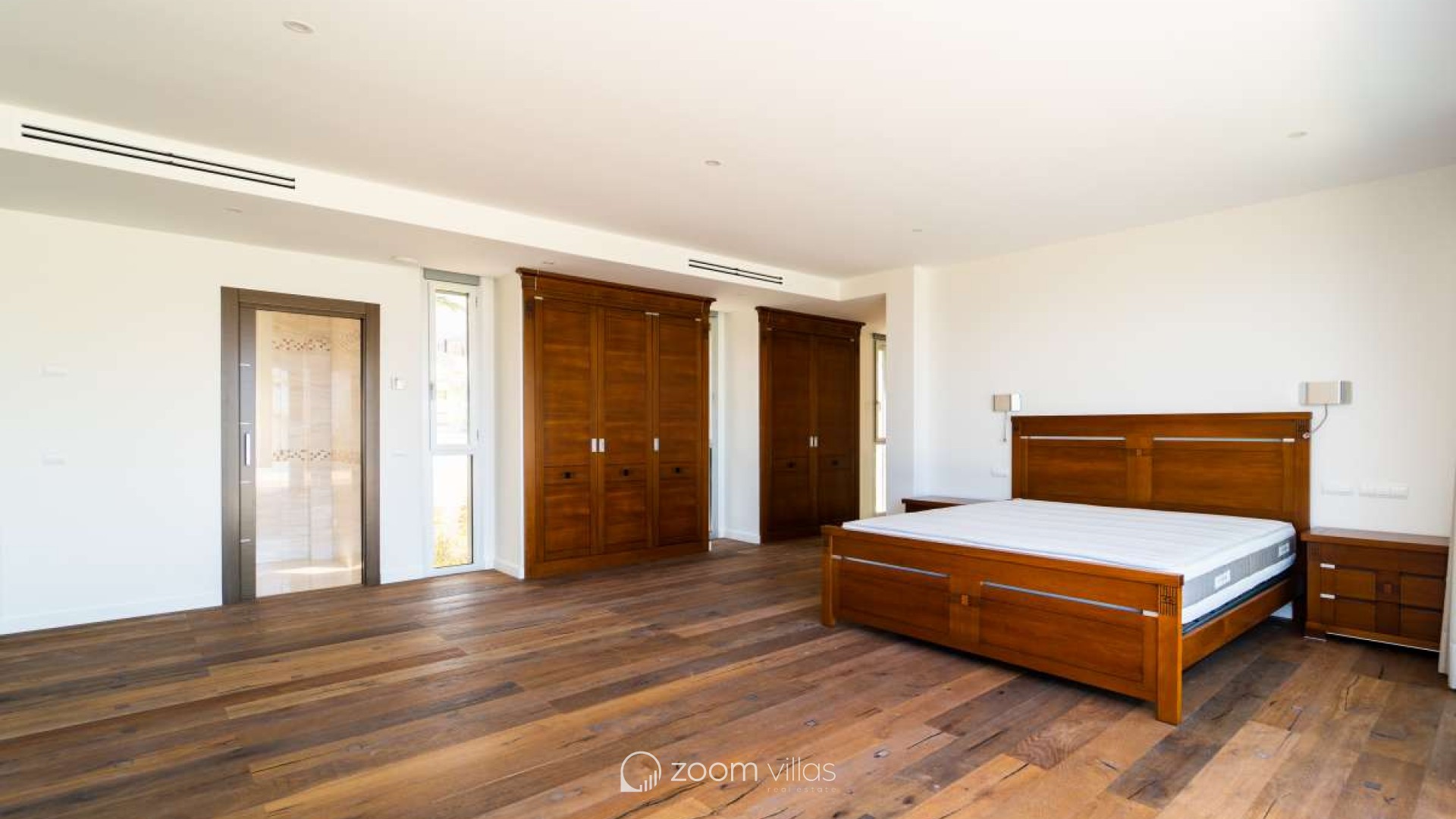 Das Obergeschoss wird ausschließlich für ein geräumiges Schlafzimmer der Mastersuite und ein Bürozimmer genutzt, die beide eine spektakuläre Aussicht und eine große private Terrasse bieten. Das Haus verfügt auch über eine Garage mit Platz für 2 Autos und Außenparkplätze, die beide im unteren Stockwerk über Ladegeräte für Elektroautos verfügen. Weitere Räume auf dieser Etage sind ein Waschbecken, eine Waschküche, eine Sauna mit Innenpool, ein Badezimmer und ein schöner Holzkeller. Und bei genauerem Hinsehen gibt es noch viel mehr zu entdecken.