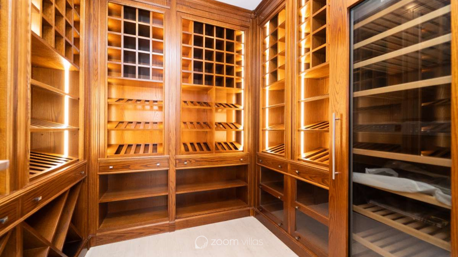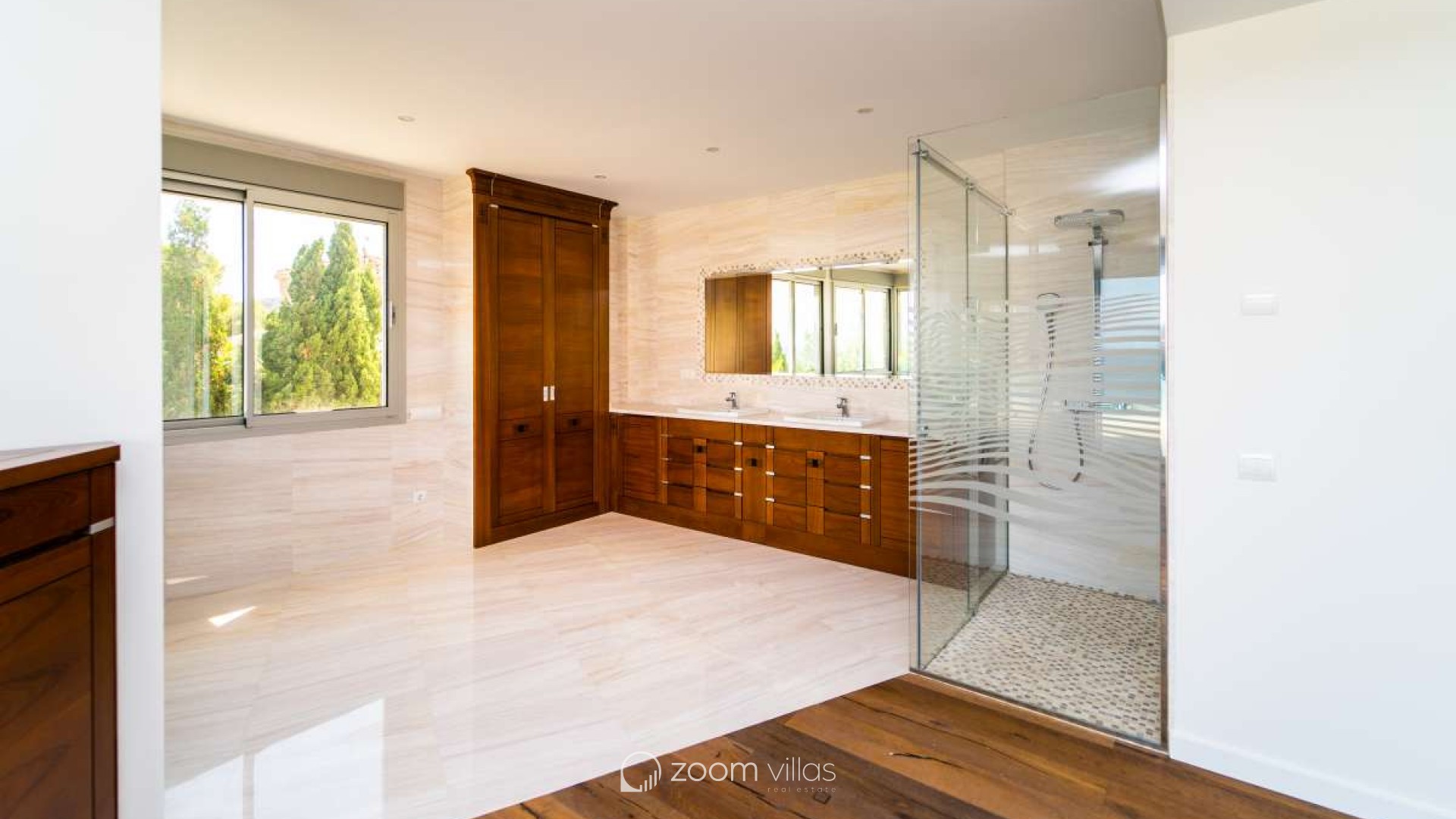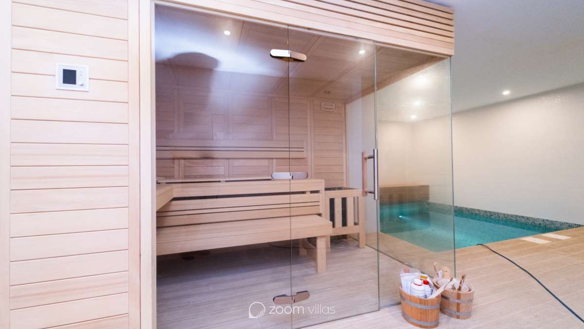 Das Obergeschoss wird ausschließlich für ein geräumiges Schlafzimmer der Mastersuite und ein Bürozimmer genutzt, die beide eine spektakuläre Aussicht und eine große private Terrasse bieten. Das Haus verfügt auch über eine Garage mit Platz für 2 Autos und Außenparkplätze, die beide im unteren Stockwerk über Ladegeräte für Elektroautos verfügen. Weitere Räume auf dieser Etage sind ein Waschbecken, eine Waschküche, eine Sauna mit Innenpool, ein Badezimmer und ein schöner Holzkeller. Und bei genauerem Hinsehen gibt es noch viel mehr zu entdecken.
