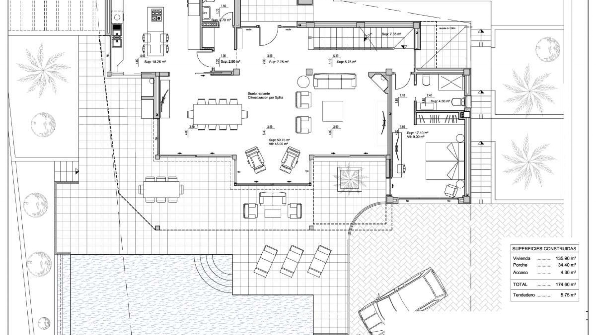 Das Haus ist in drei geräumige Stockwerke unterteilt und besteht aus Glaswänden an der Vorderseite mit einer großzügigen Optimierung von Holz und Stein in einem empfindlichen Gleichgewicht, das versucht, den Raum zu maximieren, ohne von dem abzuschrecken, was am wichtigsten ist: das Haus in ein Heim zu verwandeln. Vollständig ausgestattet mit hochwertigen Einbauten und Ausstattungen in einem gut automatisierten Heimsystem, besteht dieses Haus mit 3 Schlafzimmern und 3 Bädern nur aus Marmorböden, Sonnenkollektoren, aerothermischen Oberflächen, Zentralheizung und Klimaanlage, um Ihren Aufenthalt so komfortabel und nahtlos wie möglich zu gestalten.