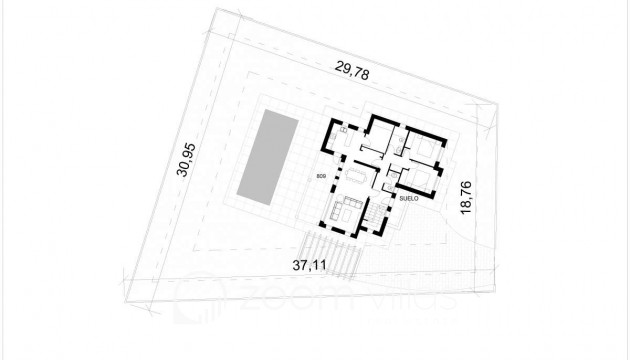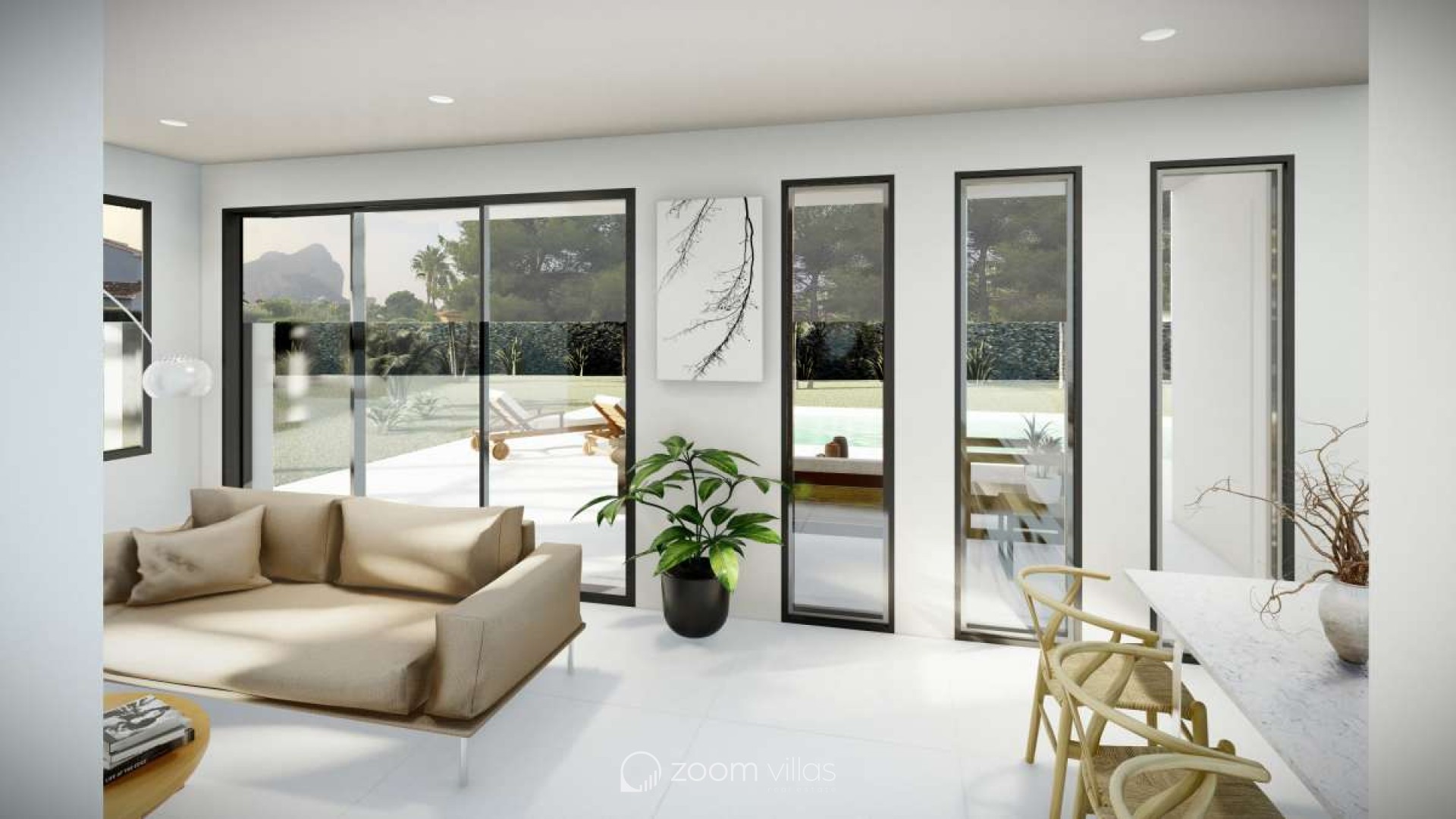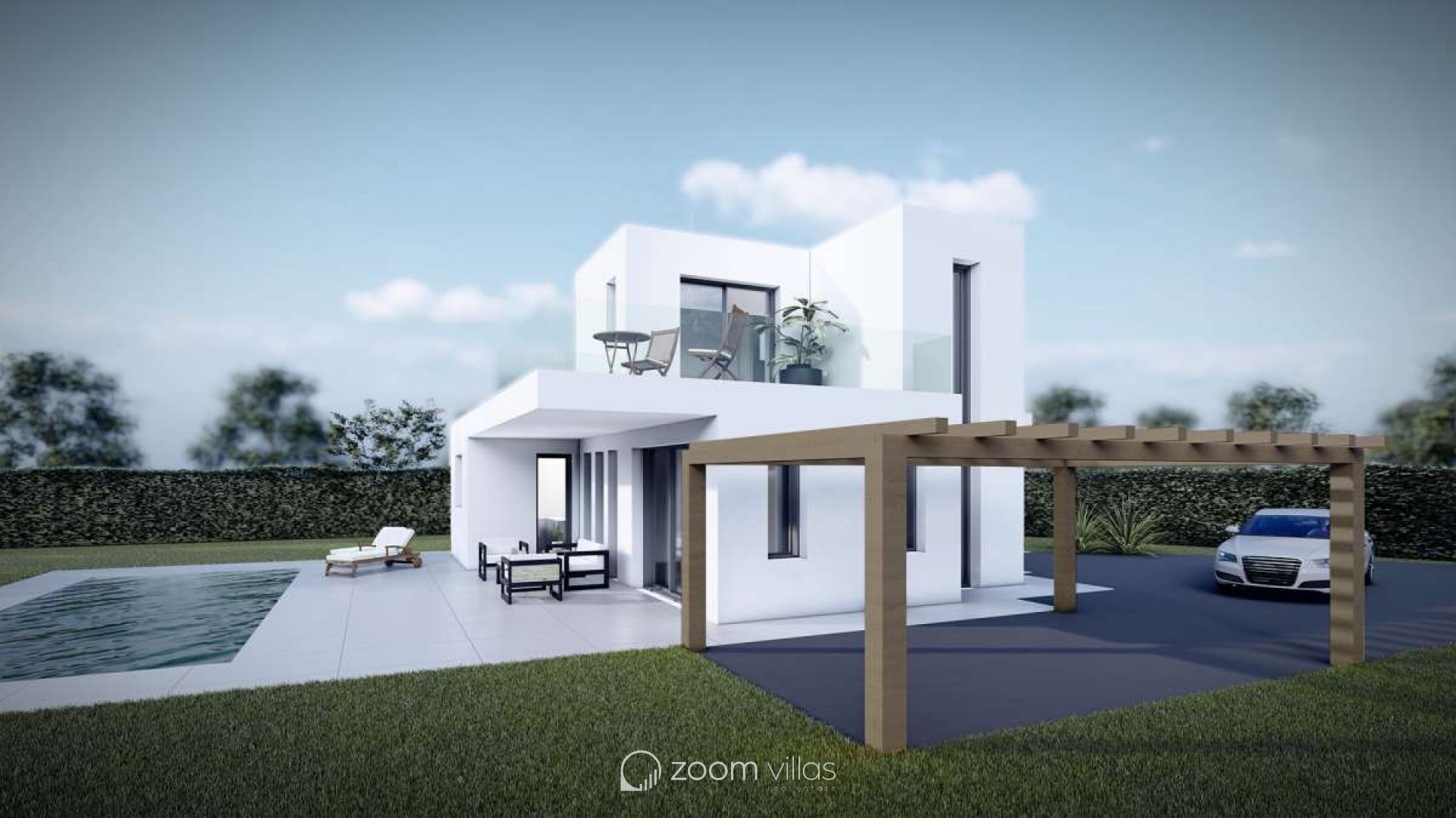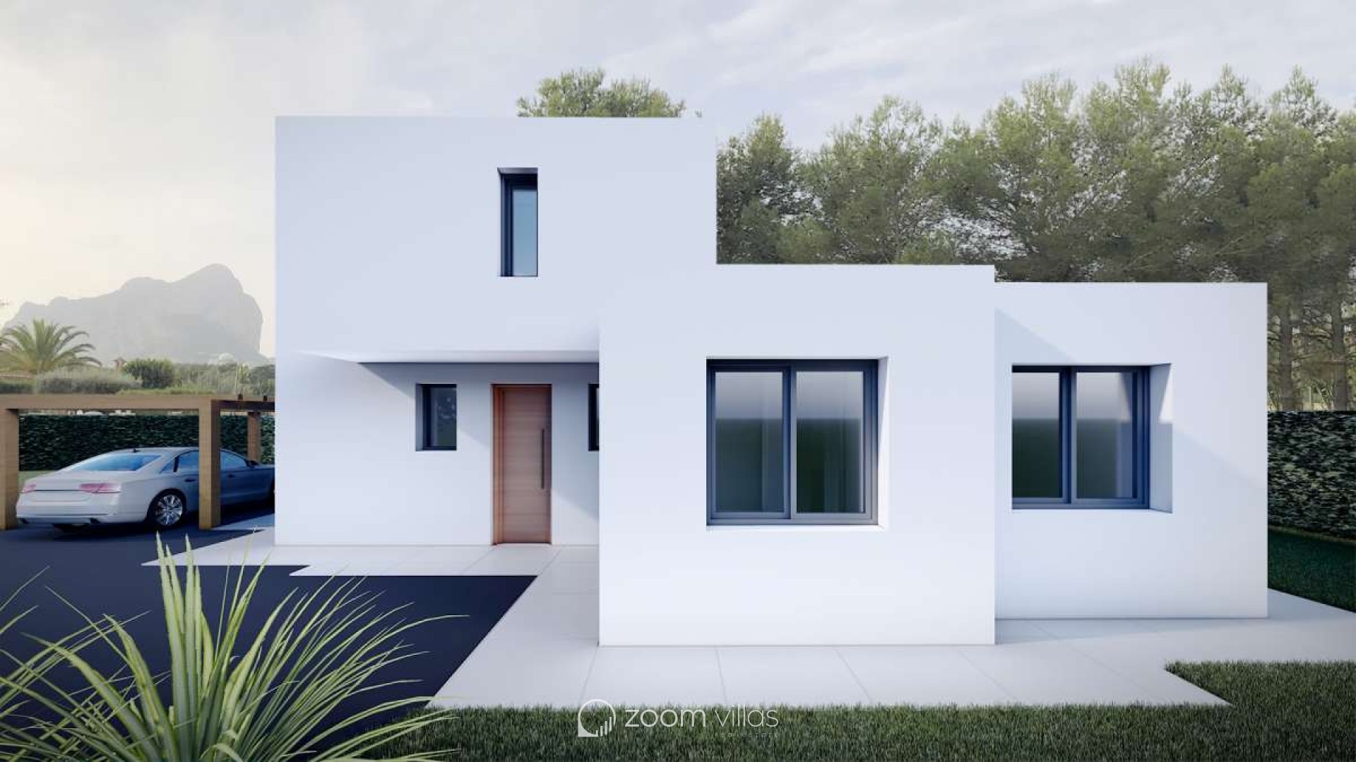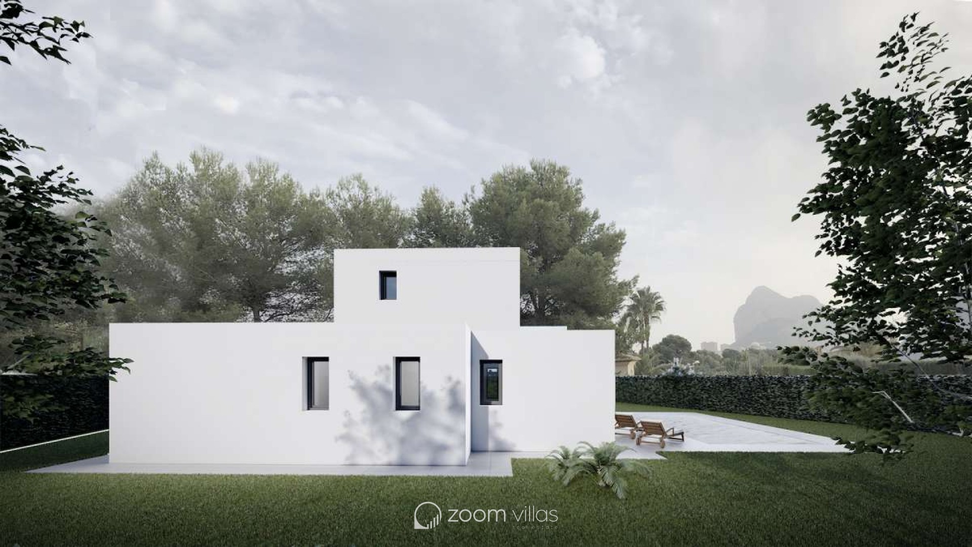 Auf einem großen Grundstück von 800 m2 gelegen, zeichnet sich das Haus durch seine geraden Linien und klaren Größen aus. Diese Volumen sind zum Pool-Terrassenbereich verglast, nutzen die Südausrichtung und schaffen einen Chill-Out-Bereich neben dem Pool, ideal, um die malerische Aussicht zu genießen.