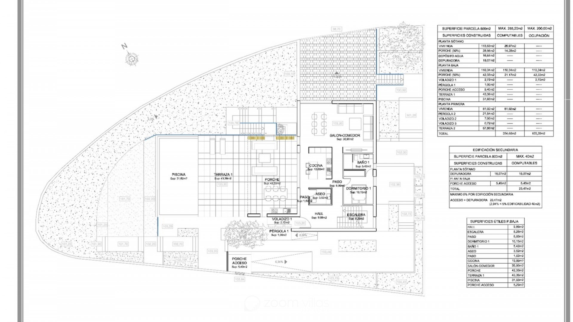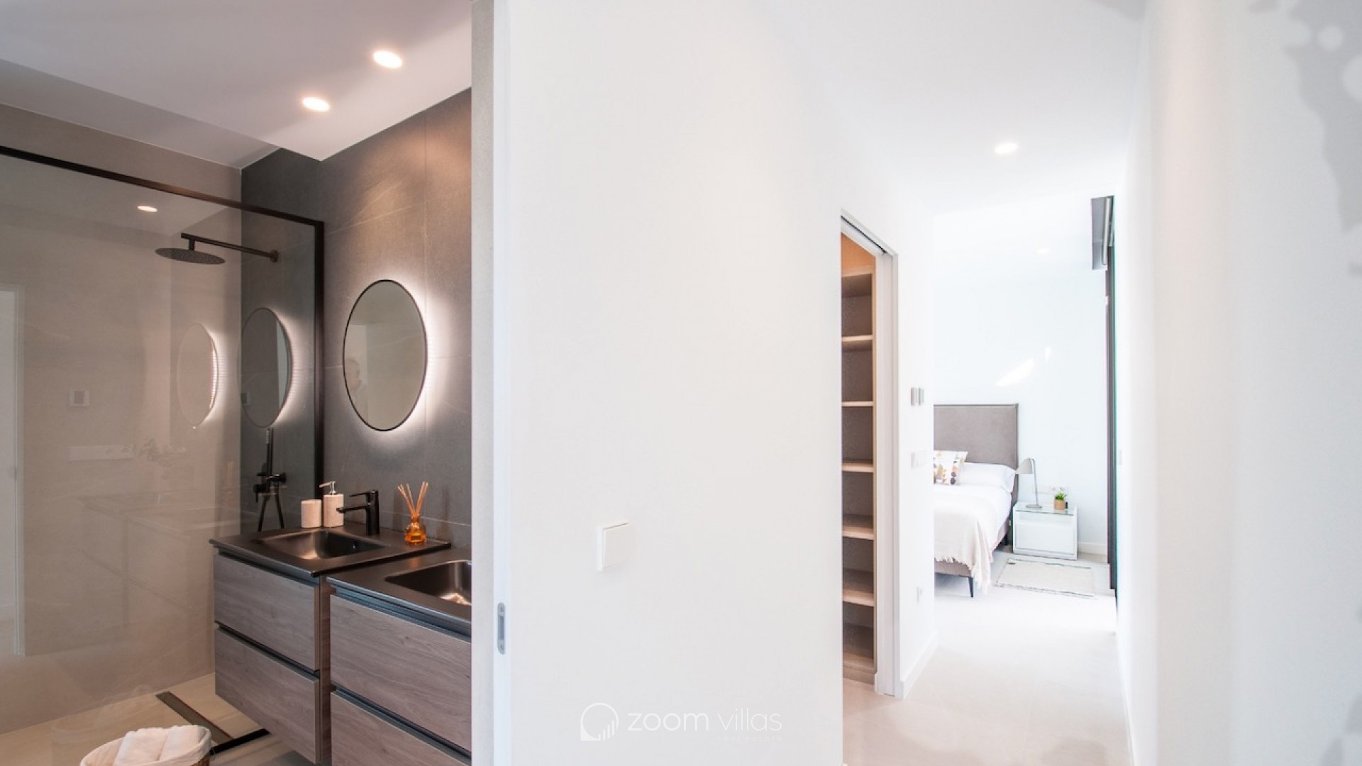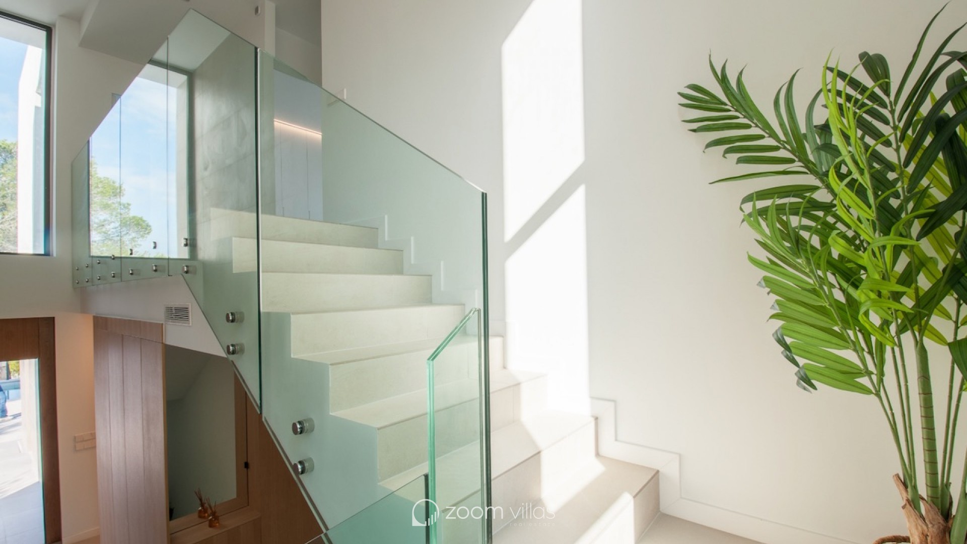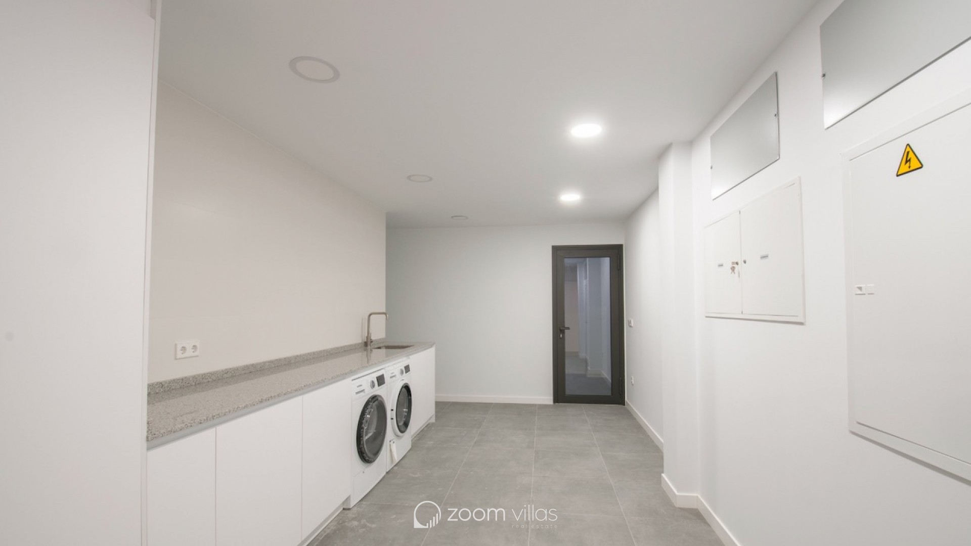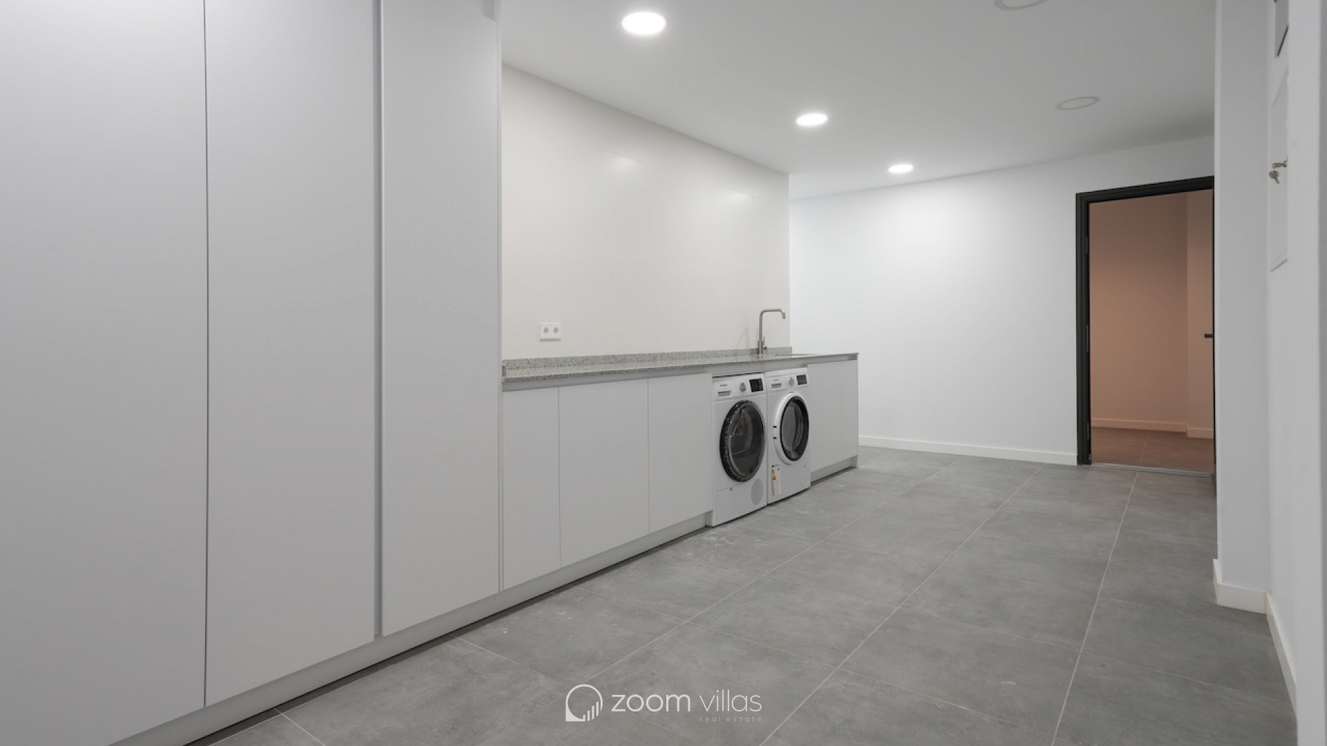 Betreten Sie diese herrliche Villa durch die Doppelgarage! Auf dieser Ebene finden Sie auch einen Fitnessraum, eine Waschküche und einen Abstellraum. Nehmen Sie die Treppe nach oben und genießen Sie eine schöne, voll ausgestattete Küche, die zum Wohn-Esszimmer führt. Auf dieser Etage finden wir auch 1 geräumiges Schlafzimmer mit eigenem Bad und ein separates Gäste-WC mit Bad. Treten Sie nach draußen und genießen Sie einen schönen Garten, einen privaten Pool und eine überdachte Außenküche. Zurück im Inneren gelangen wir über die geräumige Treppe in die oberste Etage, wo wir 3 weitere Schlafzimmer und 2 Badezimmer vorfinden. Das Hauptschlafzimmer verfügt über einen großen begehbaren Kleiderschrank und ein eigenes Badezimmer. Eine gemeinsame Terrasse für die drei Schlafzimmer im Obergeschoss darf nicht fehlen!