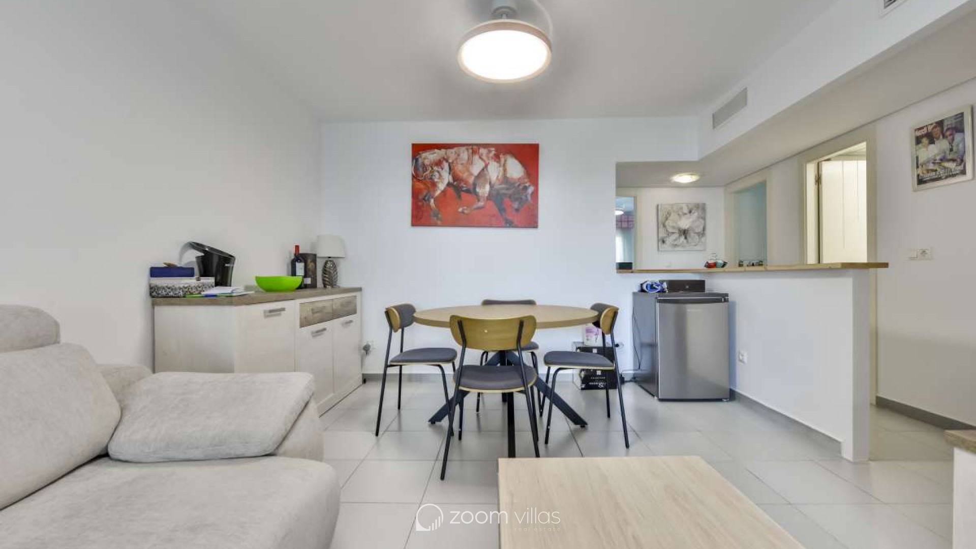Entdecken Sie den Strand La Fossa, nur wenige Schritte von Ihrer Tür entfernt. Dieses 101 m² große Apartment bietet eine Atmosphäre der Ruhe und des Wohlbefindens, wobei jedes Detail auf Ihren maximalen Komfort ausgelegt ist. Das Apartment wurde renoviert und verfügt über neue Möbel und Geräte. Es hat zwei Schlafzimmer und zwei Badezimmer und bietet den idealen Raum zum Entspannen. Das geräumige Wohn-/Esszimmer ist perfekt für Familientreffen, selbst gekochte Mahlzeiten oder entspannte Momente. Die Terrasse bietet einen Blick auf das Meer und den Peñón de Ifach, ideal, um die Landschaft zu jeder Tageszeit zu bewundern. Das Gebäude verfügt über zwei Swimmingpools und eine Sauna, und es gibt Parkplätze direkt vor dem Gebäude. Stellen Sie sich vor, Sie atmen frische Luft, nehmen ein Sonnenbad und lauschen dem Rauschen der Wellen, während Sie diese Aussicht genießen. Dies ist eine einmalige Gelegenheit, in einer himmlischen Umgebung an der Costa Blanca zu leben. Warten Sie nicht länger: Kontaktieren Sie uns und reservieren Sie Ihr kleines Stück vom Himmel.