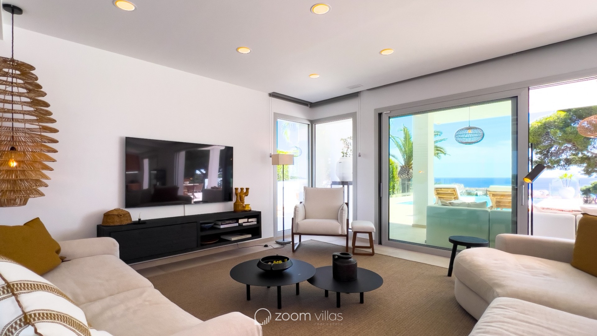 MORAIRA – Villa in Moraira zu verkaufen, nur wenige Gehminuten vom Strand entfernt. Entdecken Sie diese Villa in Moraira, erbaut im Jahr 2021, mit Südausrichtung und Panoramablick auf das Meer. Die Immobilie befindet sich 1,0 km vom Strand und 1,2 km vom Stadtzentrum entfernt, beides zu Fuß erreichbar.
