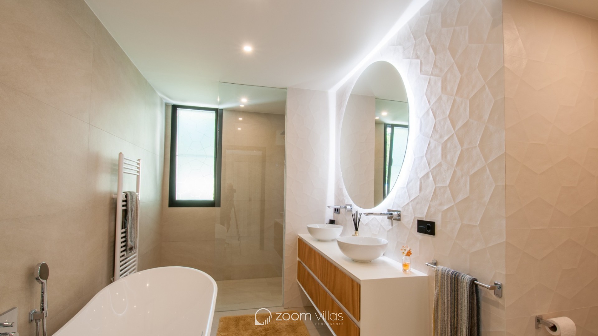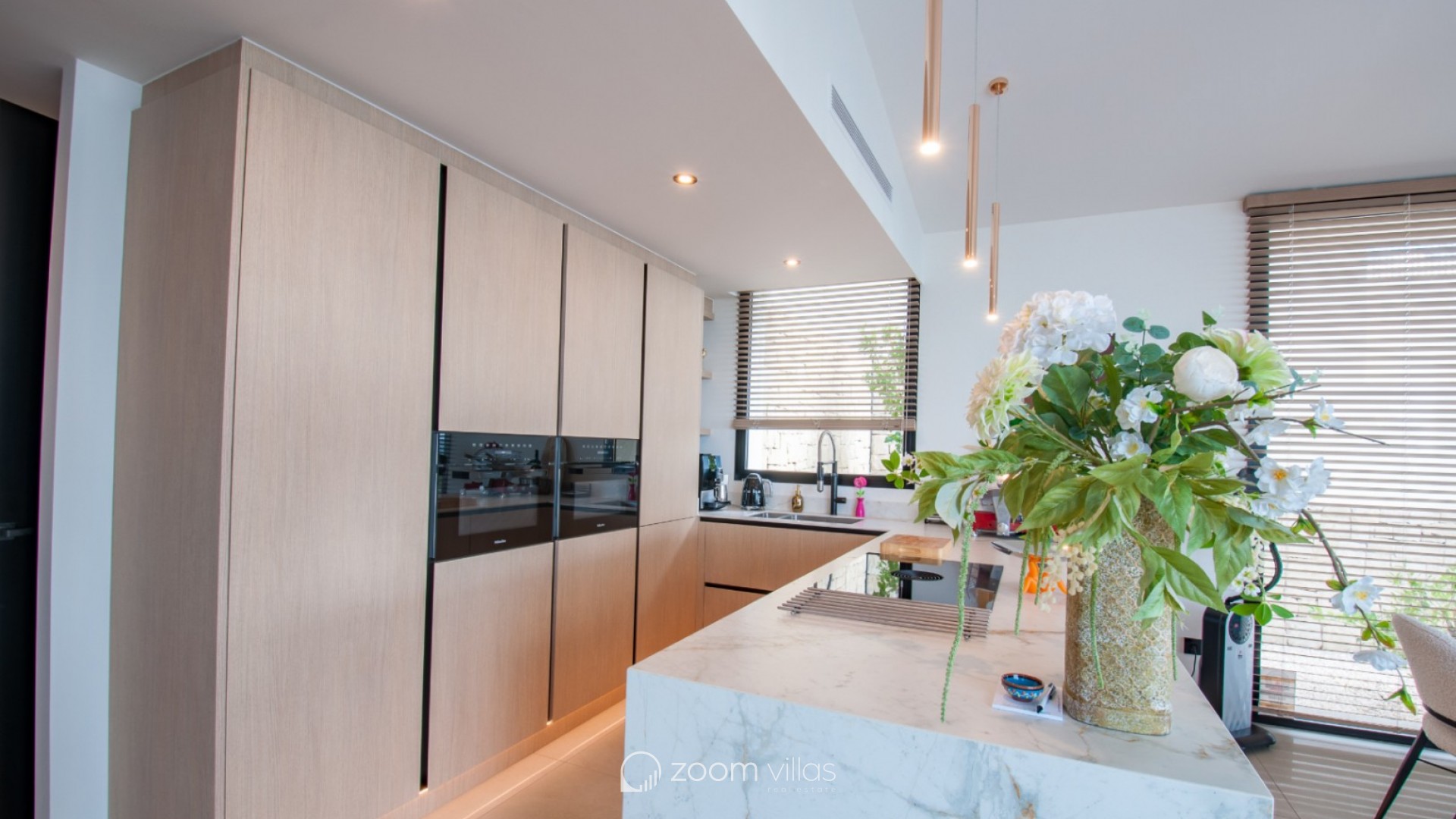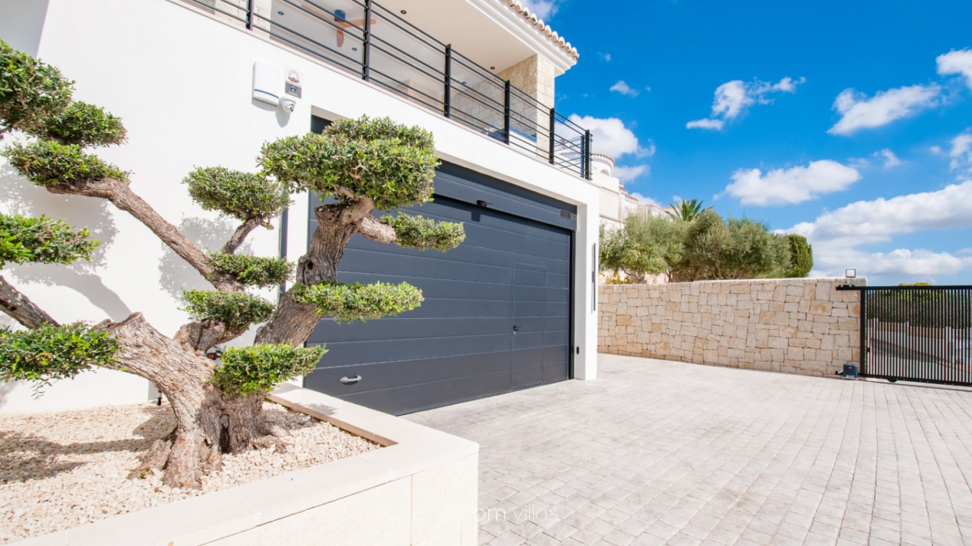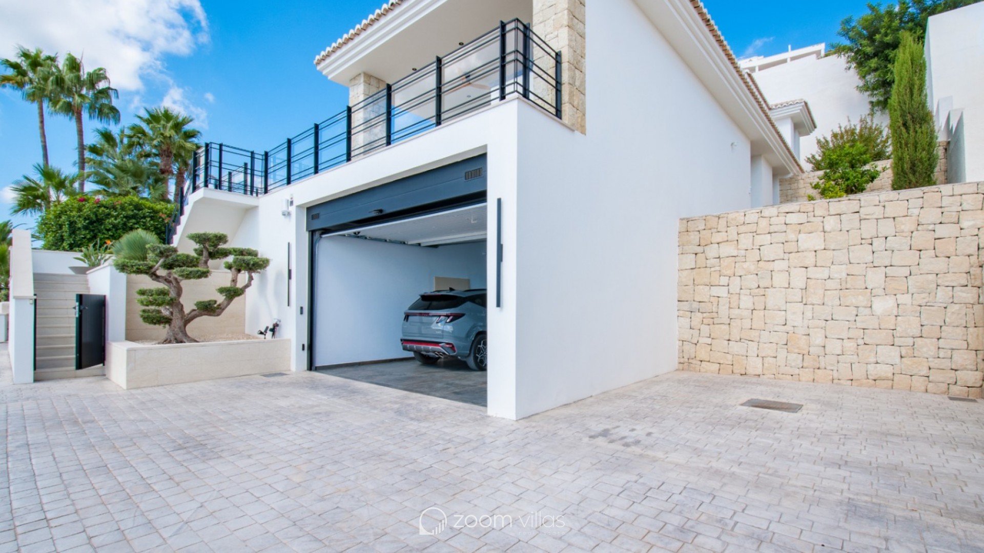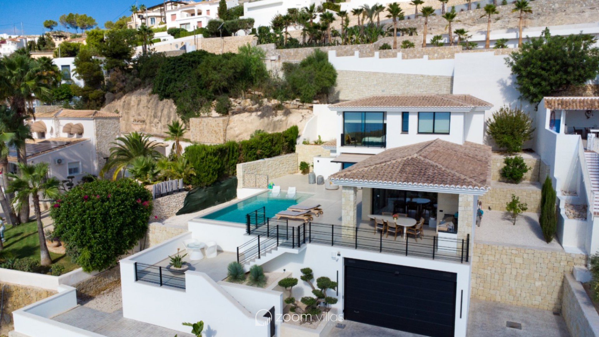 Luxusvilla zum Verkauf in Benissa mit Panoramablick auf das Meer. Sie verfügt über 3 Schlafzimmer, 2 Badezimmer, einen 9x4 m großen Pool, eine 145 m² große Terrasse, eine Außenküche und eine 60 m² große Garage. Sie beinhaltet Fußbodenheizung, zentralisierte Klimaanlage, Solarpanelen und hochwertige Ausstattungen. Sie liegt nur 5 Minuten von Cala La Fustera entfernt.