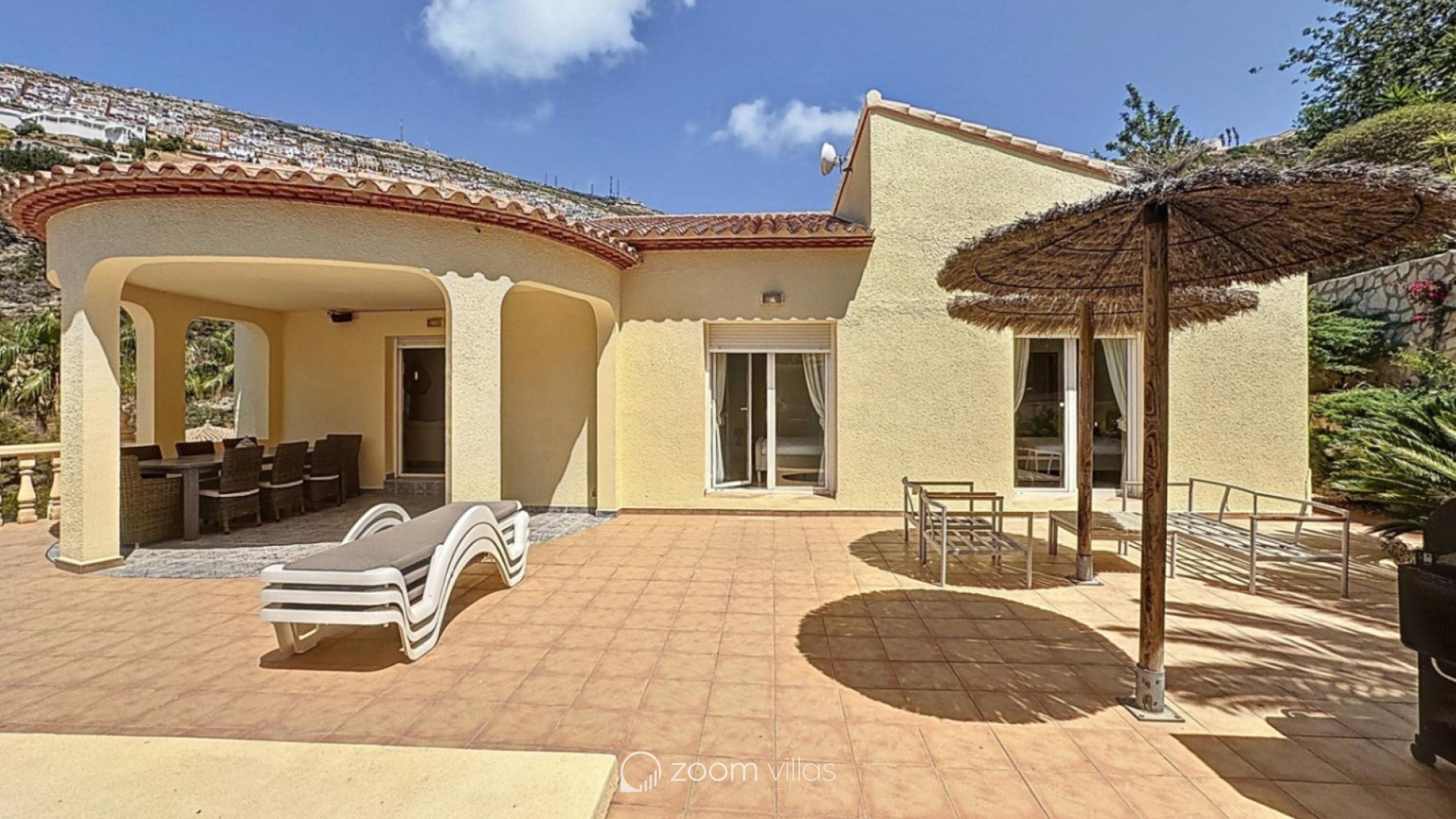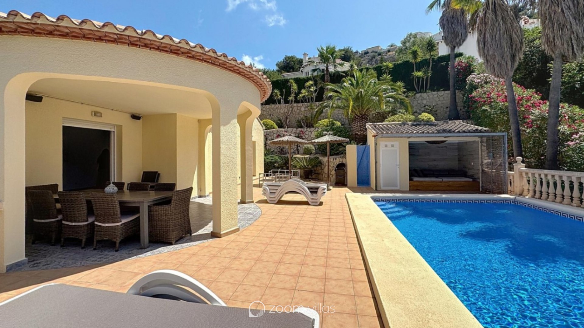 Mediterrane Villa mit privatem Pool in der Nähe des Strandes Moraig in Encinas, Cumbre del SolEine gemütliche Villa an der Costa BlancaWir präsentieren Ihnen diese Villa im mediterranen Stil in der Wohnsiedlung Encinas, innerhalb der renommierten Urbanisation Cumbre del Sol in Benitachell, zwischen Jávea und Moraira. Eine ideale Immobilie für diejenigen, die Geräumigkeit, Komfort und eine ruhige Umgebung suchen, um das ganze Jahr über oder als Zweitwohnsitz zu genießen. Details zur ImmobilieGesamtfläche: 298 m²Wohnfläche: 218 m²Terrassen: 80 m²Grundstück: 840 m²Zusätzlicher Anbau: 8 m² mit Toilette und EntspannungsbereichDie Villa erstreckt sich über zwei Etagen und umfasst: 5 Doppelzimmer, ideal für Familie oder Gäste.3 komplette Badezimmer, funktional und gut verteilt.Geräumiges Wohnzimmer mit Kamin, perfekt für Zusammenkünfte und zum Entspannen.Voll ausgestattete amerikanische Küche, offen und praktisch.Überdachte Terrasse mit Veranda und direktem Zugang zum privaten Pool.Ausstattung und KomfortDas Haus ist ausgestattet mit: Fußbodenheizung für eine warme Atmosphäre im Winter.Klimaanlage im Obergeschoss.Klimaanlage mit Heiz- und Kühlfunktion im Untergeschoss.Die Villa befindet sich in einem ausgezeichneten Zustand und ist bezugsfertig, um den mediterranen Lebensstil zu genießen. Wohngebiet Encinas, Cumbre del SolDas Gebiet Encinas ist Teil der etablierten Urbanisation Cumbre del Sol, einer privilegierten Enklave an der Costa Blanca Nord. Dieses Gebiet liegt am nördlichen Eingang und zeichnet sich durch seine großen privaten Grundstücke aus, die von Natur umgeben sind und in der Nähe aller Dienstleistungen liegen: Strände und Buchten: Moraig, Llebeig und Los Tiestos.Tägliche Dienstleistungen: Einkaufszentrum Adelfas mit Supermarkt Pepe La Sal, Apotheke, Friseur und Restaurants.Sport und Freizeit: Padel- und Tennisplätze, Reitzentrum und Wanderwege am Meer.Internationale Bildung: Lady Elizabeth School, eine der renommiertesten Schulen der Region Valencia.Nähe zu Moraira und Jávea, zwei der reizvollsten Dörfer der Costa Blanca.Ein ruhiger und etablierter Ort, ideal sowohl als Dauerwohnsitz als auch für den Urlaub, wo Privatsphäre mit der Nähe zu allen Dienstleistungen kombiniert wird. Kontaktieren Sie unsWenn diese mediterrane Villa in Encinas das Haus ist, das Sie gesucht haben, kontaktieren Sie uns noch heute und entdecken Sie alles, was es Ihnen zu bieten hat. Wir helfen Ihnen gerne bei jedem Schritt, damit Sie Ihr neues Zuhause an der Costa Blanca genießen können.