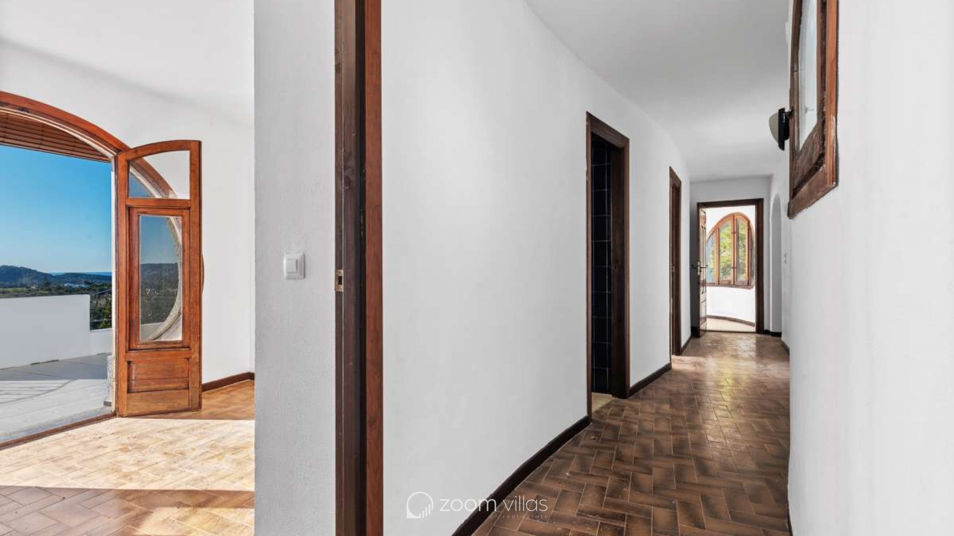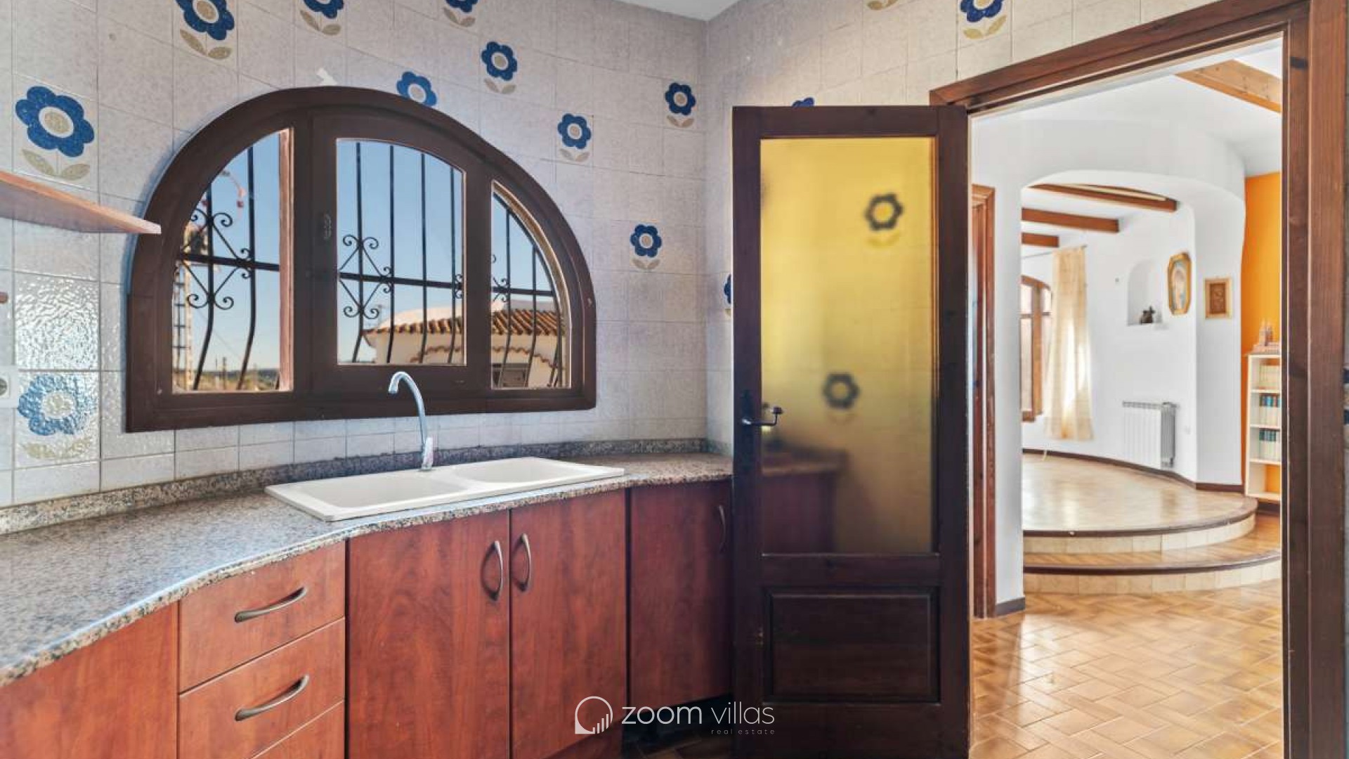 Eingebettet in eine friedliche, grüne Oase, wo Stille auf endlose Horizonte trifft, lädt dieses besondere Haus zum Innehalten, Durchatmen und Genießen des mediterranen Lebensgefühls ein. Von hier aus schweift der Blick frei über Calpe, das glitzernde Meer, den markanten Peñón de Ifach und die umliegenden Berge – ein Panorama, das sich mit jeder Stunde des Tages aufs Neue wandelt. Auf einem großzügigen 2.851 m² großen Grundstück in einer ruhigen Gegend von Benissa gelegen, besticht dieses Anwesen durch seinen Charakter und sein unendliches Potenzial. Es ist ein Haus mit Seele, das darauf wartet, durch Renovierung und persönliche Visionen seinen wahren Zauber zu entfalten. Die Villa erstreckt sich über drei Etagen: Untergeschoss (-1): Komplett trocken und lichtdurchflutet bietet dieser Raum unzählige Möglichkeiten. Stellen Sie sich einen privaten Weinkeller, ein gemütliches Spielzimmer, einen Fitnessraum oder sogar ein Kreativstudio vor – Ihrer Fantasie sind keine Grenzen gesetzt. Hauptgeschoss: Aufgeteilt in zwei einladende Bereiche. Auf der einen Seite befinden sich Küche, Wohnzimmer, Essbereich und ein Gäste-WC – ideal für gesellige Stunden mit Familie und Freunden. Die andere Seite beherbergt zwei Schlafzimmer und ein Badezimmer. Alle Zimmer bieten direkten Zugang zur Terrasse und schaffen so eine harmonische Verbindung zwischen Innen- und Außenbereich. Im Obergeschoss befinden sich vier Schlafzimmer, ein Badezimmer und ein Gäste-WC. Von den Zimmern gelangen Sie auf eine sonnige Terrasse mit atemberaubendem Ausblick – genießen Sie den Morgenkaffee und die goldenen Sonnenuntergänge. Auch draußen setzt sich der Zauber fort: Ein großer Swimmingpool lädt zum Entspannen unter der mediterranen Sonne ein, während das weitläufige Grundstück Privatsphäre, Ruhe und Freiheit bietet. Eine Garage für mehrere Autos und ausreichend zusätzliche Parkplätze für Gäste sind vorhanden – ideal für unvergessliche Feiern. Dieses Anwesen ist mehr als nur ein Haus – es ist ein Ort der Träume, ein Ort, an dem Liebe, Natur und zukünftige Erinnerungen zusammenkommen. Eine seltene Gelegenheit, sich in einer der schönsten Ecken der Costa Blanca Ihr eigenes Refugium zu schaffen.