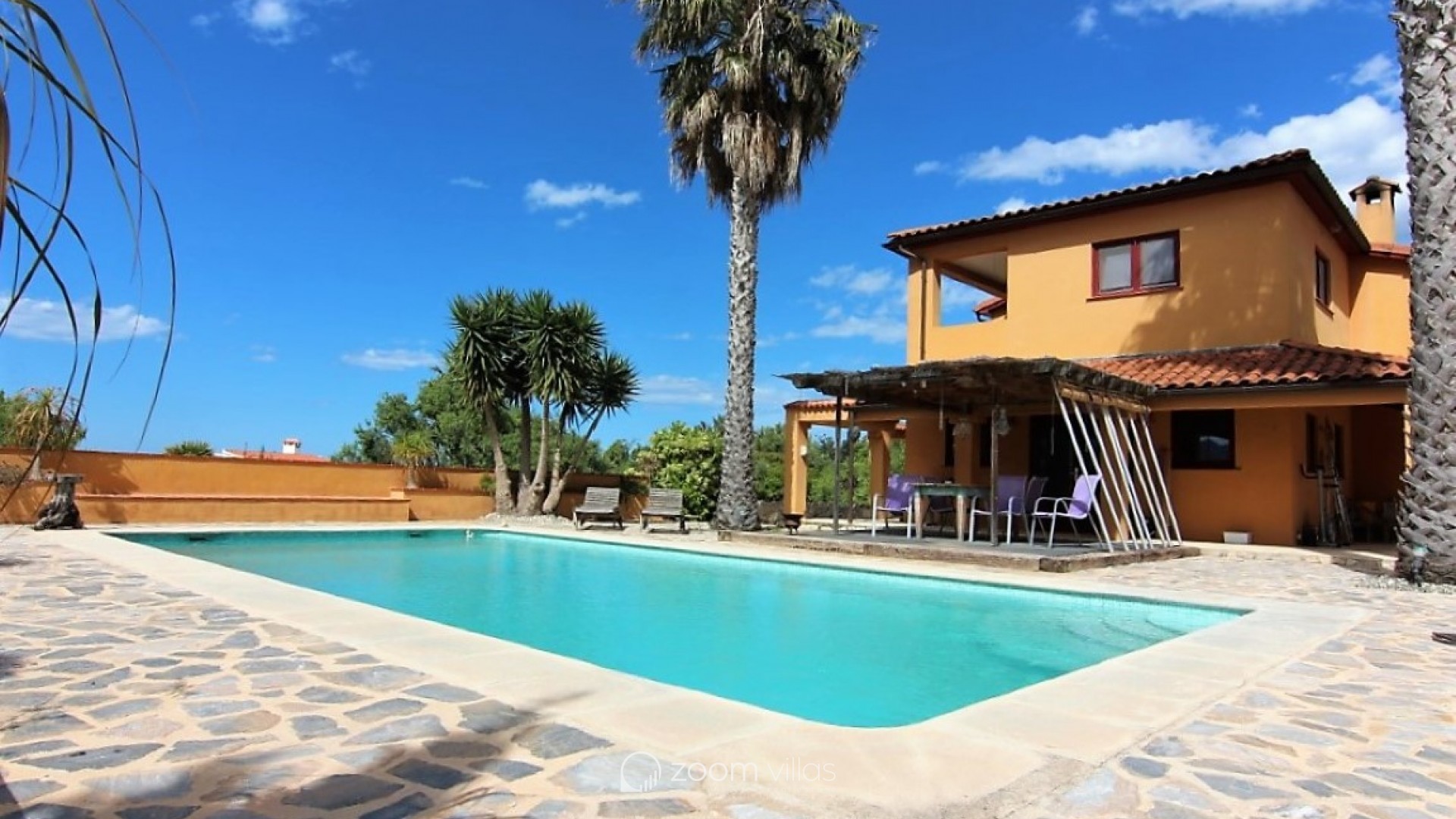 Neben der großen, teilweise überdachten Terrasse mit Pool bietet dieses Anwesen mehrere weitere Sitzbereiche, von denen aus Sie die schöne Aussicht genießen können.