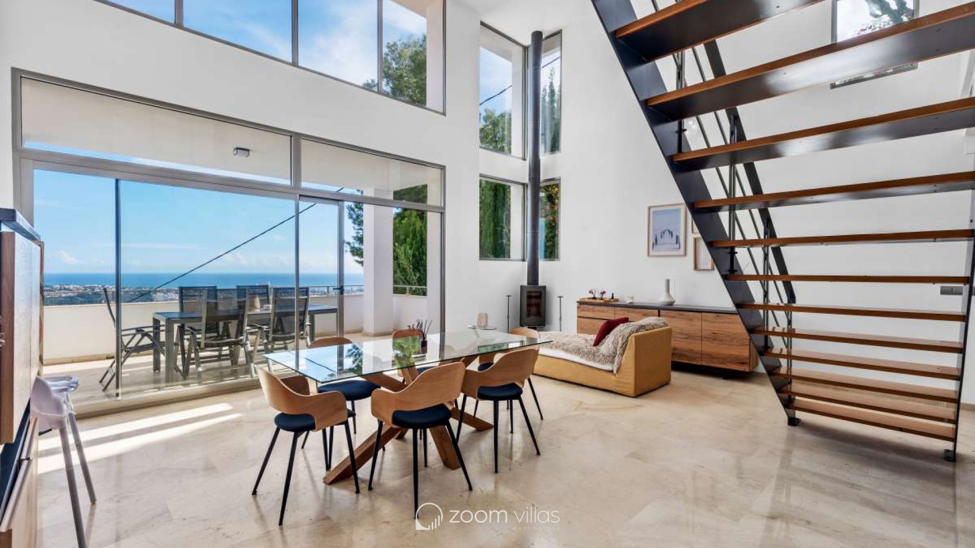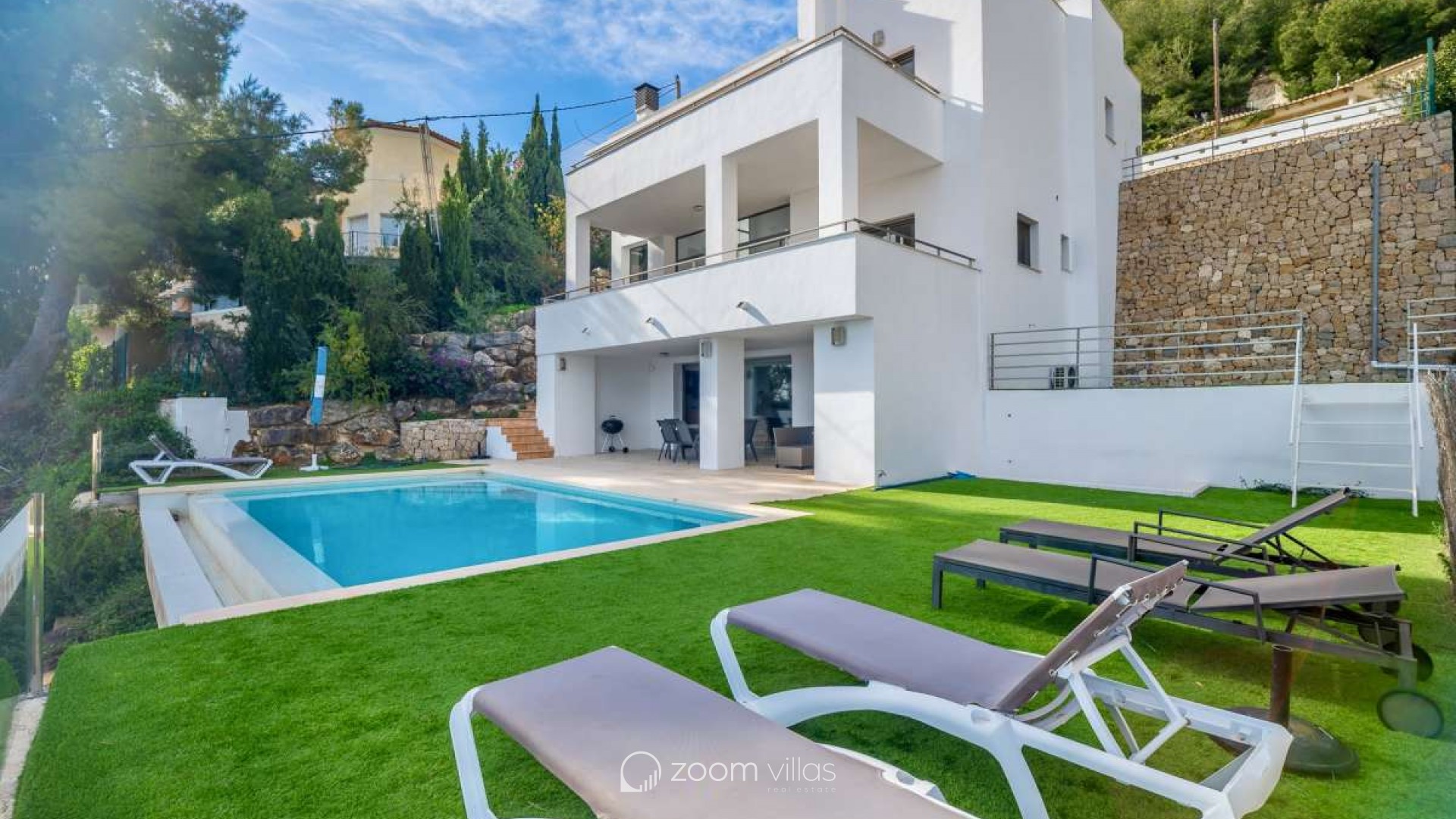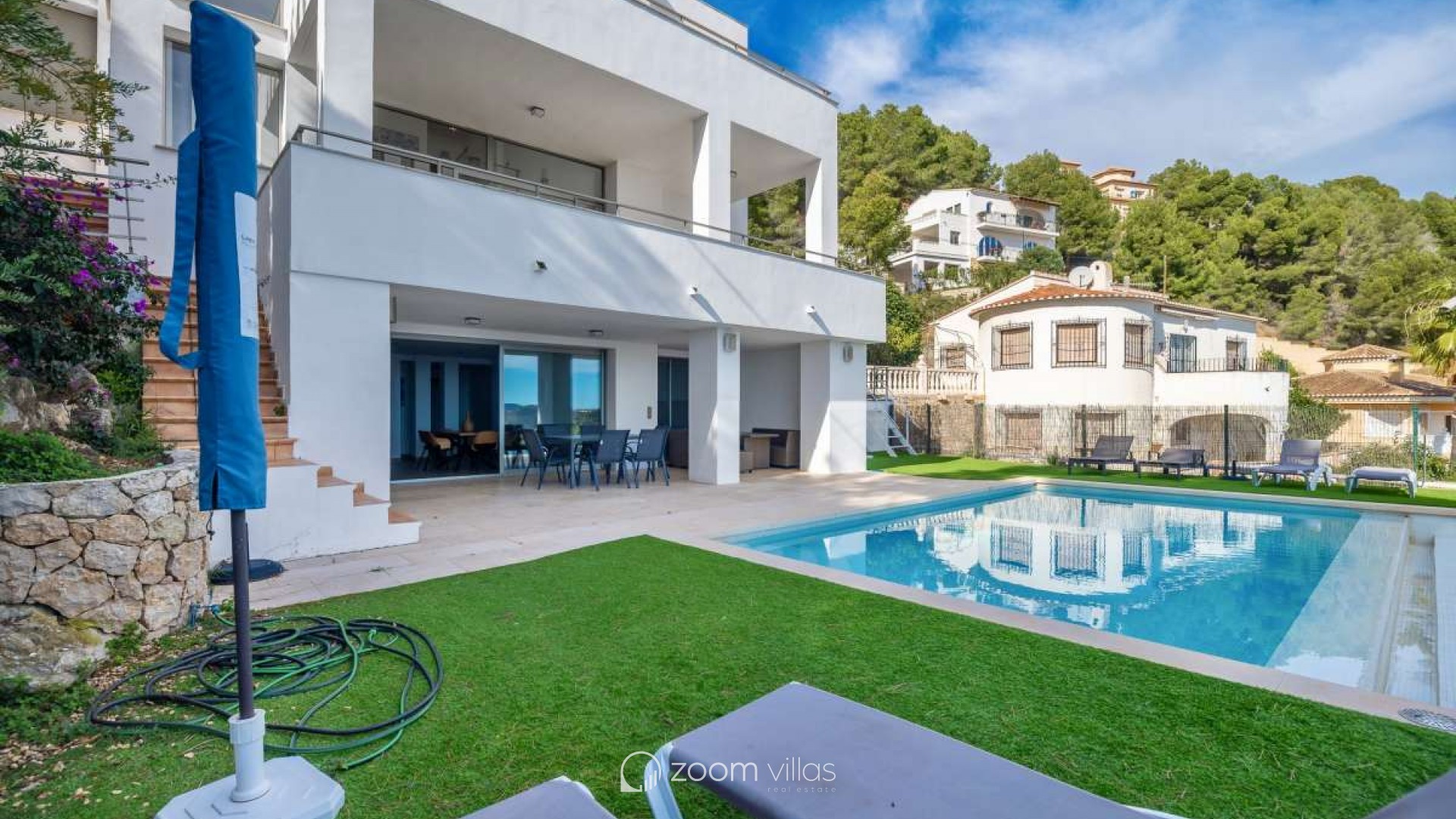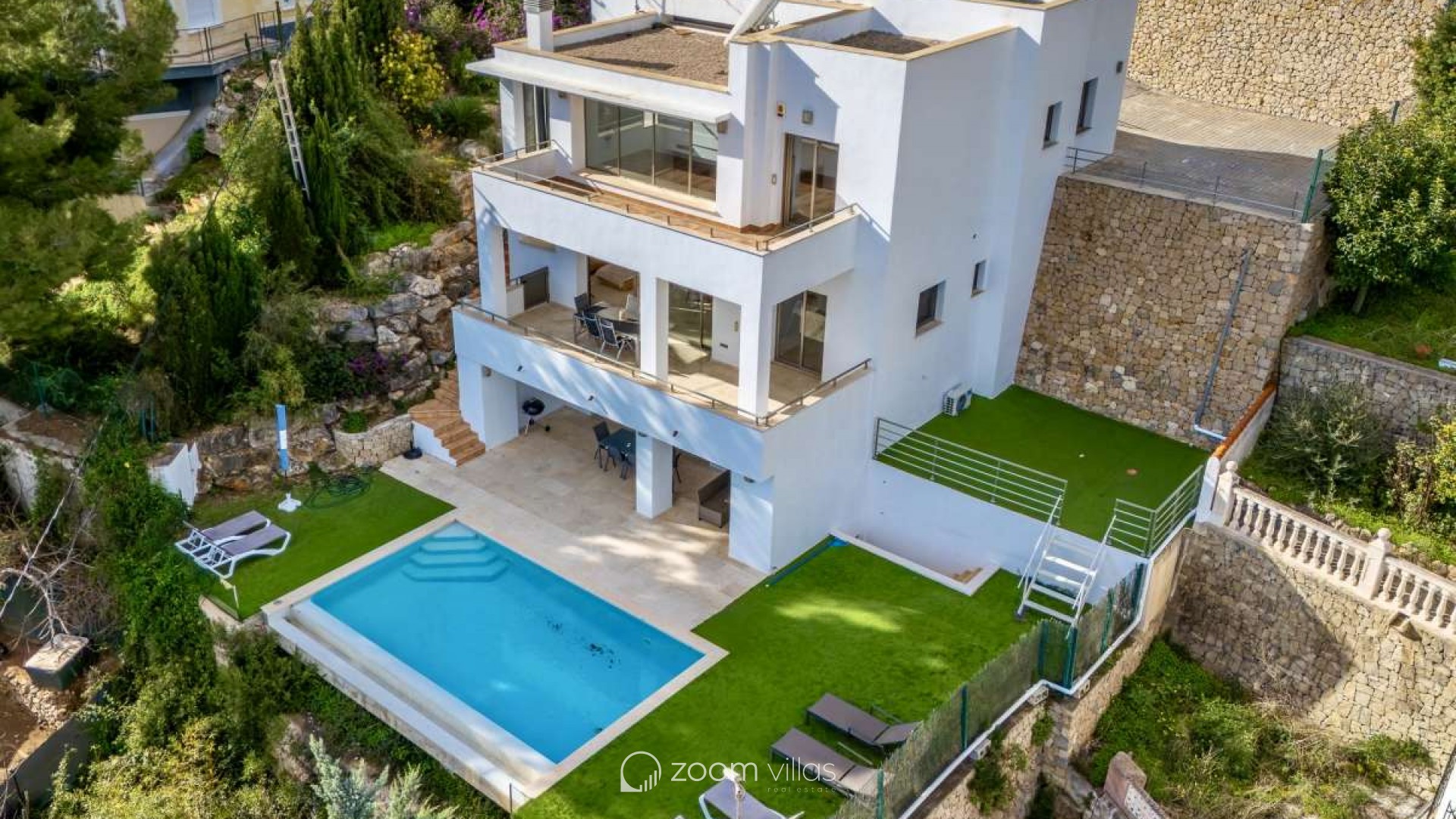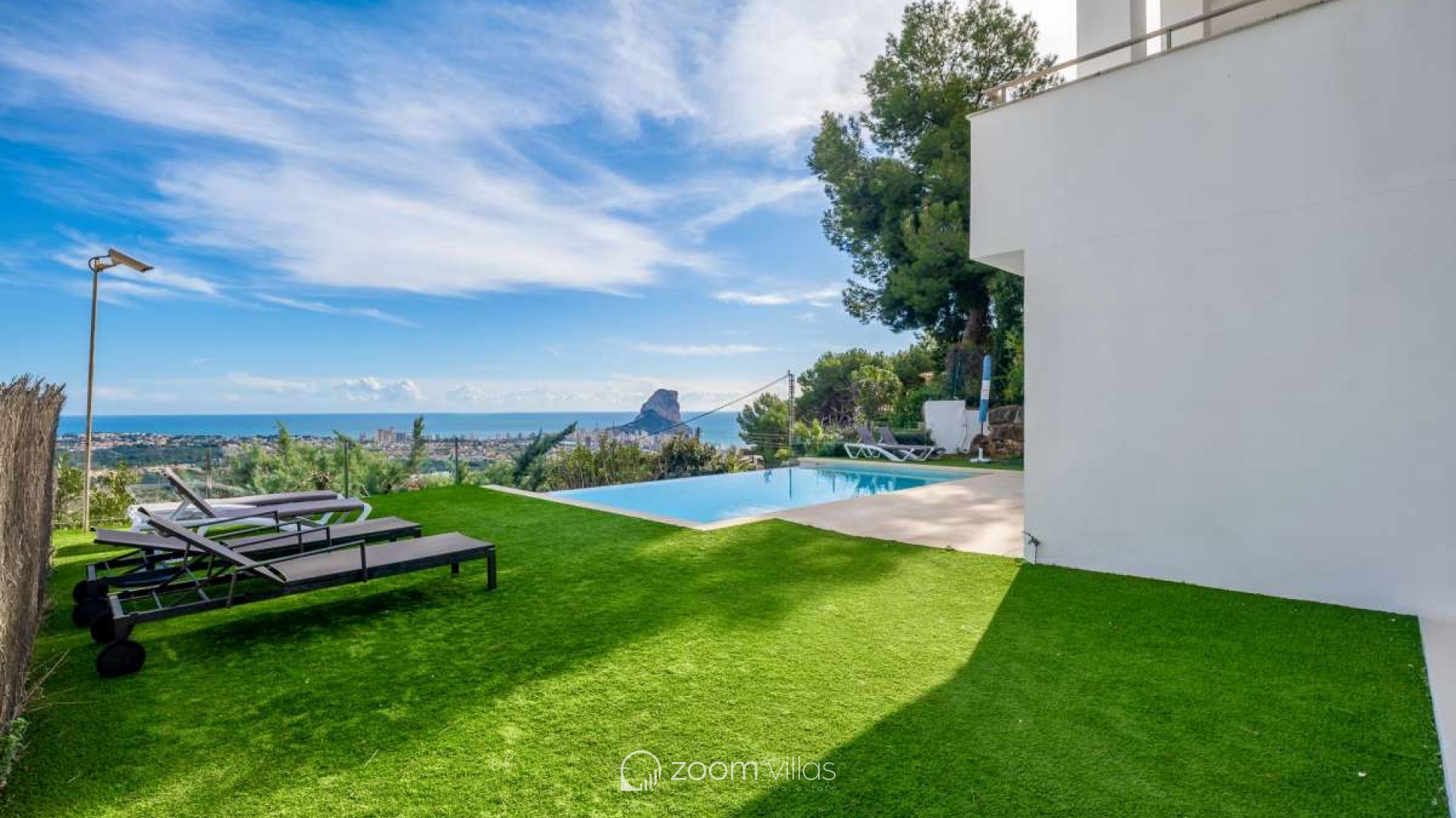 In einer ruhigen Wohngegend von Calpe gelegen, bietet diese Villa die ideale Balance zwischen Privatsphäre und Komfort. Die Gegend ist etabliert und beliebt für ganzjähriges Wohnen und dank der guten Anbindung an Strände, Restaurants, Geschäfte und öffentliche Verkehrsmittel auch perfekt für Urlaube geeignet. Die friedliche Umgebung und das mediterrane Klima machen diesen Ort sowohl als Hauptwohnsitz als auch als Ferienhaus komfortabel. Das Haus wurde 2005 auf einem 816 m² großen Grundstück erbaut und bietet eine Wohnfläche von 530 m². Es erstreckt sich über drei Etagen, die sowohl mit einem Aufzug als auch über eine Treppe verbunden sind und so Komfort und Barrierefreiheit im gesamten Haus gewährleisten. Es gibt außerdem ausreichend Parkplätze. Die erste Etage verfügt über ein Hauptschlafzimmer, zwei weitere Schlafzimmer und ein Badezimmer und bietet somit einen privaten und praktischen Schlafbereich. Die zweite Etage bildet den Hauptwohnbereich des Hauses. Sie bietet ein geräumiges, offenes Wohnzimmer mit hohen Decken, das eine helle und luftige Atmosphäre schafft, eine separate, geschlossene Küche, ein Schlafzimmer und ein Badezimmer. Vom Wohnzimmer aus gelangt man auf eine sonnige Terrasse mit herrlichem Blick auf den Peñón de Ifach. Ein wunderschöner Kamin sorgt für Wärme und Gemütlichkeit und macht diesen Raum an behaglichen Winterabenden besonders einladend. Das Untergeschoss ist ganz dem Entspannen und Genießen gewidmet. Es bietet eine offene Küche mit Wohnbereich und direktem Zugang zu einer weiteren Terrasse und dem Swimmingpool. Auf dieser Etage befinden sich außerdem ein Schlafzimmer, ein Badezimmer, ein Abstellraum und ein separater Fitnessraum – ideal für gesellige Stunden, Wellness und den mediterranen Lebensstil. Diese Villa vereint Großzügigkeit, Komfort und Funktionalität in ruhiger Lage und bietet ein Zuhause, das sich das ganze Jahr über genießen lässt oder als perfekter Ferienort dient.
