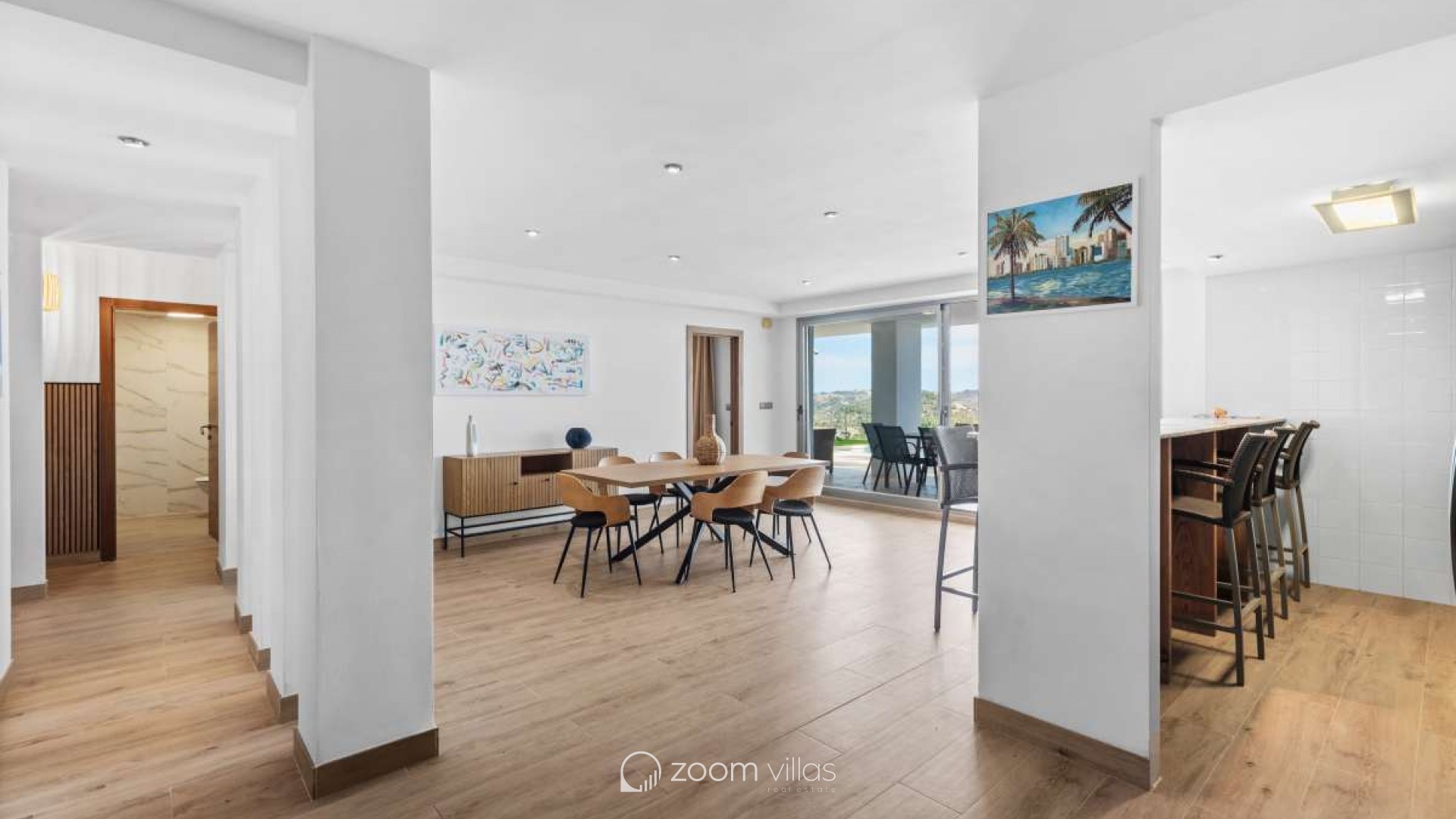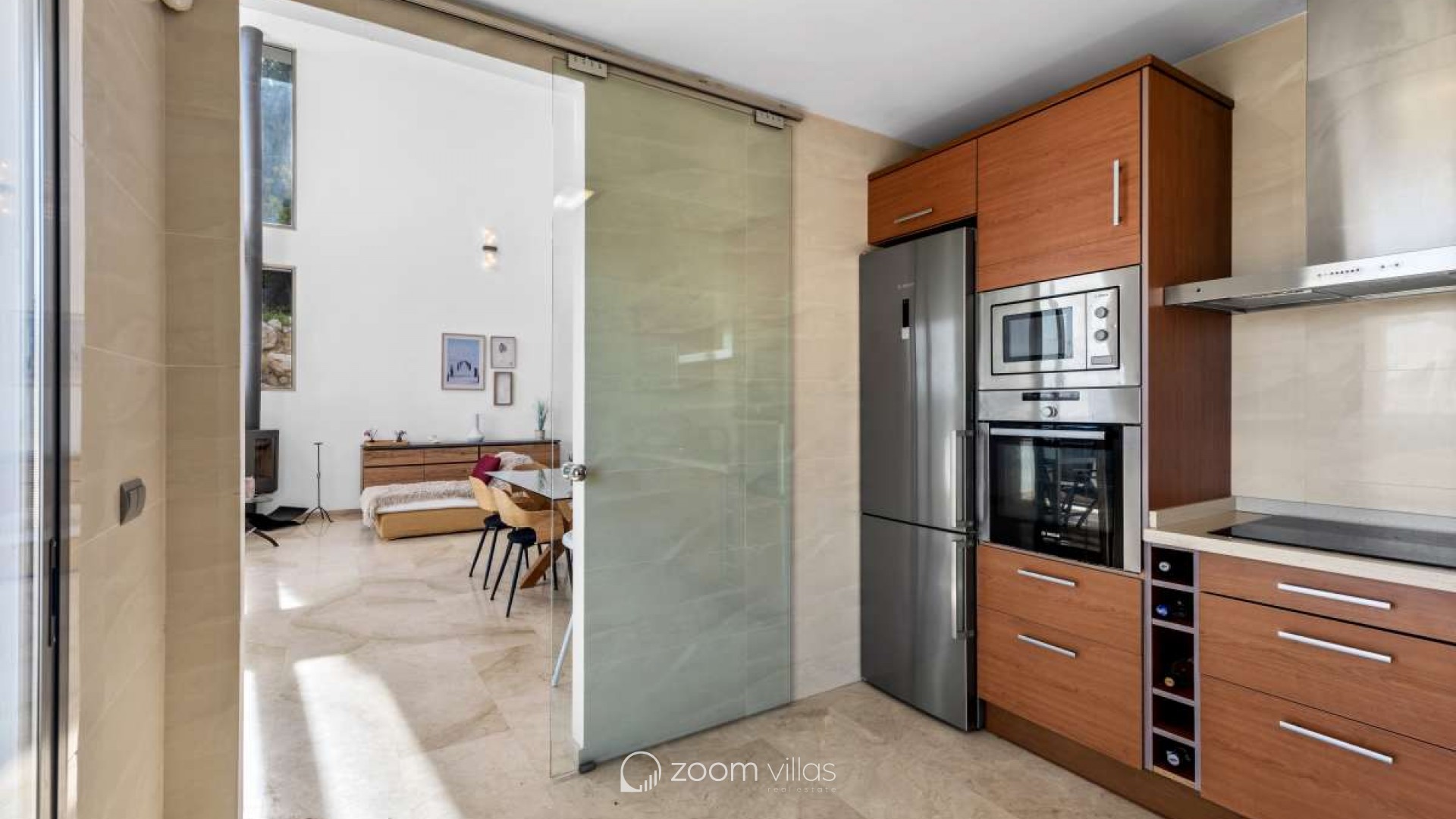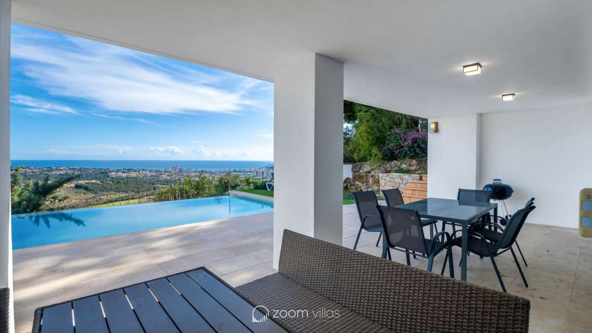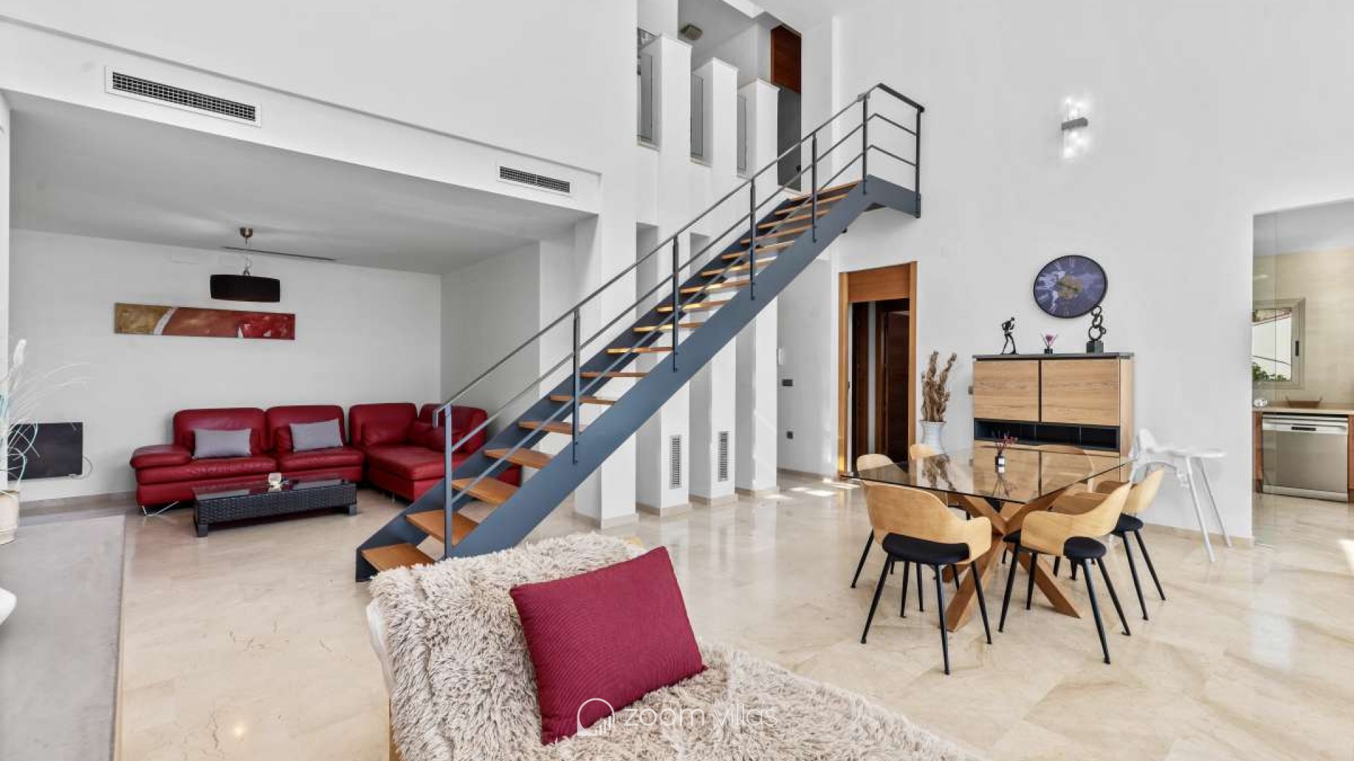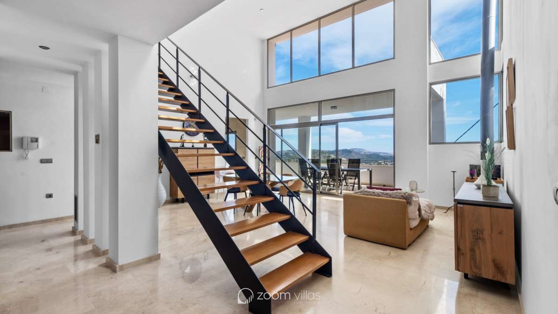 In einer ruhigen Wohngegend von Calpe gelegen, bietet diese Villa die ideale Balance zwischen Privatsphäre und Komfort. Die Gegend ist etabliert und beliebt für ganzjähriges Wohnen und dank der guten Anbindung an Strände, Restaurants, Geschäfte und öffentliche Verkehrsmittel auch perfekt für Urlaube geeignet. Die friedliche Umgebung und das mediterrane Klima machen diesen Ort sowohl als Hauptwohnsitz als auch als Ferienhaus komfortabel. Das Haus wurde 2005 auf einem 816 m² großen Grundstück erbaut und bietet eine Wohnfläche von 530 m². Es erstreckt sich über drei Etagen, die sowohl mit einem Aufzug als auch über eine Treppe verbunden sind und so Komfort und Barrierefreiheit im gesamten Haus gewährleisten. Es gibt außerdem ausreichend Parkplätze. Die erste Etage verfügt über ein Hauptschlafzimmer, zwei weitere Schlafzimmer und ein Badezimmer und bietet somit einen privaten und praktischen Schlafbereich. Die zweite Etage bildet den Hauptwohnbereich des Hauses. Sie bietet ein geräumiges, offenes Wohnzimmer mit hohen Decken, das eine helle und luftige Atmosphäre schafft, eine separate, geschlossene Küche, ein Schlafzimmer und ein Badezimmer. Vom Wohnzimmer aus gelangt man auf eine sonnige Terrasse mit herrlichem Blick auf den Peñón de Ifach. Ein wunderschöner Kamin sorgt für Wärme und Gemütlichkeit und macht diesen Raum an behaglichen Winterabenden besonders einladend. Das Untergeschoss ist ganz dem Entspannen und Genießen gewidmet. Es bietet eine offene Küche mit Wohnbereich und direktem Zugang zu einer weiteren Terrasse und dem Swimmingpool. Auf dieser Etage befinden sich außerdem ein Schlafzimmer, ein Badezimmer, ein Abstellraum und ein separater Fitnessraum – ideal für gesellige Stunden, Wellness und den mediterranen Lebensstil. Diese Villa vereint Großzügigkeit, Komfort und Funktionalität in ruhiger Lage und bietet ein Zuhause, das sich das ganze Jahr über genießen lässt oder als perfekter Ferienort dient.