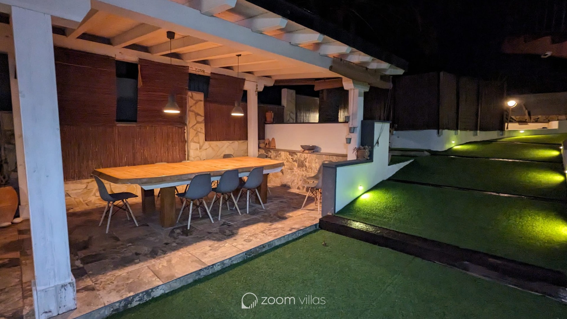 La primera planta consta de un amplio salón, un comedor, una gran cocina totalmente equipada, dos dormitorios y un baño. En la segunda planta encontramos otro amplio salón-comedor, una cocina semiabierta, dos dormitorios dobles, un baño y una naya. La planta baja consta de una cocina abierta con comedor, dos dormitorios dobles y un cuarto de baño. Hay hermosas vistas al mar desde todas las plantas. La villa tiene calefacción en todas las plantas y aire acondicionado en la primera y segunda planta. También hay una barbacoa con comedor cubierto, una piscina con ducha exterior, una azotea, un amplio garaje y trastero exterior. Además, la villa ya tiene licencia de alquiler.