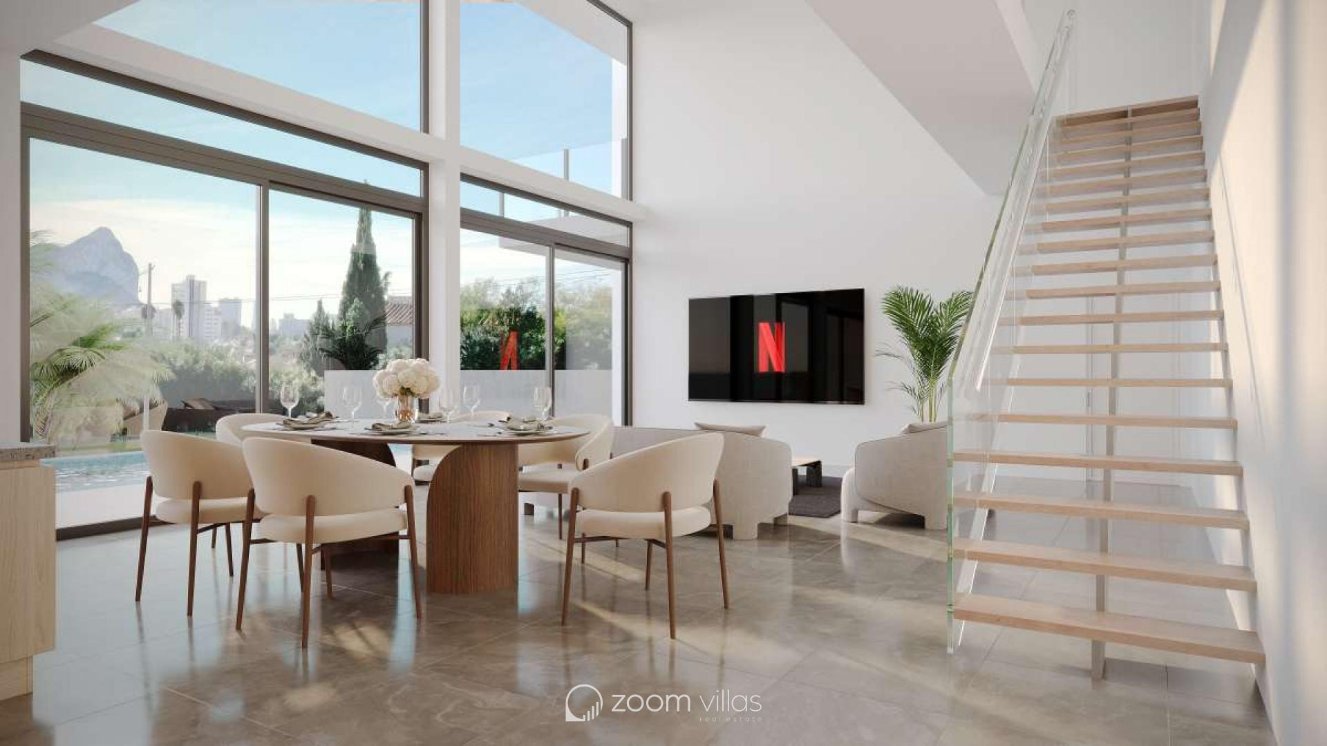 Esta villa ofrece interiores amplios y luminosos con cocina totalmente equipada, hermosas vistas al Mediterráneo y al Peñón de Ifach, y piscina privada con jardín paisajístico. Diseñada pensando en la comodidad, es la opción perfecta para la vida contemporánea en Calpe.