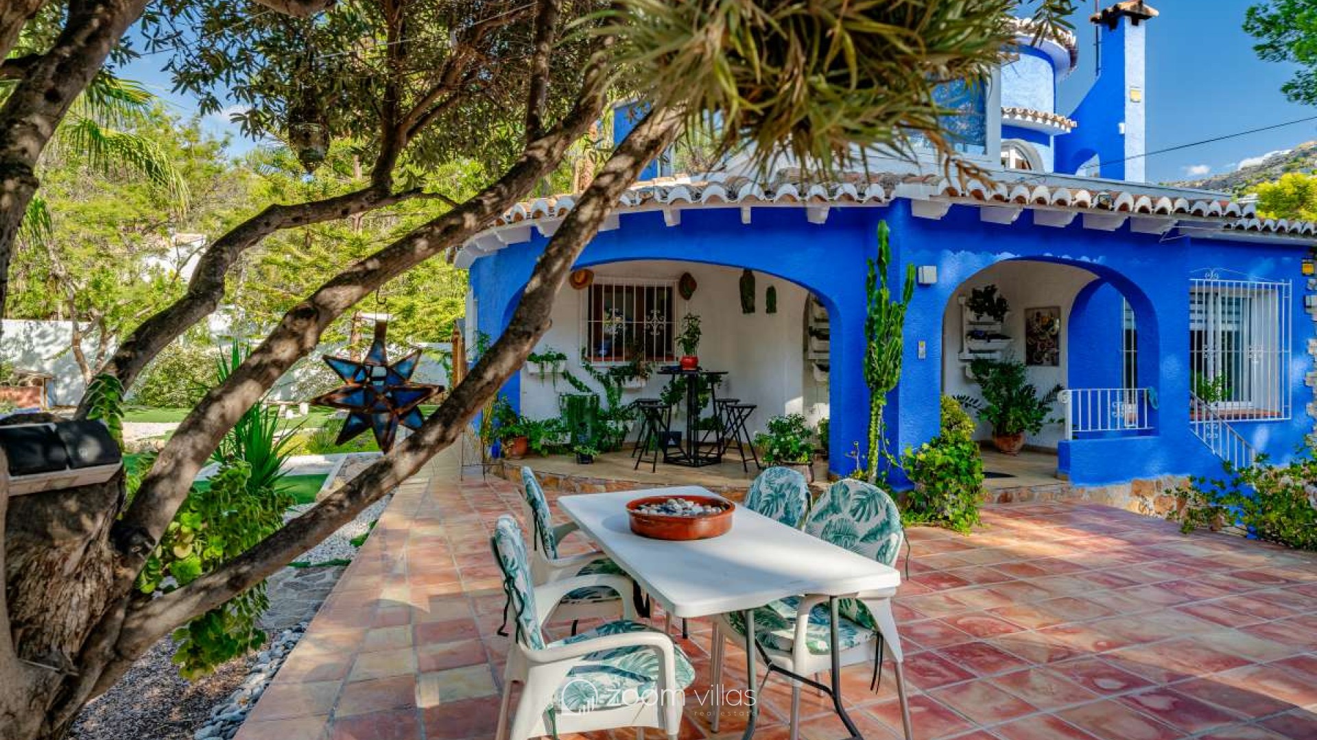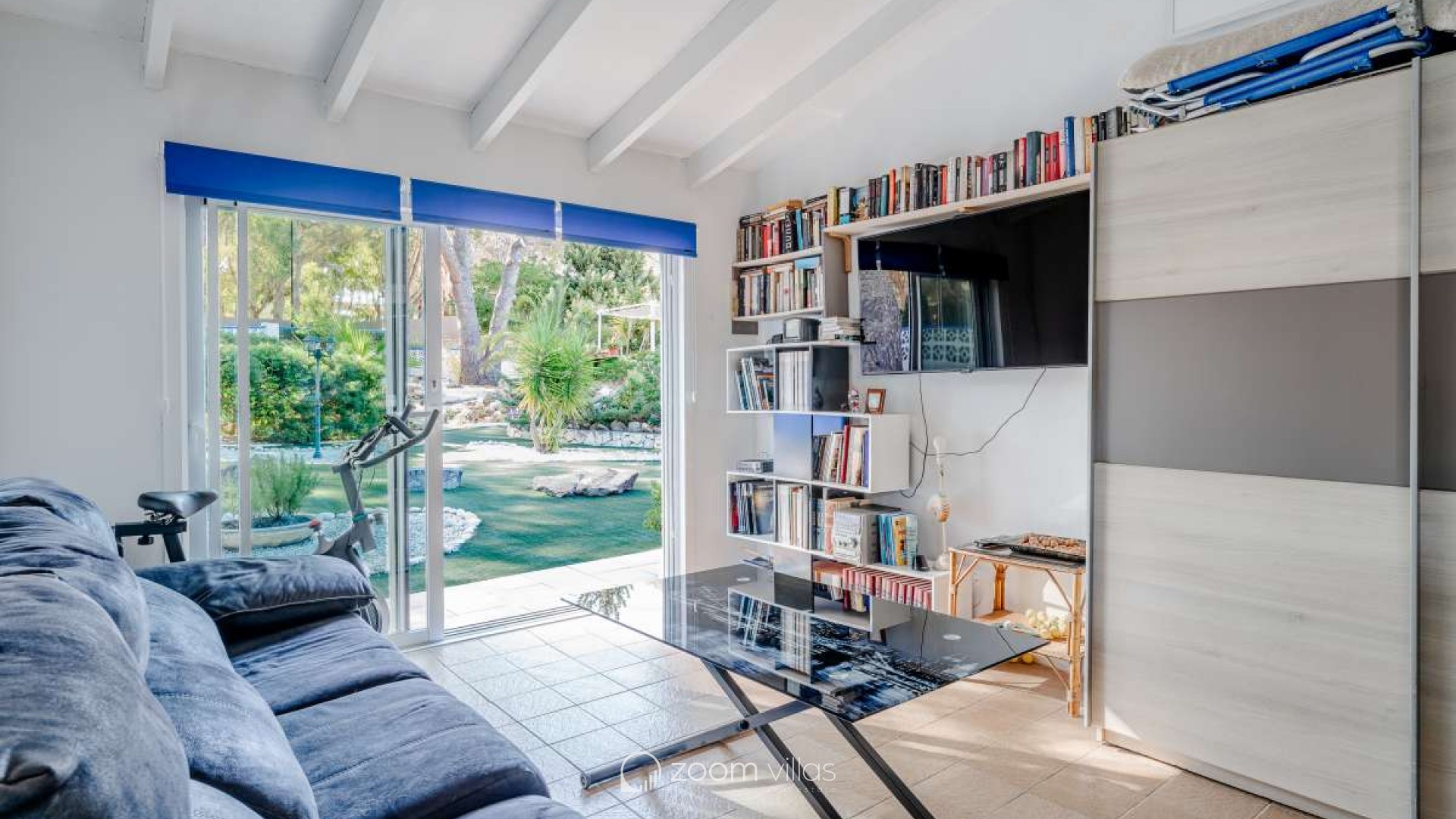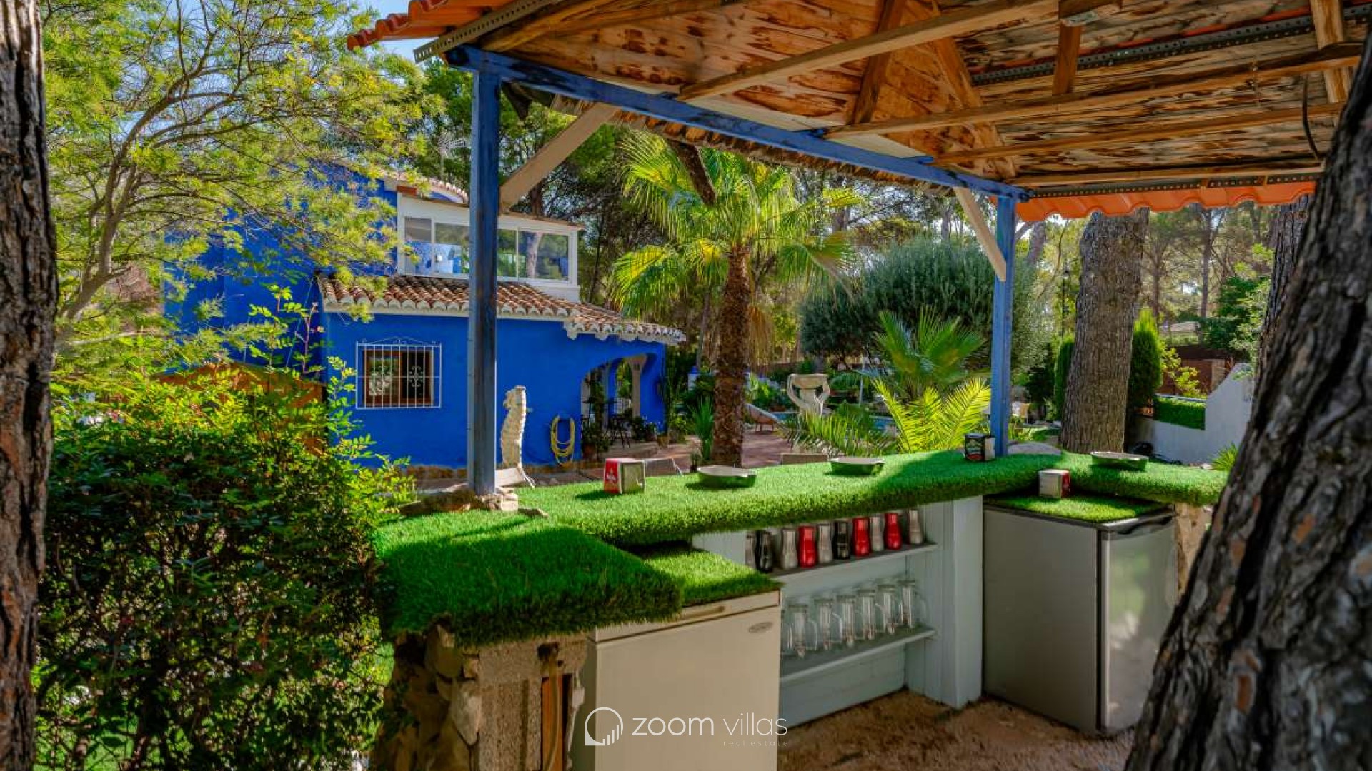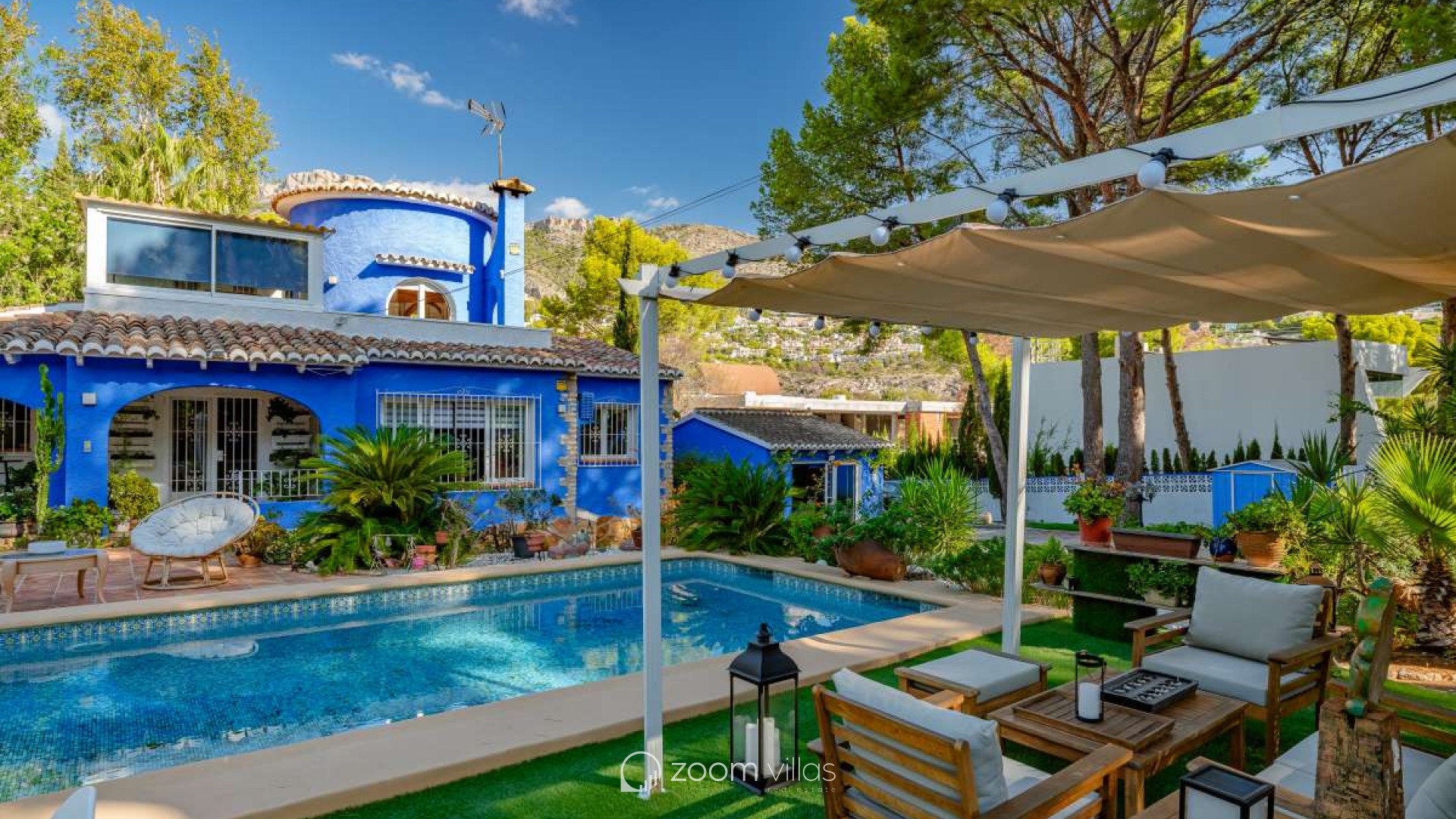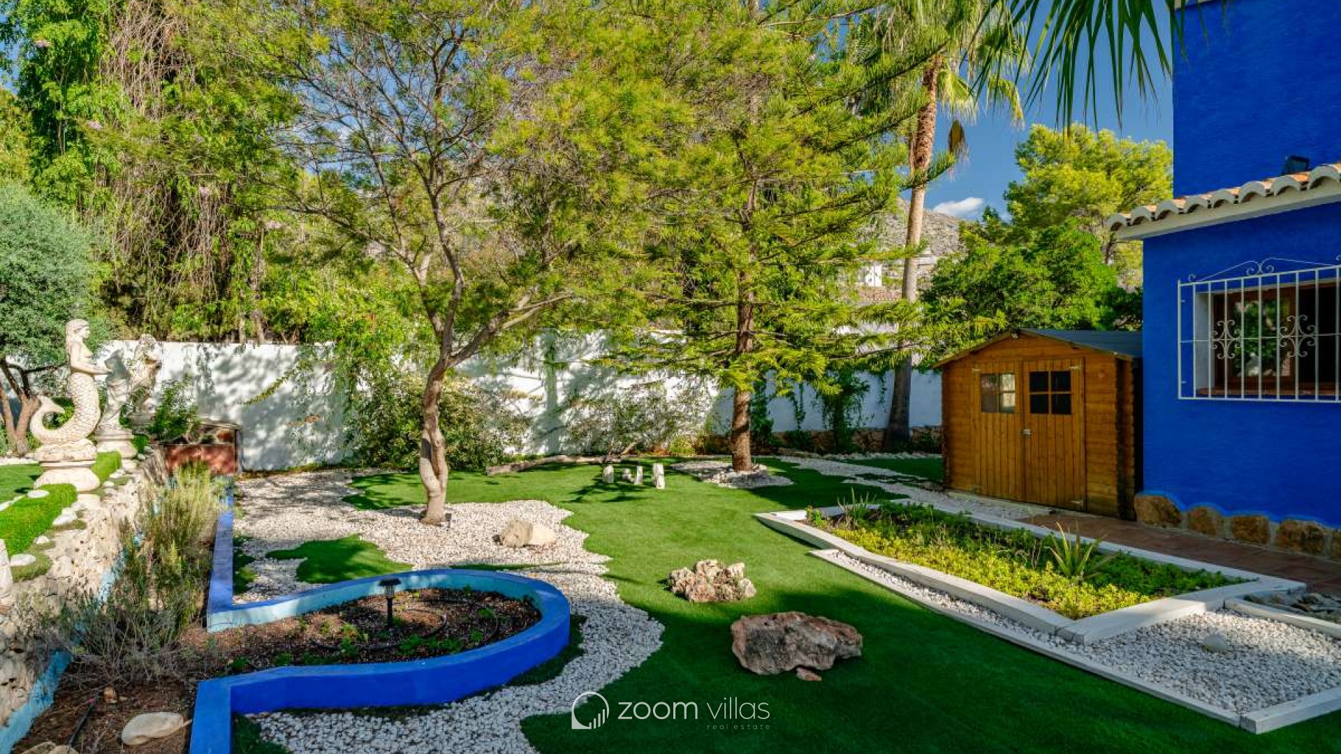 br>Ubicada en una generosa parcela de 1.377 m², esta elegante villa se encuentra rodeada de exuberantes jardines y un césped impecable. Construida en 1990, la casa destaca por sus suaves paredes exteriores de color azul cielo, un vibrante contraste con las tradicionales tejas de terracota y los detalles rústicos, que le confieren un carácter mediterráneo único.br>br> Ubicada en un entorno natural tranquilo, la villa se distribuye en dos plantas y combina comodidad con elegancia atemporal.br>br> Planta bajabr>br> La entrada da la bienvenida a una cocina abierta, perfectamente conectada con las salas de estar principales, creando un ambiente cálido y espacioso. Un práctico trastero ofrece espacio adicional para los artículos esenciales del día a día. En el corazón de la casa se encuentra el salón con una acogedora chimenea, ideal para veladas íntimas. Esta planta también ofrece dos amplios dormitorios y un baño completo, lo que garantiza funcionalidad y comodidad para la familia y los invitados.br>br> Piso superiorbr> El segundo nivel está dedicado a la lujosa suite principal, con baño en suite para una privacidad total. Un amplio armario ofrece amplio espacio de almacenamiento, mientras que la terraza privada invita a disfrutar de vistas panorámicas a la vegetación circundante. Una sala multiusos adicional sirve como oficina en casa o estudio creativo, con vistas tranquilas al jardín.br> Vida al aire librebr>br> El exterior de la propiedad está diseñado para la relajación y el entretenimiento. Una casa de huéspedes ofrece alojamiento confortable para los visitantes. Los jardines enmarcan una piscina privada de agua salada. Un amplio patio permite cenar al aire libre y disfrutar de reuniones sociales bajo el cielo mediterráneo. El aparcamiento para varios vehículos aumenta la comodidad de la villa.br>