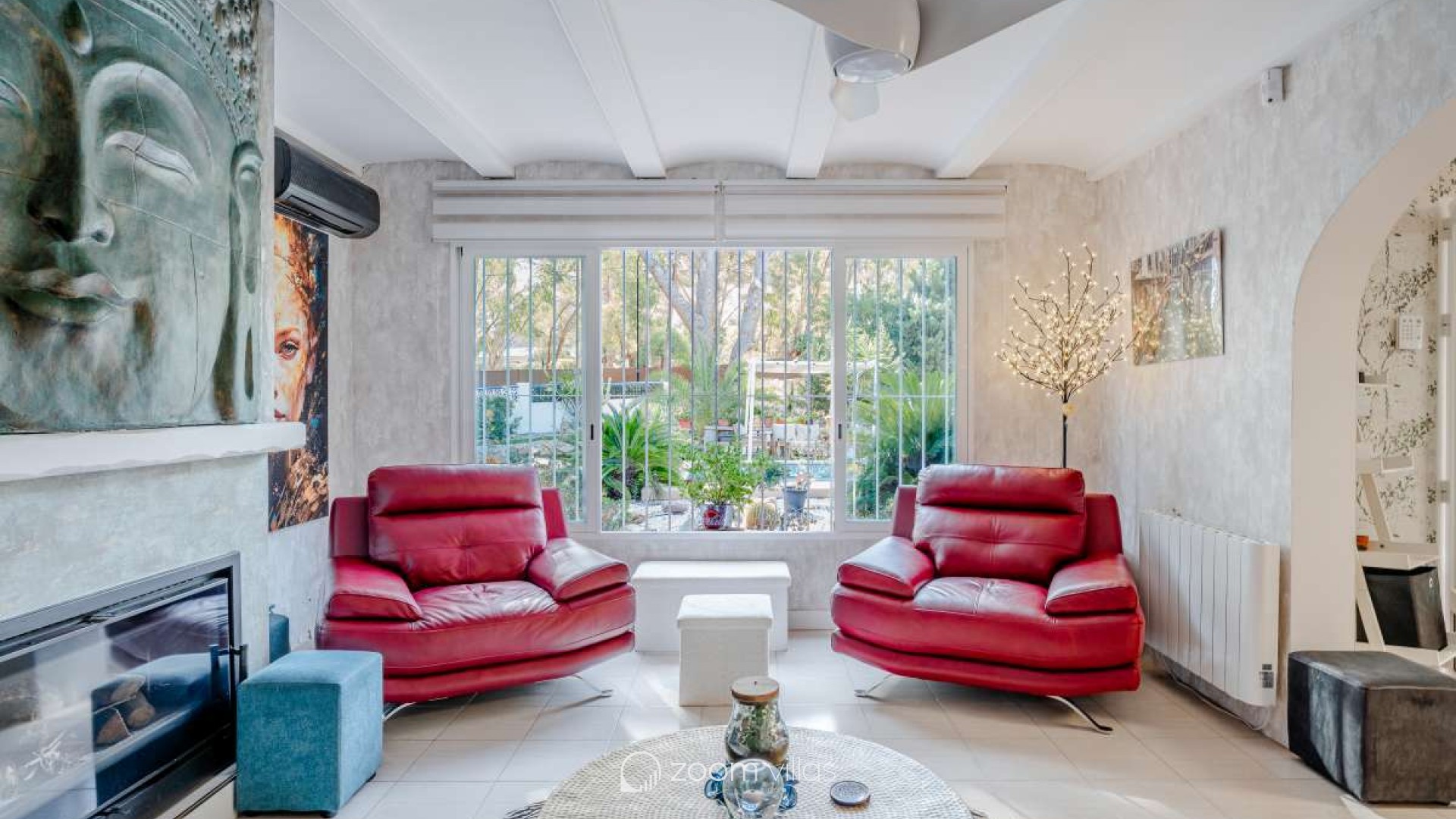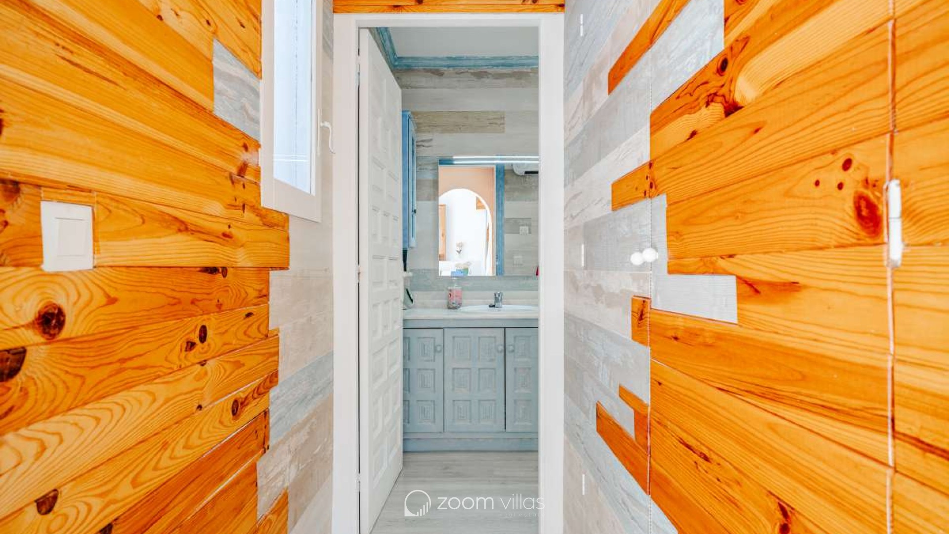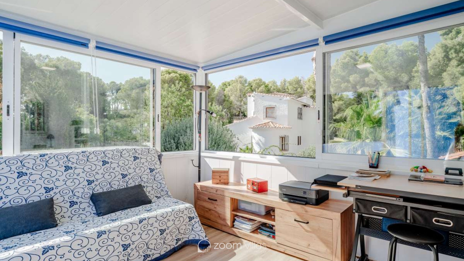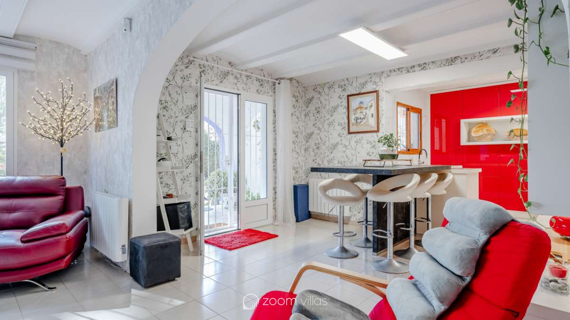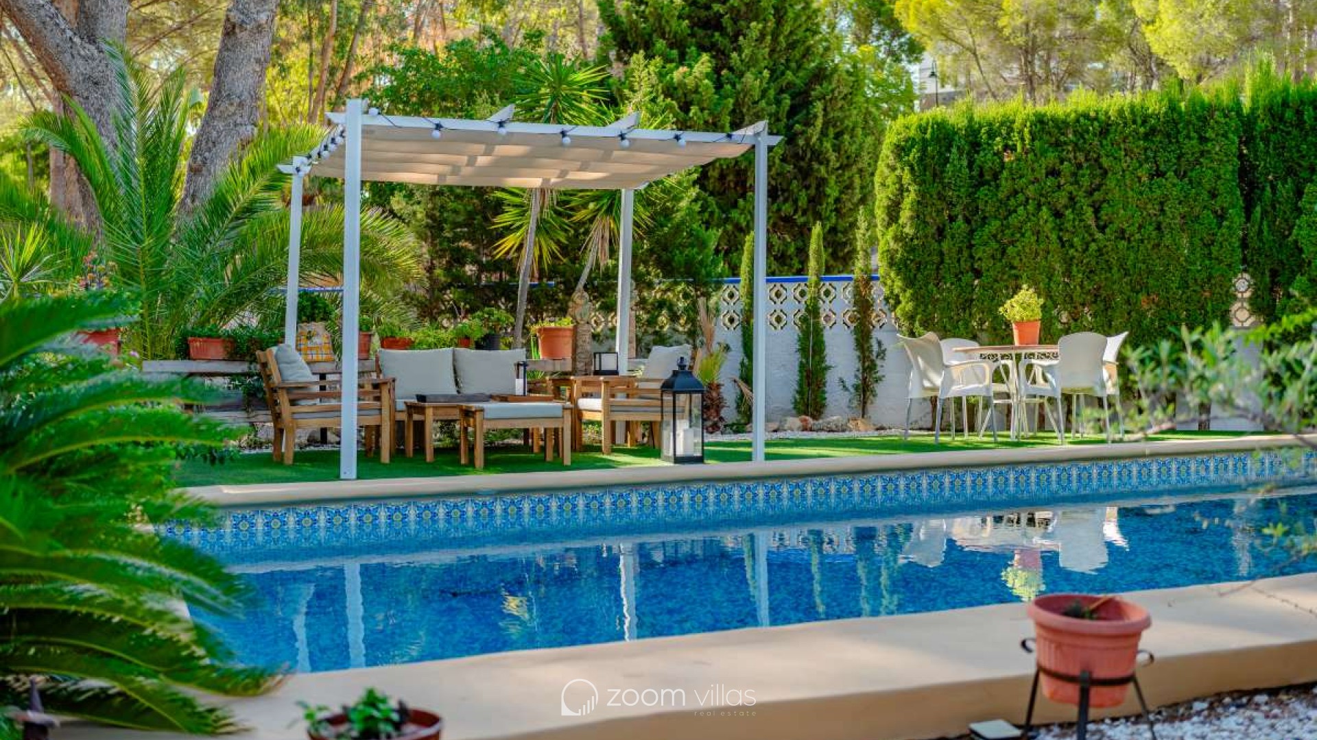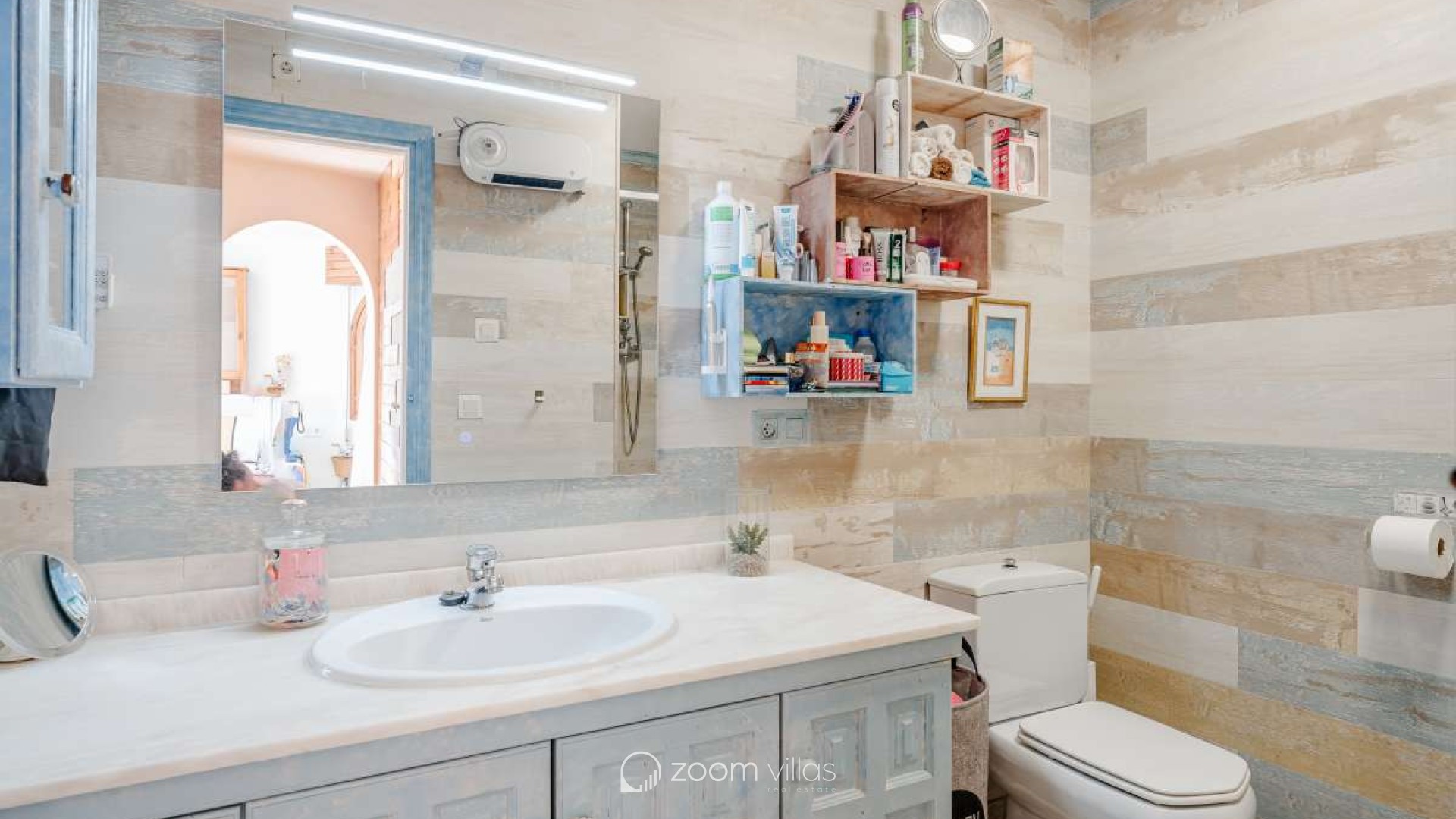 br>Ubicada en una generosa parcela de 1.377 m², esta elegante villa se encuentra rodeada de exuberantes jardines y un césped impecable. Construida en 1990, la casa destaca por sus suaves paredes exteriores de color azul cielo, un vibrante contraste con las tradicionales tejas de terracota y los detalles rústicos, que le confieren un carácter mediterráneo único.br>br> Ubicada en un entorno natural tranquilo, la villa se distribuye en dos plantas y combina comodidad con elegancia atemporal.br>br> Planta bajabr>br> La entrada da la bienvenida a una cocina abierta, perfectamente conectada con las salas de estar principales, creando un ambiente cálido y espacioso. Un práctico trastero ofrece espacio adicional para los artículos esenciales del día a día. En el corazón de la casa se encuentra el salón con una acogedora chimenea, ideal para veladas íntimas. Esta planta también ofrece dos amplios dormitorios y un baño completo, lo que garantiza funcionalidad y comodidad para la familia y los invitados.br>br> Piso superiorbr> El segundo nivel está dedicado a la lujosa suite principal, con baño en suite para una privacidad total. Un amplio armario ofrece amplio espacio de almacenamiento, mientras que la terraza privada invita a disfrutar de vistas panorámicas a la vegetación circundante. Una sala multiusos adicional sirve como oficina en casa o estudio creativo, con vistas tranquilas al jardín.br> Vida al aire librebr>br> El exterior de la propiedad está diseñado para la relajación y el entretenimiento. Una casa de huéspedes ofrece alojamiento confortable para los visitantes. Los jardines enmarcan una piscina privada de agua salada. Un amplio patio permite cenar al aire libre y disfrutar de reuniones sociales bajo el cielo mediterráneo. El aparcamiento para varios vehículos aumenta la comodidad de la villa.br>
