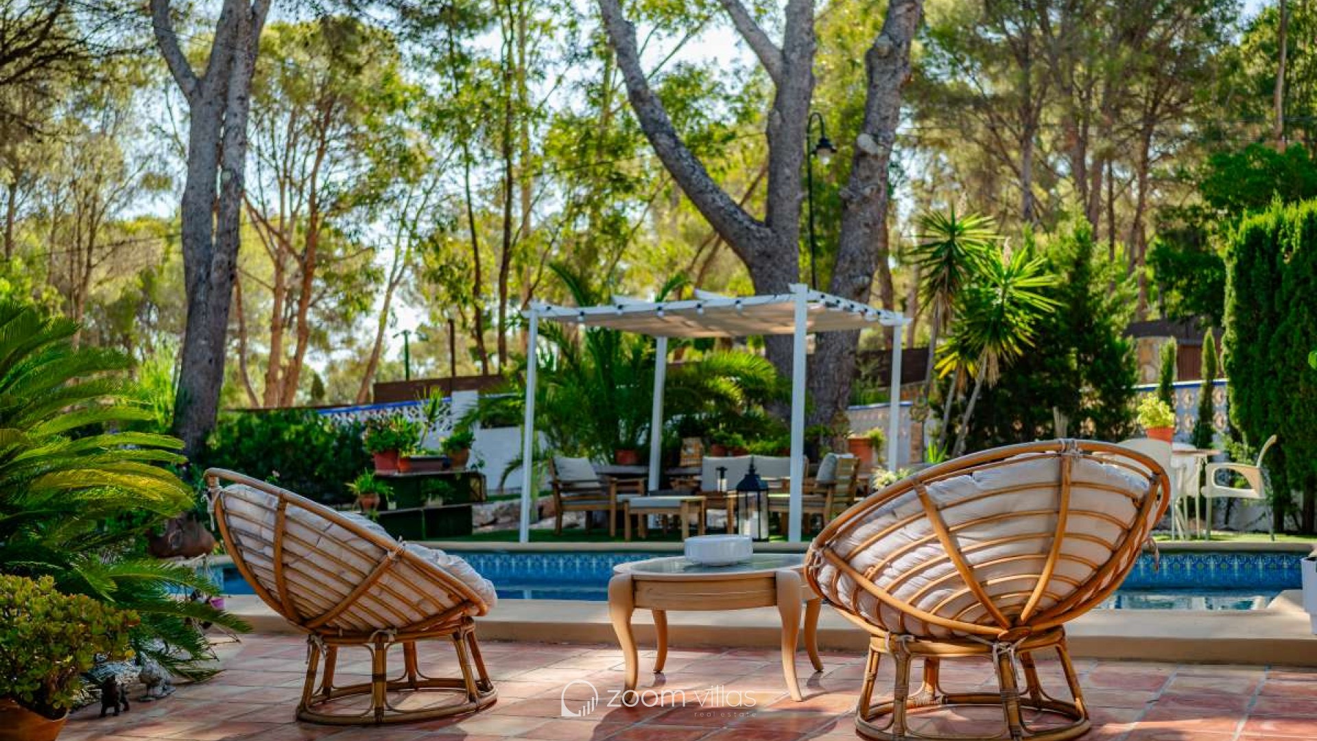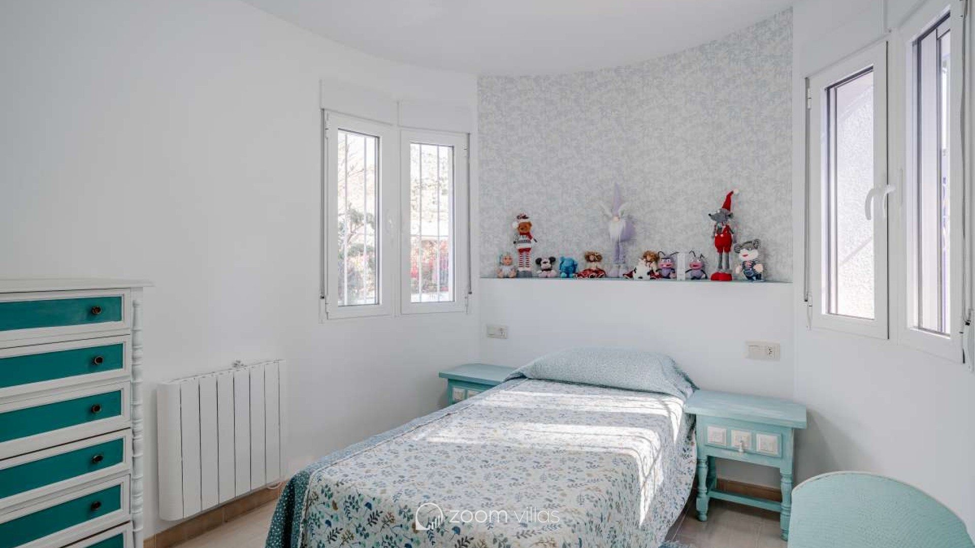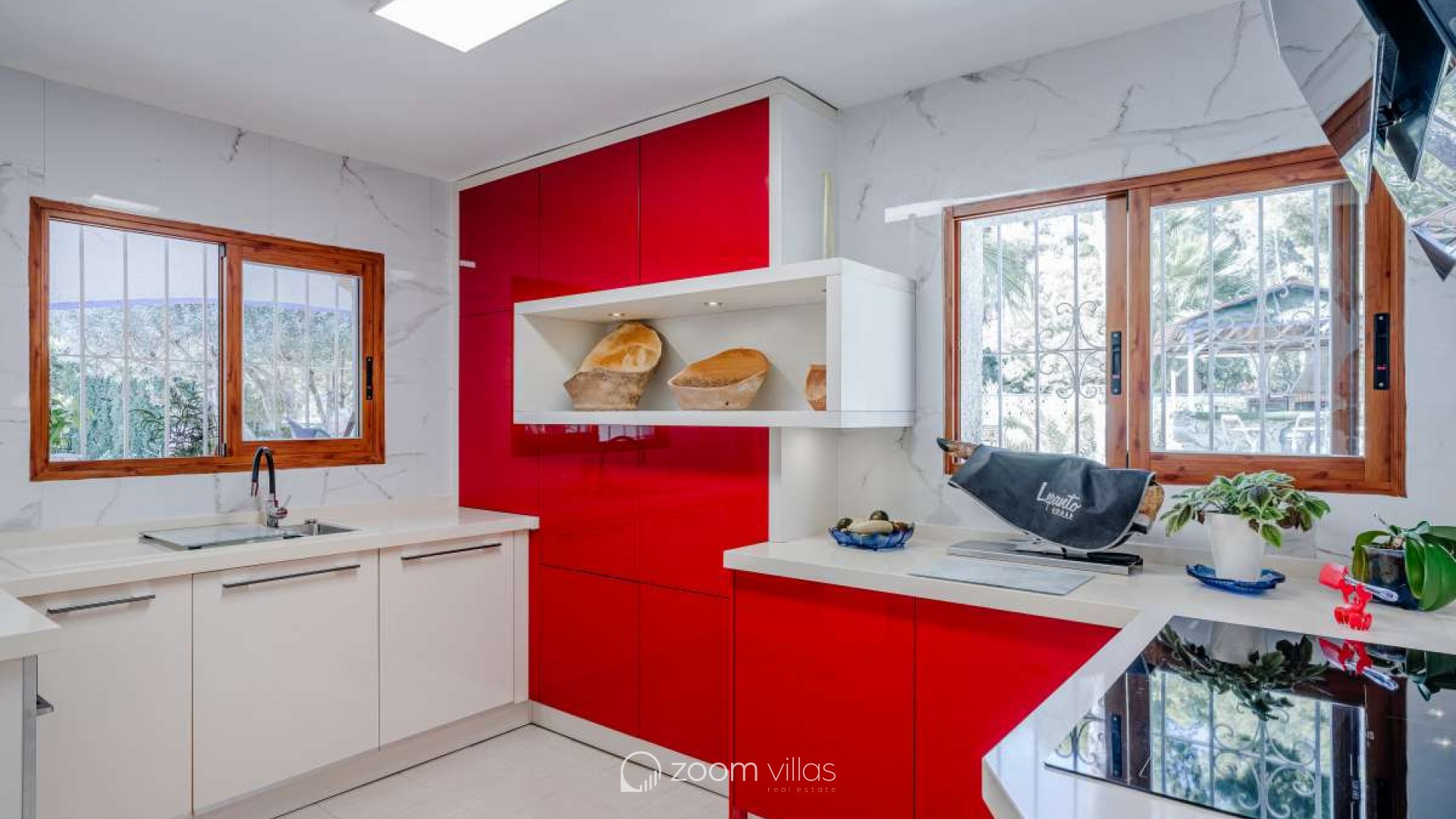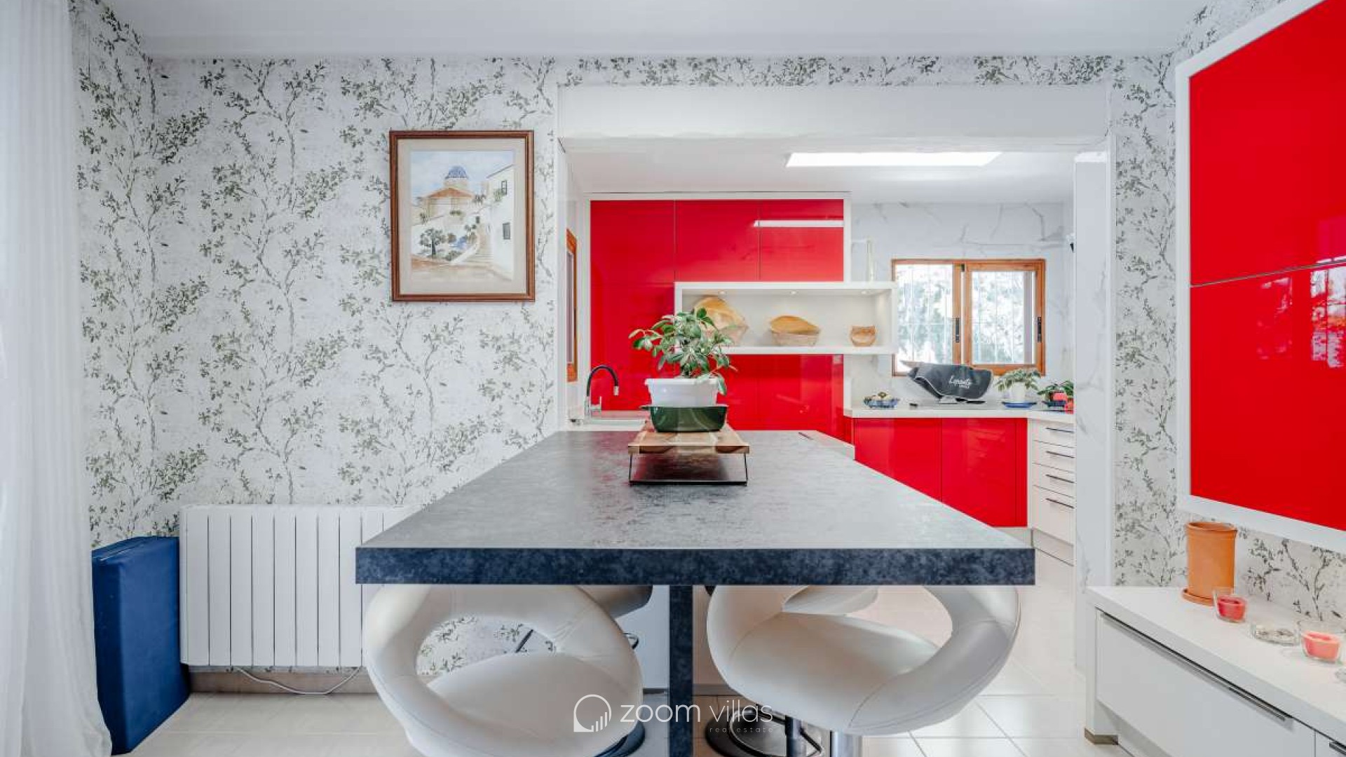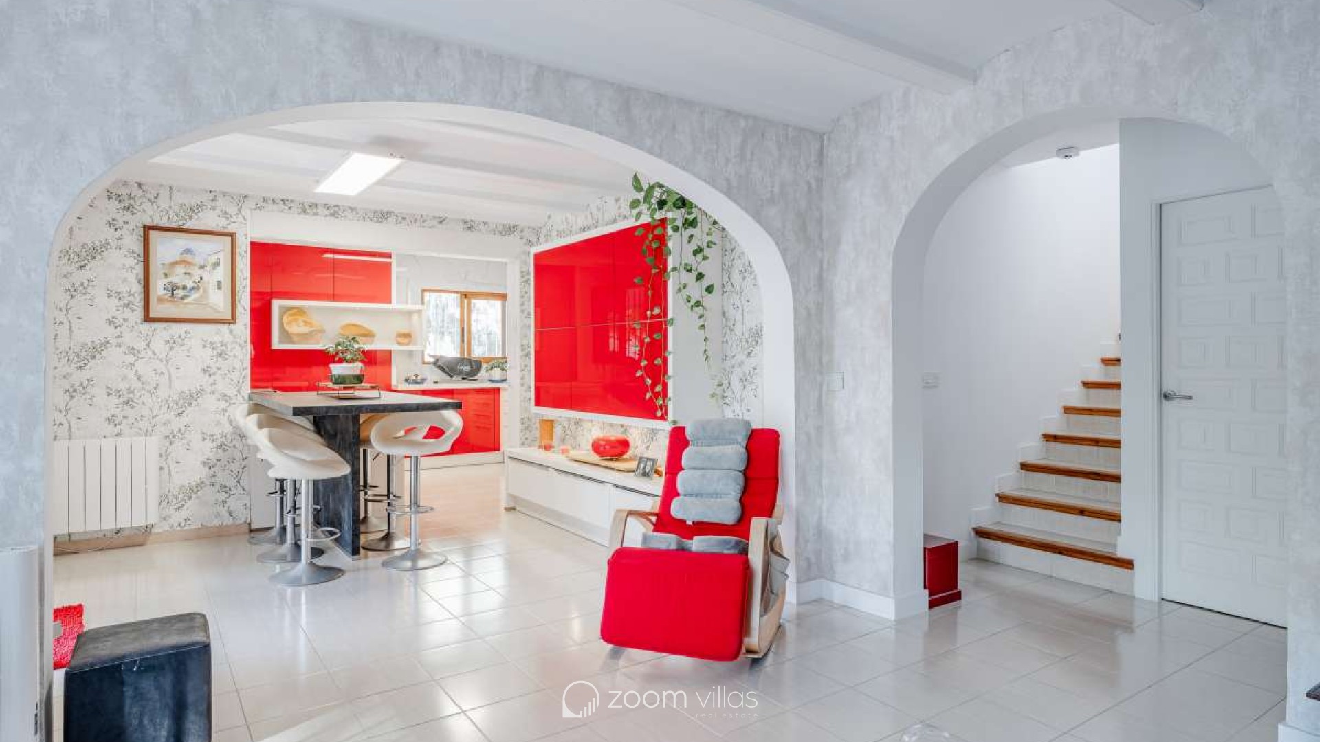 br>Ubicada en una generosa parcela de 1.377 m², esta elegante villa se encuentra rodeada de exuberantes jardines y un césped impecable. Construida en 1990, la casa destaca por sus suaves paredes exteriores de color azul cielo, un vibrante contraste con las tradicionales tejas de terracota y los detalles rústicos, que le confieren un carácter mediterráneo único.br>br> Ubicada en un entorno natural tranquilo, la villa se distribuye en dos plantas y combina comodidad con elegancia atemporal.br>br> Planta bajabr>br> La entrada da la bienvenida a una cocina abierta, perfectamente conectada con las salas de estar principales, creando un ambiente cálido y espacioso. Un práctico trastero ofrece espacio adicional para los artículos esenciales del día a día. En el corazón de la casa se encuentra el salón con una acogedora chimenea, ideal para veladas íntimas. Esta planta también ofrece dos amplios dormitorios y un baño completo, lo que garantiza funcionalidad y comodidad para la familia y los invitados.br>br> Piso superiorbr> El segundo nivel está dedicado a la lujosa suite principal, con baño en suite para una privacidad total. Un amplio armario ofrece amplio espacio de almacenamiento, mientras que la terraza privada invita a disfrutar de vistas panorámicas a la vegetación circundante. Una sala multiusos adicional sirve como oficina en casa o estudio creativo, con vistas tranquilas al jardín.br> Vida al aire librebr>br> El exterior de la propiedad está diseñado para la relajación y el entretenimiento. Una casa de huéspedes ofrece alojamiento confortable para los visitantes. Los jardines enmarcan una piscina privada de agua salada. Un amplio patio permite cenar al aire libre y disfrutar de reuniones sociales bajo el cielo mediterráneo. El aparcamiento para varios vehículos aumenta la comodidad de la villa.br>