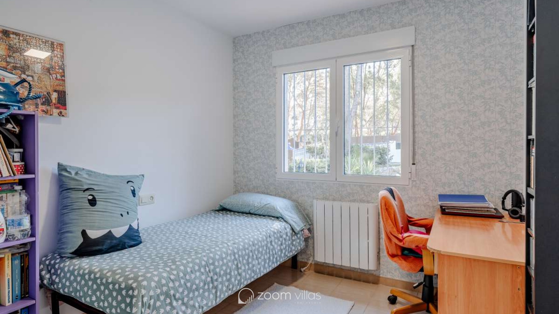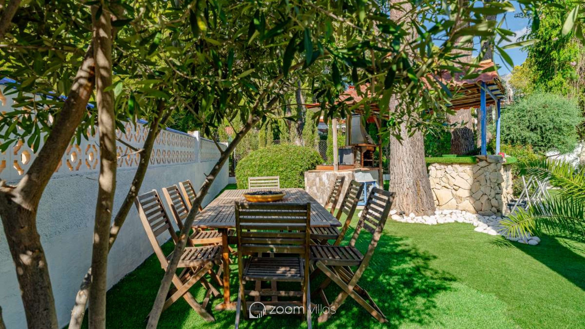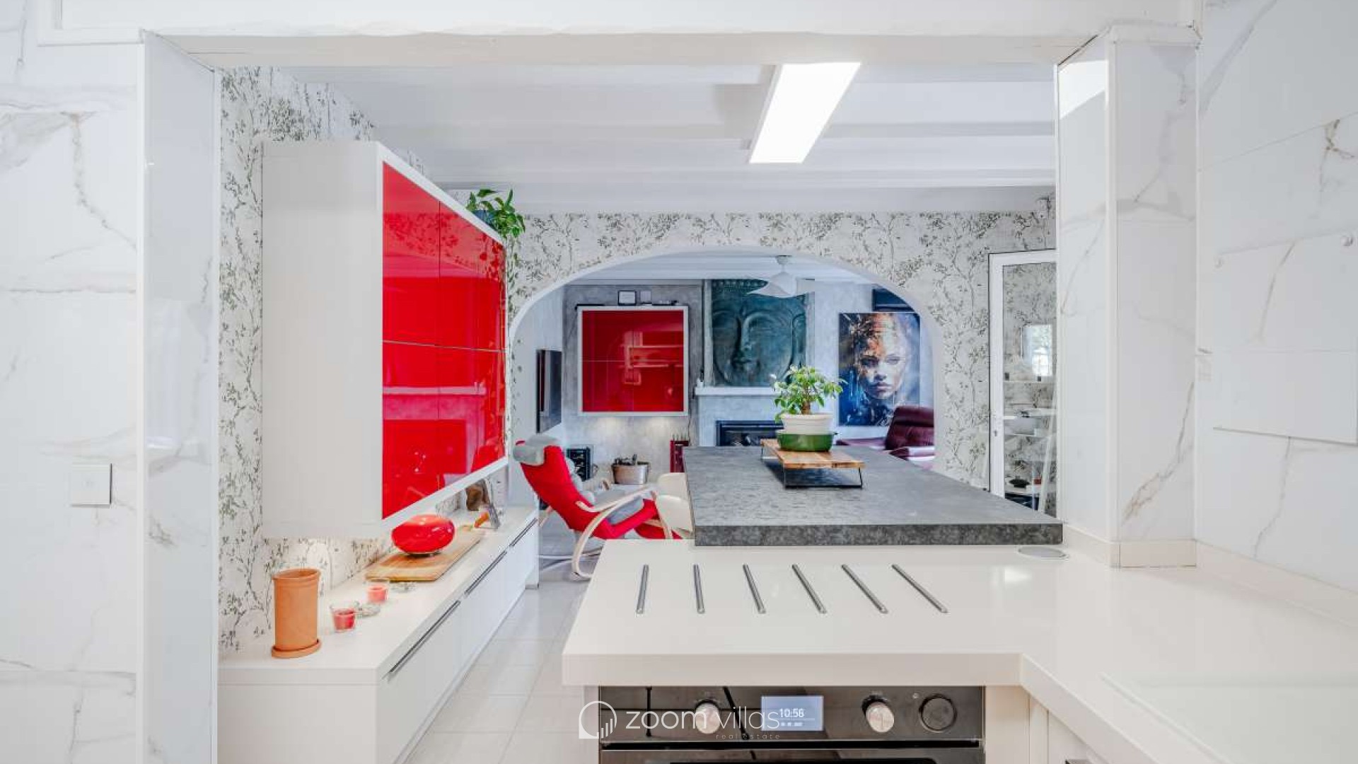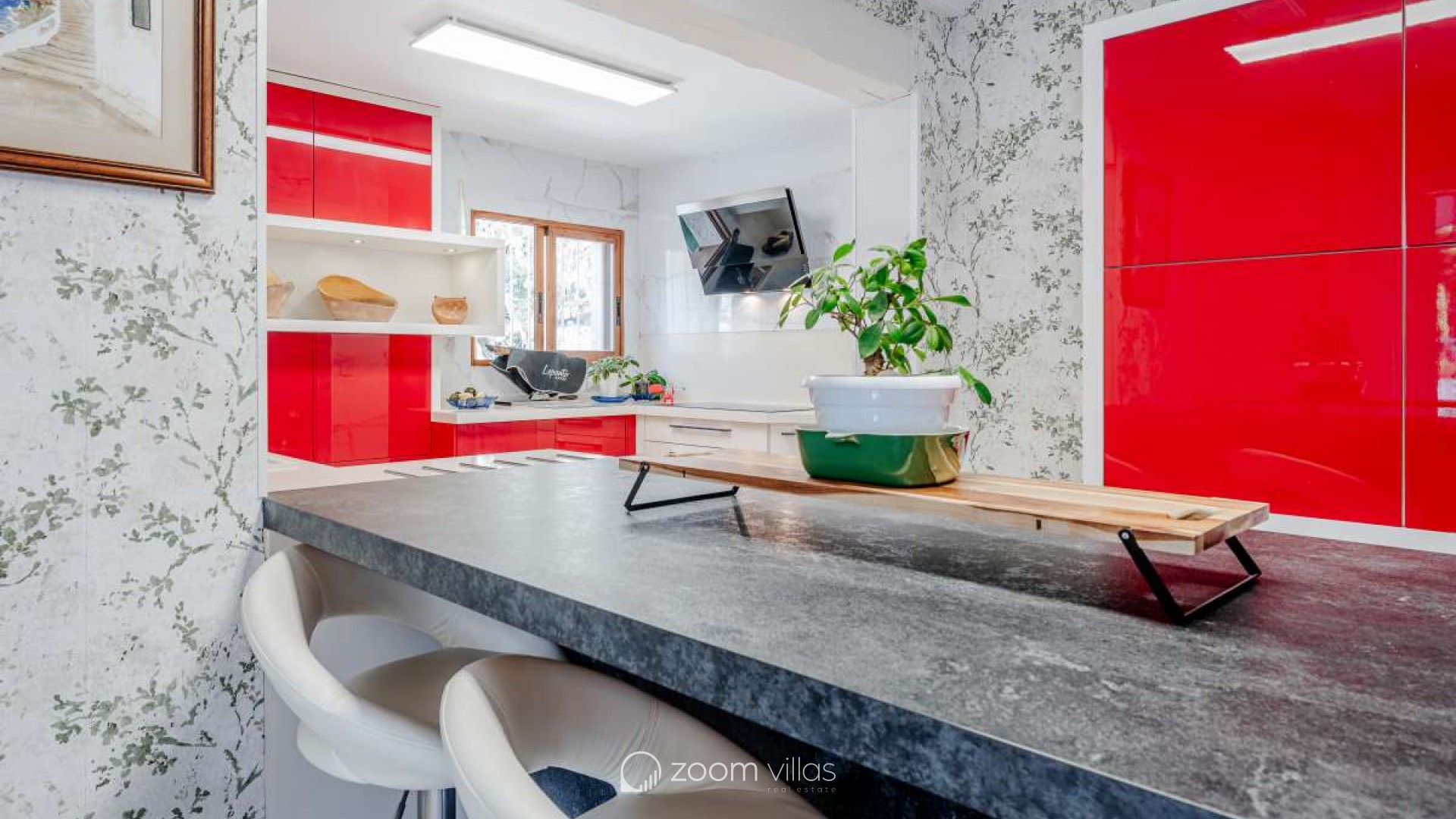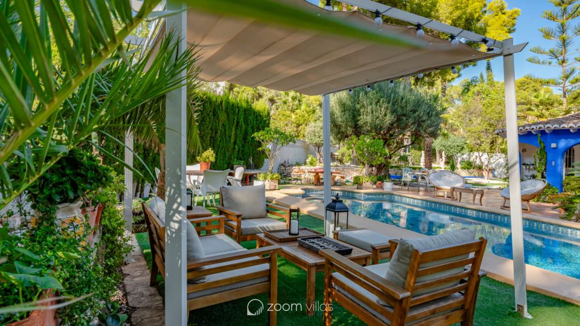 br>Ubicada en una generosa parcela de 1.377 m², esta elegante villa se encuentra rodeada de exuberantes jardines y un césped impecable. Construida en 1990, la casa destaca por sus suaves paredes exteriores de color azul cielo, un vibrante contraste con las tradicionales tejas de terracota y los detalles rústicos, que le confieren un carácter mediterráneo único.br>br> Ubicada en un entorno natural tranquilo, la villa se distribuye en dos plantas y combina comodidad con elegancia atemporal.br>br> Planta bajabr>br> La entrada da la bienvenida a una cocina abierta, perfectamente conectada con las salas de estar principales, creando un ambiente cálido y espacioso. Un práctico trastero ofrece espacio adicional para los artículos esenciales del día a día. En el corazón de la casa se encuentra el salón con una acogedora chimenea, ideal para veladas íntimas. Esta planta también ofrece dos amplios dormitorios y un baño completo, lo que garantiza funcionalidad y comodidad para la familia y los invitados.br>br> Piso superiorbr> El segundo nivel está dedicado a la lujosa suite principal, con baño en suite para una privacidad total. Un amplio armario ofrece amplio espacio de almacenamiento, mientras que la terraza privada invita a disfrutar de vistas panorámicas a la vegetación circundante. Una sala multiusos adicional sirve como oficina en casa o estudio creativo, con vistas tranquilas al jardín.br> Vida al aire librebr>br> El exterior de la propiedad está diseñado para la relajación y el entretenimiento. Una casa de huéspedes ofrece alojamiento confortable para los visitantes. Los jardines enmarcan una piscina privada de agua salada. Un amplio patio permite cenar al aire libre y disfrutar de reuniones sociales bajo el cielo mediterráneo. El aparcamiento para varios vehículos aumenta la comodidad de la villa.br>