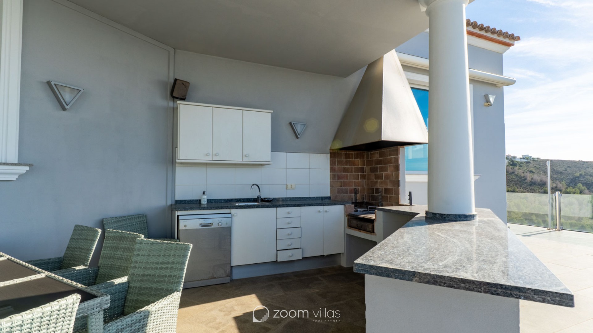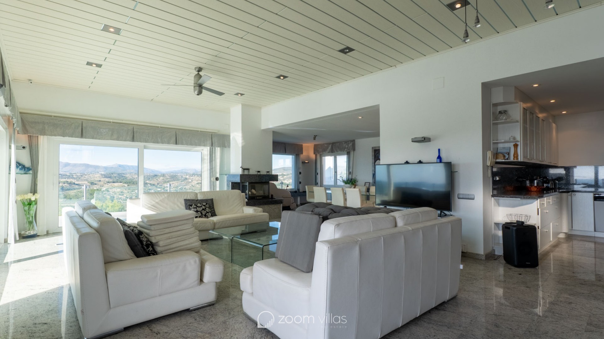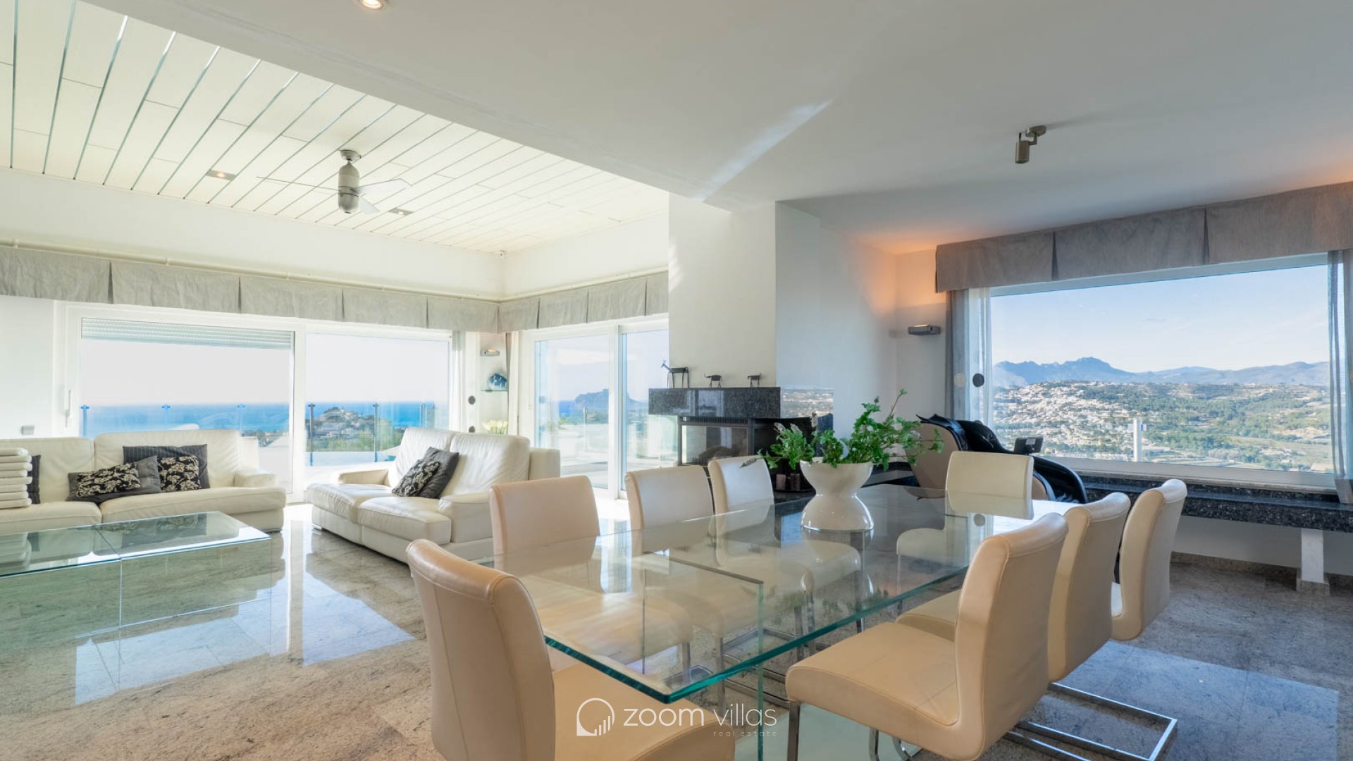 Espectacular villa de lujo con vistas panorámicas al mar, a Moraira y al emblemático Peñón de Ifach de Calpe. Situada en una de las zonas más exclusivas de la Costa Blanca, esta propiedad combina diseño contemporáneo, máxima privacidad y un enclave privilegiado a pocos minutos del centro de Moraira. En la planta principal de la villa, un elegante hall de entrada con techos altos da la bienvenida y conduce a un amplio y luminoso salón-comedor con grandes ventanales que enmarcan las impresionantes vistas. La moderna cocina de concepto abierto, totalmente equipada, se complementa con una práctica lavandería. En esta misma planta se encuentra el dormitorio principal, que dispone de baño en suite, vestidor y acceso directo a la terraza, además de un aseo de cortesía. La planta baja alberga tres dormitorios adicionales, todos con salida directa a la terraza y vistas al mar, así como tres baños (uno de ellos en suite). En esta misma planta se encuentra también una zona de bienestar con sauna, ideal para momentos de relajación. El exterior está diseñado para disfrutar del clima mediterráneo durante todo el año: una cocina exterior perfectamente equipada, amplia terraza chill-out, piscina climatizada tipo infinity que se fusiona visualmente con el mar y un jacuzzi con absoluta privacidad. La propiedad incluye además un espacioso garaje con capacidad para varios vehículos. Moraira es un encantador pueblo costero conocido por sus playas de aguas cristalinas, su elegante puerto deportivo, restaurantes de alta gastronomía y un ambiente tranquilo y sofisticado durante todo el año. Rodeado de parajes naturales, calas escondidas y rutas costeras, es uno de los destinos más valorados para quienes buscan calidad de vida, seguridad y exclusividad. Una oportunidad única para disfrutar del lujo, la comodidad y unas vistas incomparables en uno de los destinos más exclusivos de la Costa Blanca. Ideal como residencia permanente, segunda vivienda de alto nivel o inversión premium.
