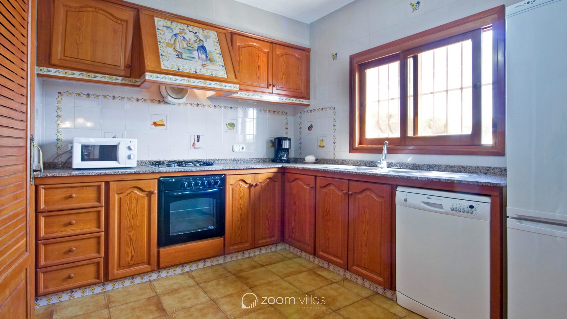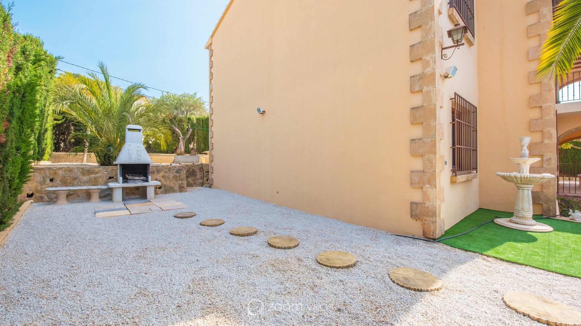 Descubra esta acogedora villa de una sola planta, ideal como residencia vacacional o inversión, ubicada en una de las zonas más demandadas de Benissa Costa. Con una parcela amplia, privacidad, espacios luminosos y una ubicación privilegiada, esta propiedad ofrece el auténtico estilo de vida mediterráneo. Distribución y características interiores: La vivienda principal se sitúa en la planta alta, ofreciendo comodidad y accesibilidad. Consta de: Amplio salón-comedor con aire acondicionado y acceso directo a la terraza. Cocina independiente totalmente equipada, con salida a la terraza cubierta, perfecta para desayunar al aire libre. Cuatro dormitorios (uno con cama de matrimonio y tres con camas individuales), todos con aire acondicionado. Dos baños completos con bañera. La planta baja consta de un garaje, baño y gran trastero, ofreciendo posibilidades futuras de ampliación si se desea. Zona exterior: La villa dispone de una magnífica parcela privada con: Piscina de 9 × 4,5 m con escaleras romanas. Amplia terraza soleada y zonas de descanso. Barbacoa de obra, ideal para reuniones familiares y amigos. Cuarto de lavandería. Espacio de aparcamiento para 2 vehículos dentro de la parcela. Ubicación privilegiada: Situada a solo 250 metros de la playa, supermercados y restaurantes, esta villa ofrece comodidad absoluta sin necesidad de coche. El centro de Calpe se encuentra a tan solo 6 km, con todos los servicios, comercios y opciones de ocio.