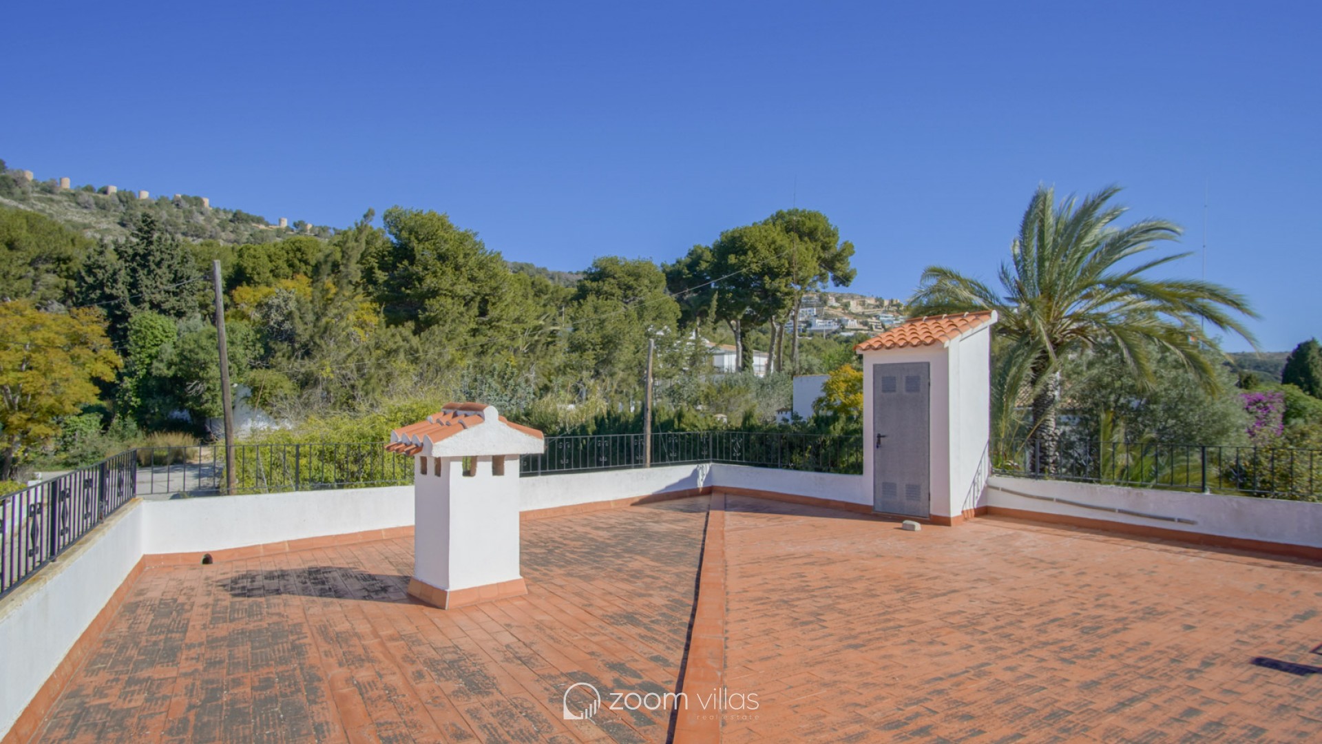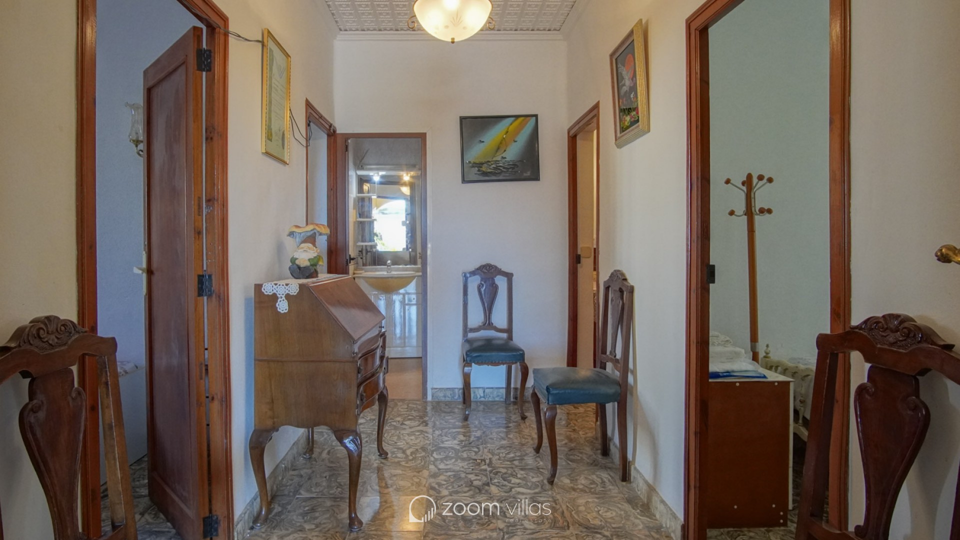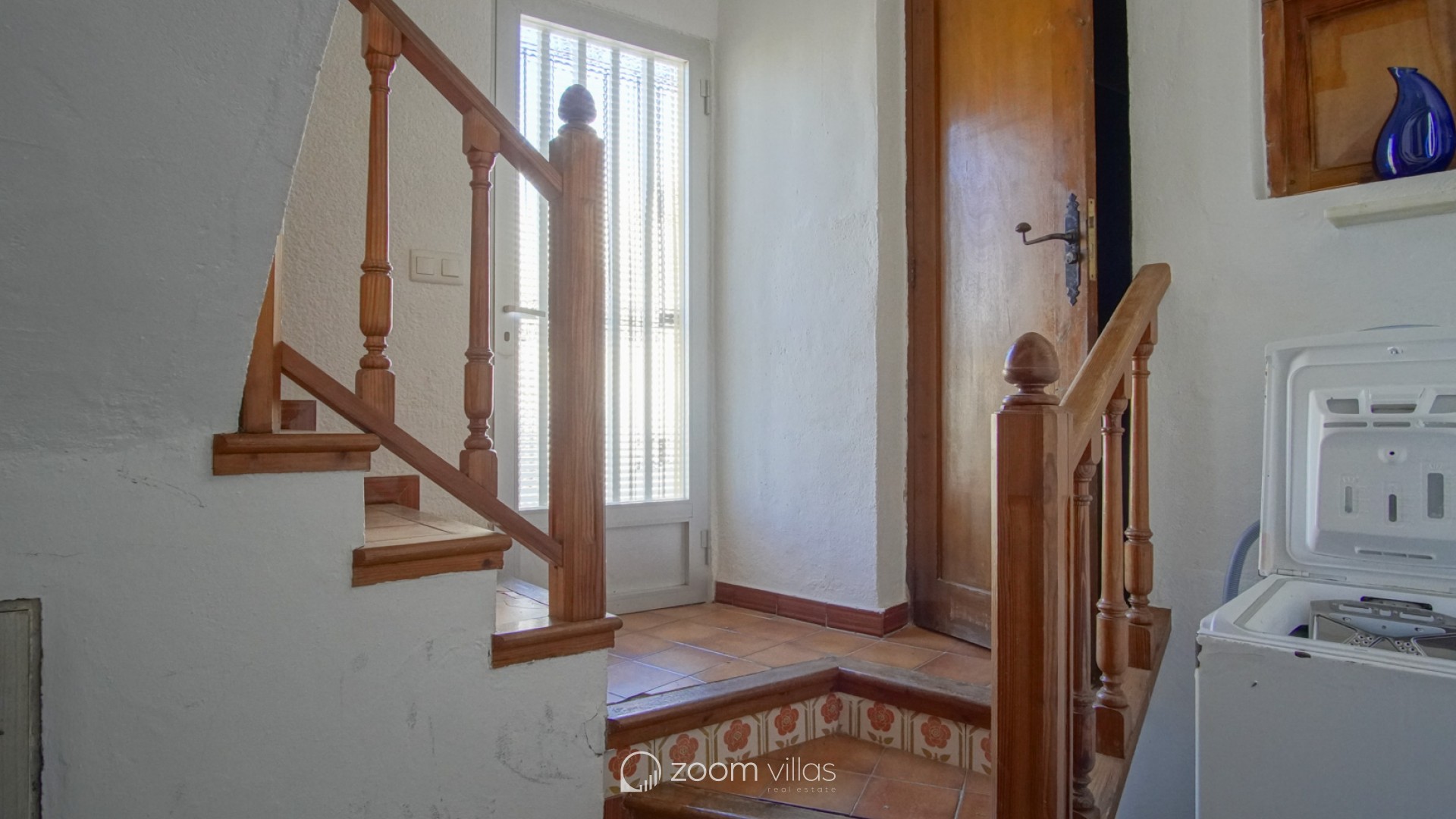 Esta villa tradicional se encuentra a 5 minutos a pie tanto del puerto como del centro de Jávea. La villa está situada en una parcela de 699 m2 y dividida en dos plantas con una superficie total construida de 214 m2. Cada planta consta de una vivienda independiente conectada internamente por escaleras. La planta baja consta de una amplia terraza cubierta, un salón, una cocina, tres dormitorios, un baño y una habitación extra que puede ser utilizada como trastero o un cuarto dormitorio. La planta superior consta de un amplio salón con acceso a una gran terraza desde donde se puede ver el mar. Esta planta consta además de una cocina, tres dormitorios y un baño. La villa también cuenta con una amplia terraza en la azotea con vistas al Montgó, Cabo de San Antonio y el mar. También hay un garaje con aparcamiento para un coche, un baño exterior, un camino de entrada con espacio para aparcar y un de jardín llano. Tanto la playa y el puerto, así como servicios como supermercados, escuelas, restaurantes, farmacias, polideportivo, etc están a poca distancia a pie. ¡Esta villa es ideal para aquellos que buscan un proyecto de renovación en una ubicación privilegiada!