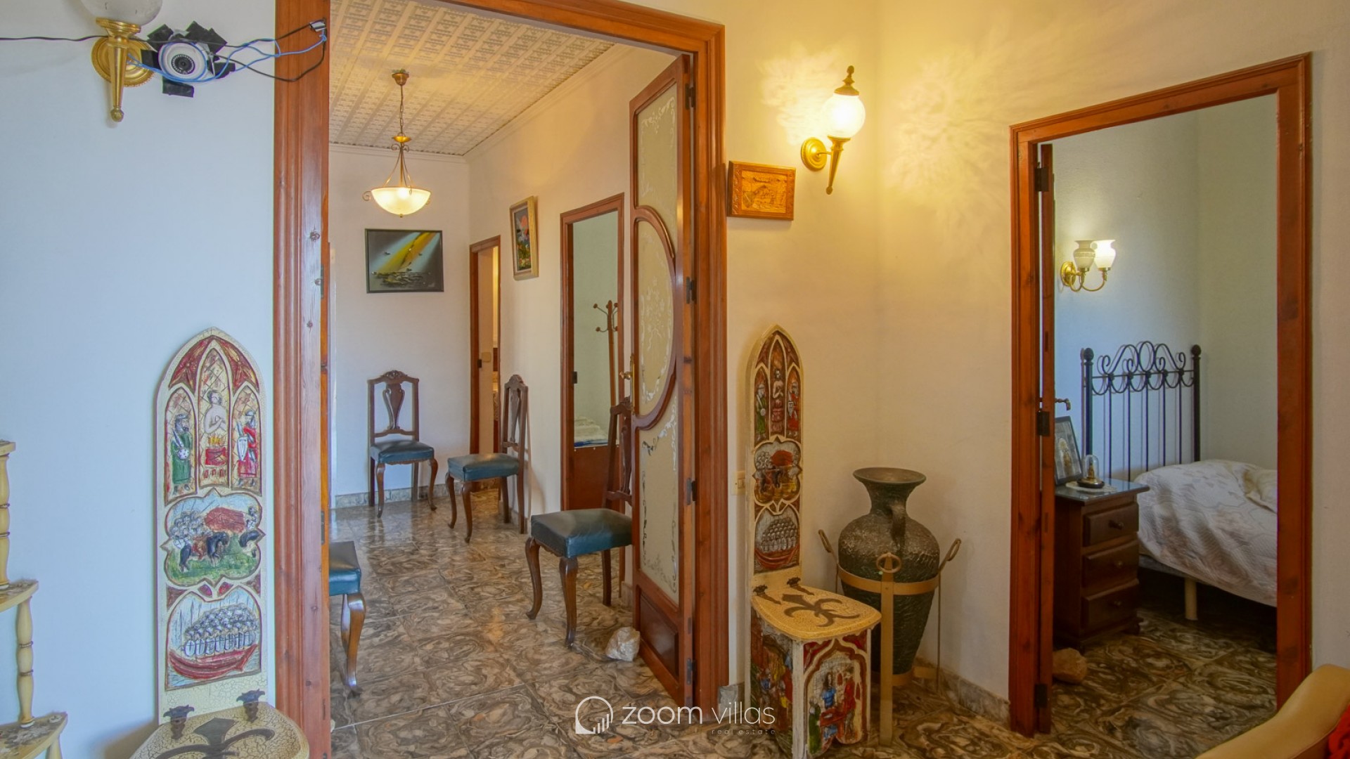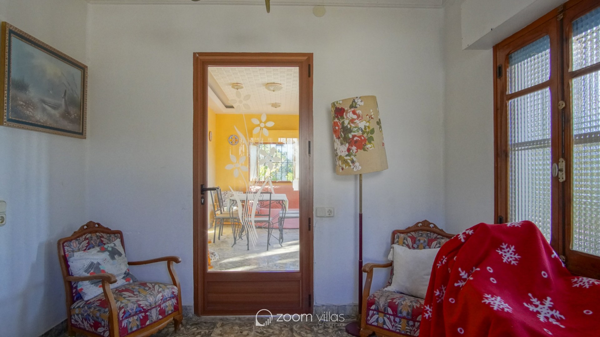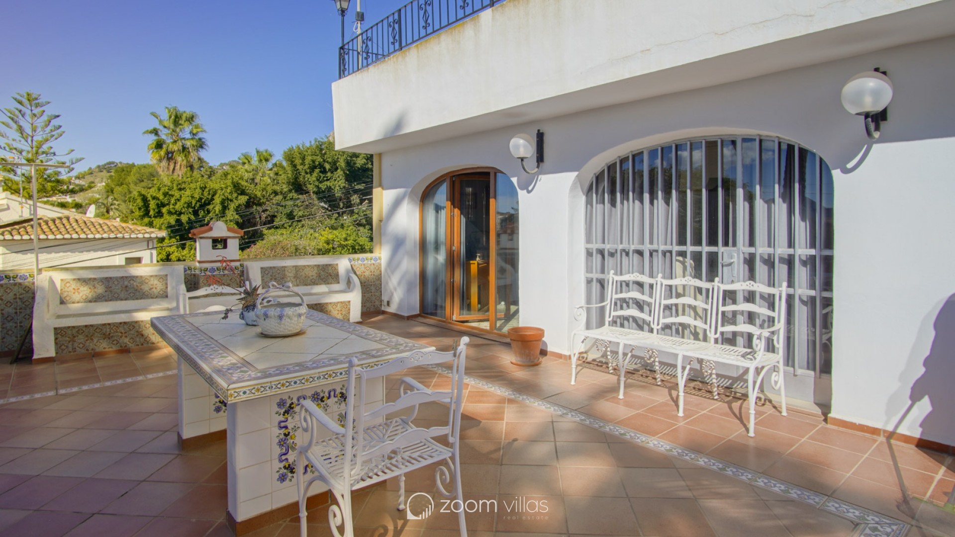 Esta villa tradicional se encuentra a 5 minutos a pie tanto del puerto como del centro de Jávea. La villa está situada en una parcela de 699 m2 y dividida en dos plantas con una superficie total construida de 214 m2. Cada planta consta de una vivienda independiente conectada internamente por escaleras. La planta baja consta de una amplia terraza cubierta, un salón, una cocina, tres dormitorios, un baño y una habitación extra que puede ser utilizada como trastero o un cuarto dormitorio. La planta superior consta de un amplio salón con acceso a una gran terraza desde donde se puede ver el mar. Esta planta consta además de una cocina, tres dormitorios y un baño. La villa también cuenta con una amplia terraza en la azotea con vistas al Montgó, Cabo de San Antonio y el mar. También hay un garaje con aparcamiento para un coche, un baño exterior, un camino de entrada con espacio para aparcar y un de jardín llano. Tanto la playa y el puerto, así como servicios como supermercados, escuelas, restaurantes, farmacias, polideportivo, etc están a poca distancia a pie. ¡Esta villa es ideal para aquellos que buscan un proyecto de renovación en una ubicación privilegiada!