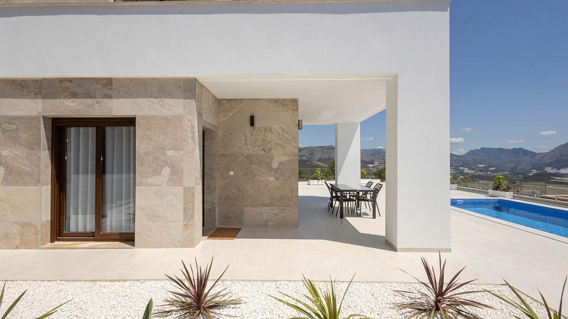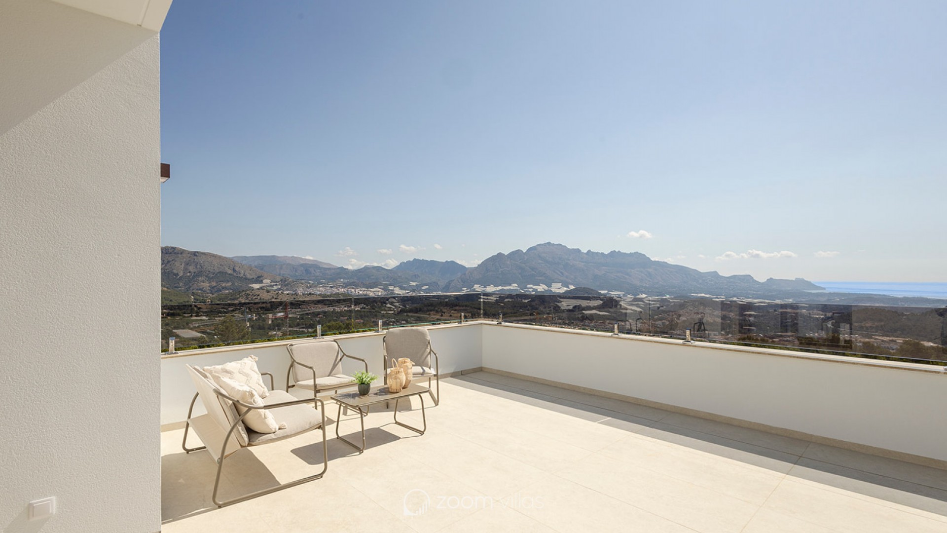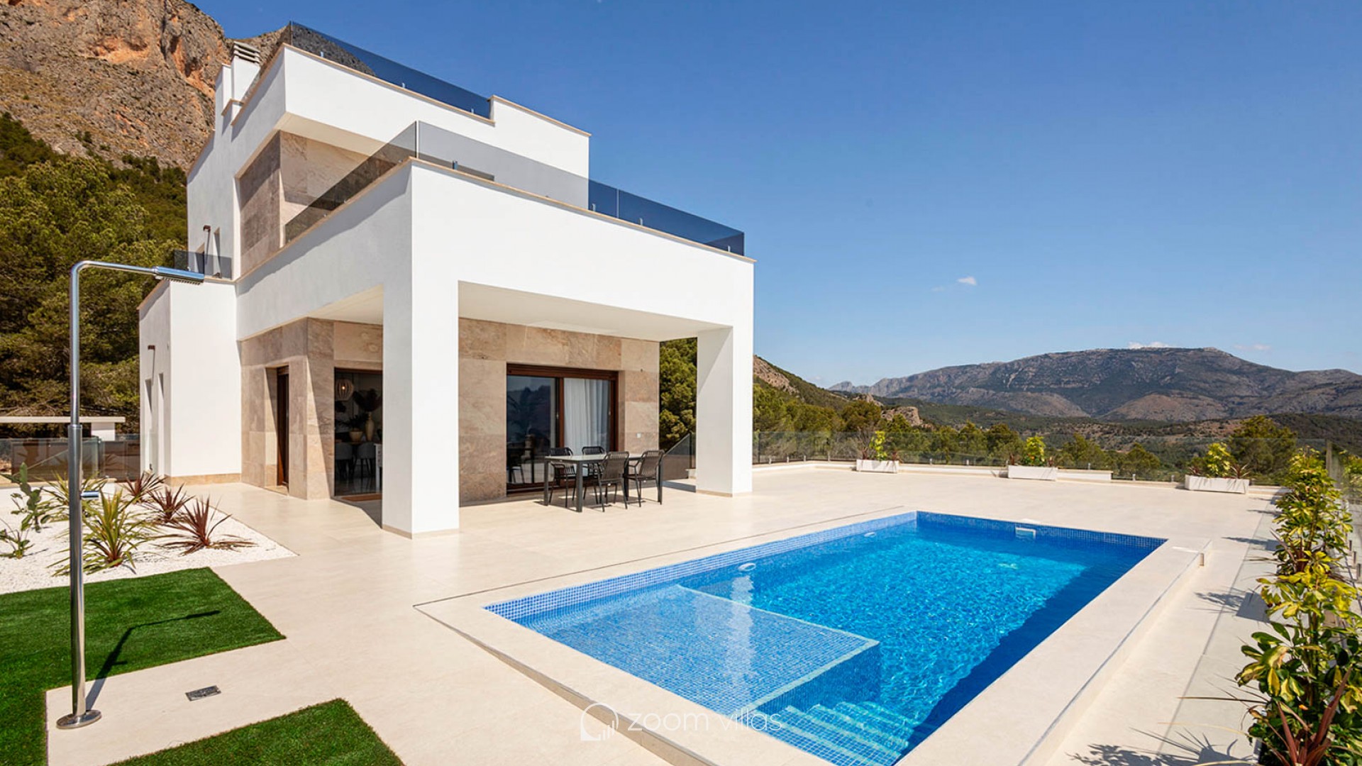 Villa independiente de diseño moderno con impresionantes vistas al mar y la montaña. Ubicada en un entorno tranquilo y elevado, esta vivienda combina líneas contemporáneas, luminosidad y una cuidada integración con el paisaje. La propiedad se distribuye en dos plantas. En la planta principal encontramos un amplio y luminoso salón-comedor con cocina abierta, concebido como un espacio funcional y acogedor, además de un dormitorio, un baño completo y un aseo de cortesía para invitados. En la planta superior se sitúan dos dormitorios en suite, ambos con baño privado y acceso a dos terrazas desde la que disfrutar de las vistas despejadas. Existe la posibilidad de añadir una tercera planta tipo solárium (opcional, con coste adicional), ideal para crear una zona chill out o disfrutar del clima mediterráneo durante todo el año. En el exterior, la villa ofrece jardines de fácil mantenimiento, piscina privada de 7x3 m con ducha exterior y plaza de aparcamiento dentro de la parcela. Una vivienda pensada para disfrutar del confort, la privacidad y las vistas, tanto como residencia habitual como inversión. A consultar disponibilidad y precio.