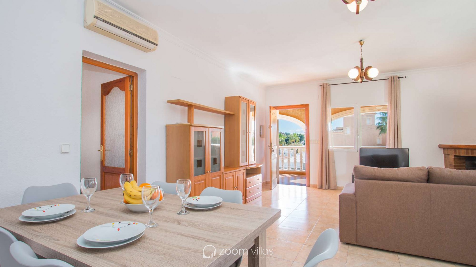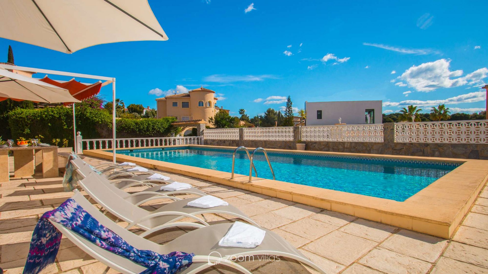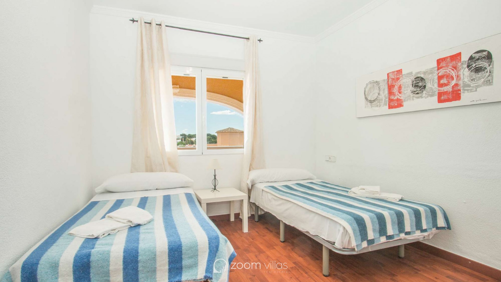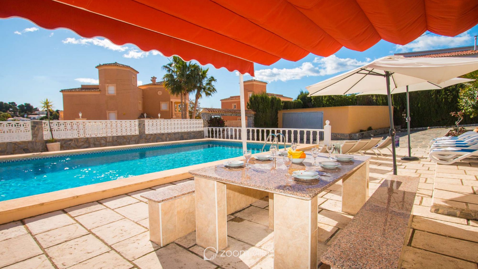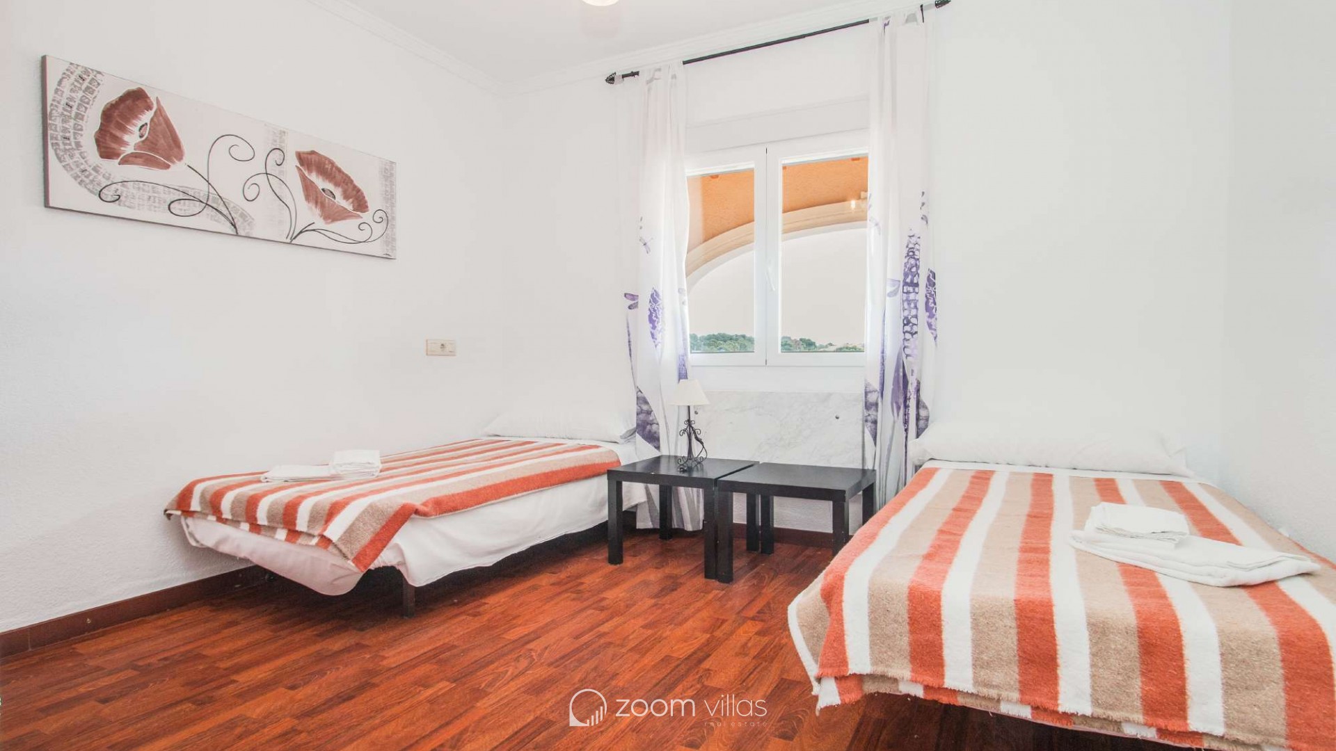 Villa con piscina privada en Calpe (Costa Blanca). La villa se encuentra ubicada en la urbanización residencial Costeres, zona privilegiada por su cercanía a la playa. Esta amplia villa, está formada por cuatro apartamentos independientes. Cada apartamento posee 120 m2 distribuidos en salón-comedor, cocina y tres dormitorios (en total doce dormitorios). INTERIOR: Planta baja: La planta baja está compuesta por dos apartamentos con entrada independiente en cada uno de ellos. Apartamento 1: (acceso por escalones desde zona de parking) Salón-comedor con mobiliario confortable, TV TDT/Sat, aire acondicionado y salida a terraza cubierta. Cocina independiente totalmente equipada. Tres dormitorios con aire acondicionado, uno de ellos con una cama de matrimonio y los otros dos con dos camas individuales. un baño con bañera, lavabo y wc. un aseo con lavabo y wc. Apartamento 2: Salón-comedor con mobiliario confortable, TV TDT/Sat, aire acondicionado y salida a terraza cubierta. Cocina independiente totalmente equipada. Tres dormitorios con aire acondicionado, los tres con dos camas individuales. Un baño con bañera, lavabo y wc. Y un aseo con lavabo y wc. Apartamento 3: (acceso por escalones desde zona de parking) Salón-comedor con mobiliario confortable, TV TDT/Sat, aire acondicionado y salida a terraza cubierta. Cocina independiente totalmente equipada. Tres dormitorios con aire acondicionado, uno de ellos con una cama de matrimonio y los otros dos con dos camas individuales. un baño con bañera, lavabo y wc. un aseo con lavabo y wc. Primera Planta: (Acceso por escaleras exteriores) La planta alta está compuesta por dos apartamentos con entrada independiente en cada uno de ellos. Apartamento 4: Salón-comedor con mobiliario confortable, TV TDT/Sat, aire acondicionado y salida a terraza cubierta. Cocina independiente totalmente equipada. Tres dormitorios con aire acondicionado, los tres con dos camas individuales. Un baño con bañera, lavabo y wc. Y un baño con ducha, lavabo y wc. EXTERIOR: La villa posee una parcela cerrada de 1450 m2, en la que se encuentra una extensa piscina con una zona de terraza llana. Ducha exterior. La villa dispone de una barbacoa de obra para realizar comidas. Parking dentro de la misma parcela para cinco-seis vehículos. UBICACIÓN: Ubicada a 1,8 km aproximadamente de la playa, paseo marítimo y todos los servicios. Calpe pueblo se encuentra a 3,5 km aproximadamente.