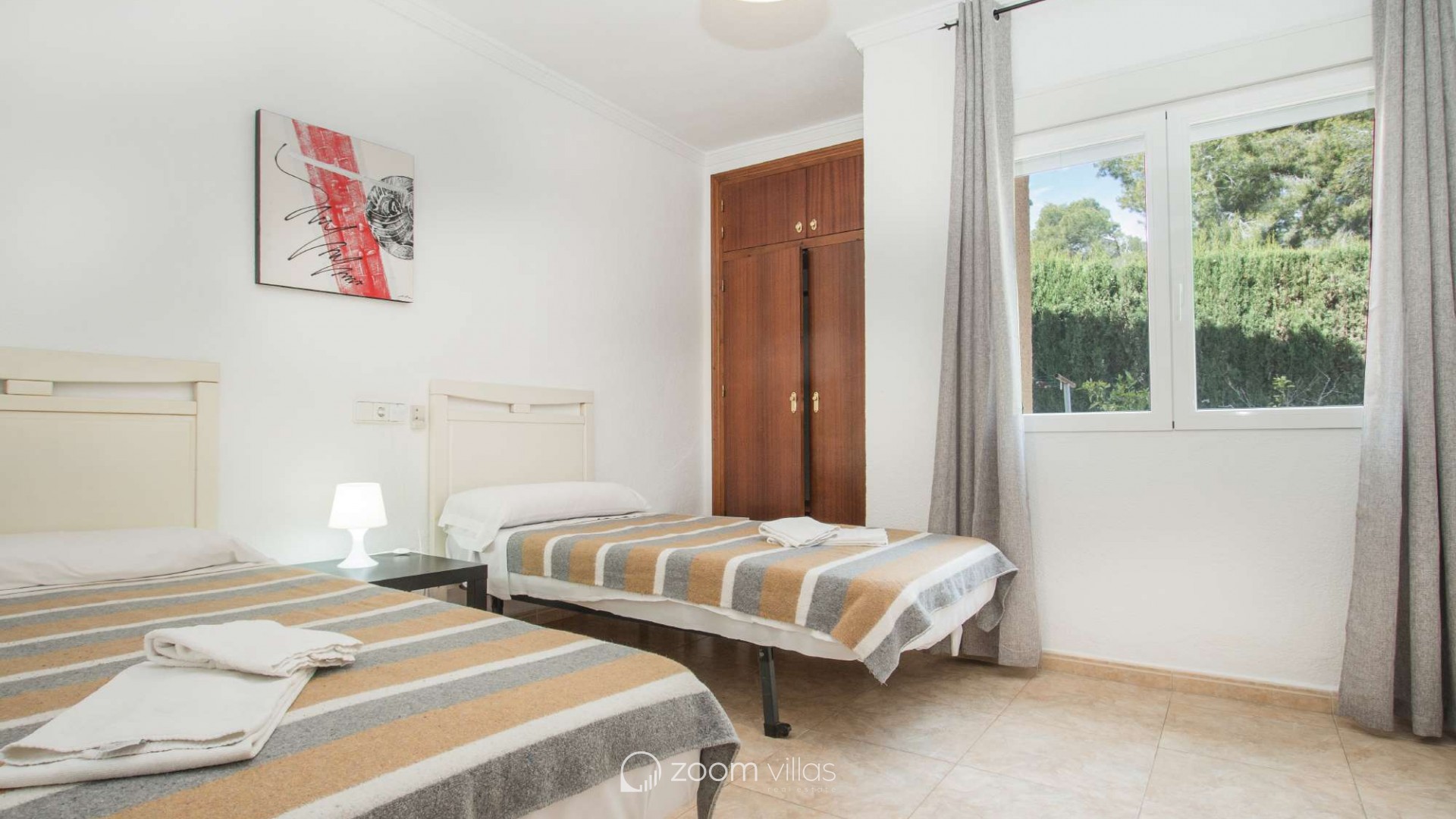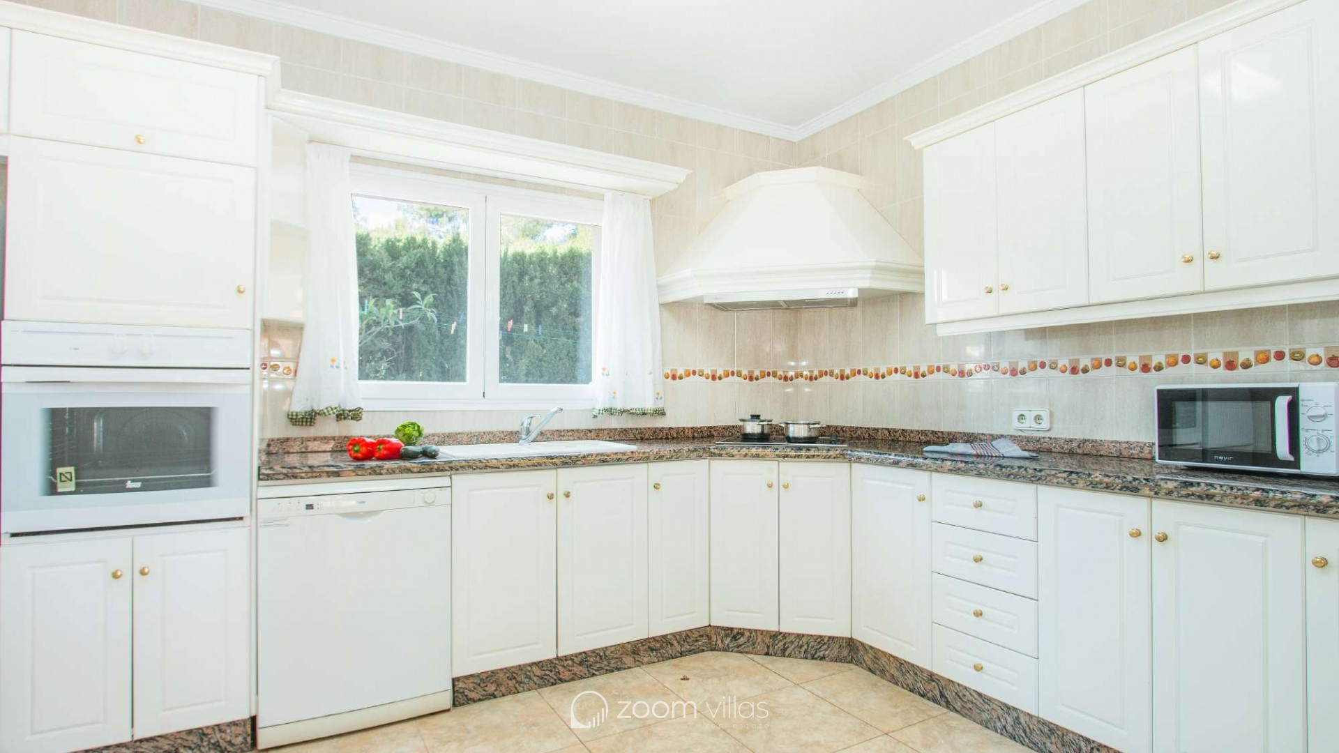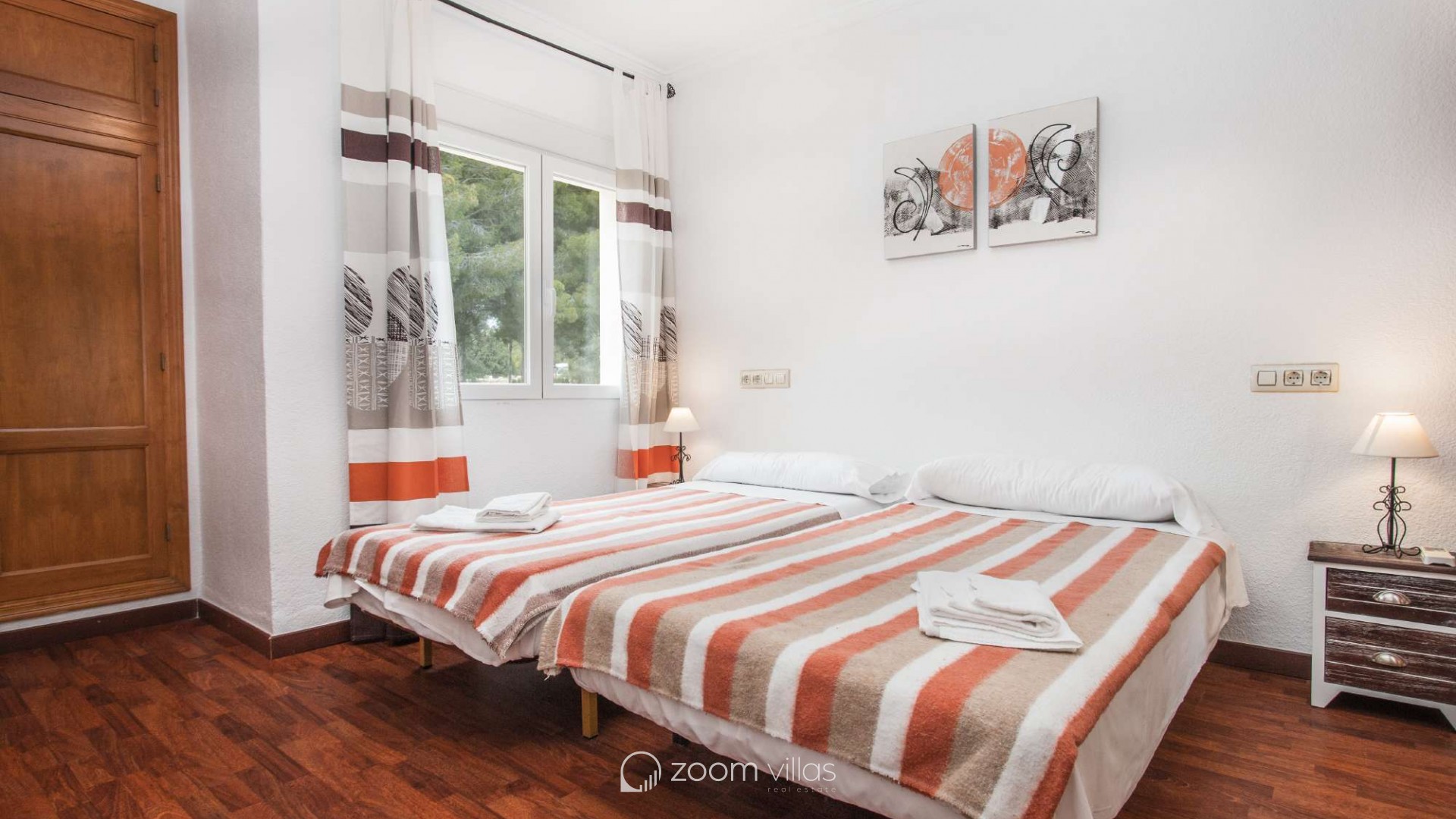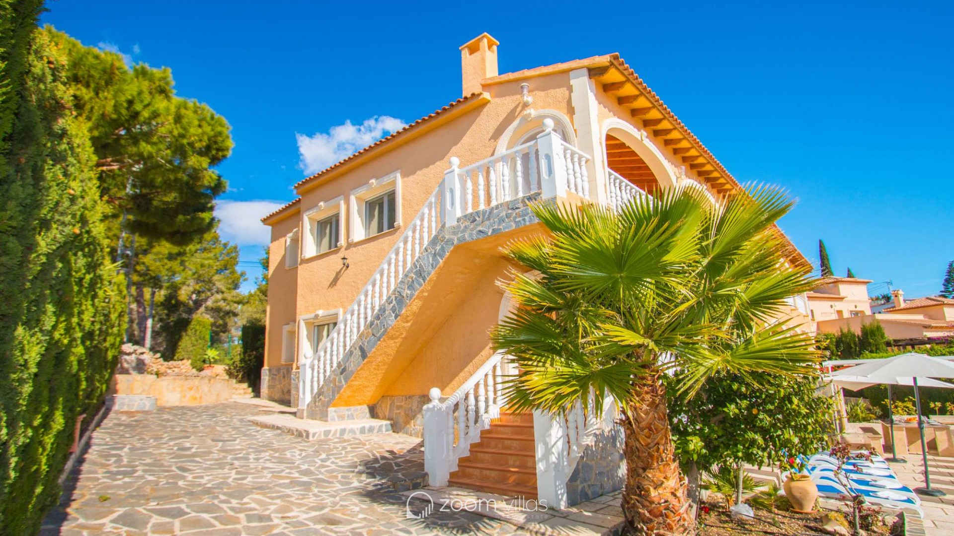 Villa con piscina privada en Calpe (Costa Blanca). La villa se encuentra ubicada en la urbanización residencial Costeres, zona privilegiada por su cercanía a la playa. Esta amplia villa, está formada por cuatro apartamentos independientes. Cada apartamento posee 120 m2 distribuidos en salón-comedor, cocina y tres dormitorios (en total doce dormitorios). INTERIOR: Planta baja: La planta baja está compuesta por dos apartamentos con entrada independiente en cada uno de ellos. Apartamento 1: (acceso por escalones desde zona de parking) Salón-comedor con mobiliario confortable, TV TDT/Sat, aire acondicionado y salida a terraza cubierta. Cocina independiente totalmente equipada. Tres dormitorios con aire acondicionado, uno de ellos con una cama de matrimonio y los otros dos con dos camas individuales. un baño con bañera, lavabo y wc. un aseo con lavabo y wc. Apartamento 2: Salón-comedor con mobiliario confortable, TV TDT/Sat, aire acondicionado y salida a terraza cubierta. Cocina independiente totalmente equipada. Tres dormitorios con aire acondicionado, los tres con dos camas individuales. Un baño con bañera, lavabo y wc. Y un aseo con lavabo y wc. Apartamento 3: (acceso por escalones desde zona de parking) Salón-comedor con mobiliario confortable, TV TDT/Sat, aire acondicionado y salida a terraza cubierta. Cocina independiente totalmente equipada. Tres dormitorios con aire acondicionado, uno de ellos con una cama de matrimonio y los otros dos con dos camas individuales. un baño con bañera, lavabo y wc. un aseo con lavabo y wc. Primera Planta: (Acceso por escaleras exteriores) La planta alta está compuesta por dos apartamentos con entrada independiente en cada uno de ellos. Apartamento 4: Salón-comedor con mobiliario confortable, TV TDT/Sat, aire acondicionado y salida a terraza cubierta. Cocina independiente totalmente equipada. Tres dormitorios con aire acondicionado, los tres con dos camas individuales. Un baño con bañera, lavabo y wc. Y un baño con ducha, lavabo y wc. EXTERIOR: La villa posee una parcela cerrada de 1450 m2, en la que se encuentra una extensa piscina con una zona de terraza llana. Ducha exterior. La villa dispone de una barbacoa de obra para realizar comidas. Parking dentro de la misma parcela para cinco-seis vehículos. UBICACIÓN: Ubicada a 1,8 km aproximadamente de la playa, paseo marítimo y todos los servicios. Calpe pueblo se encuentra a 3,5 km aproximadamente.