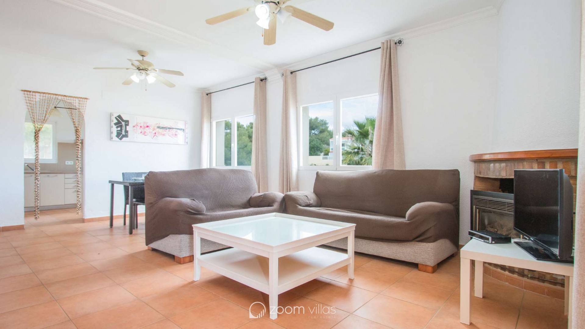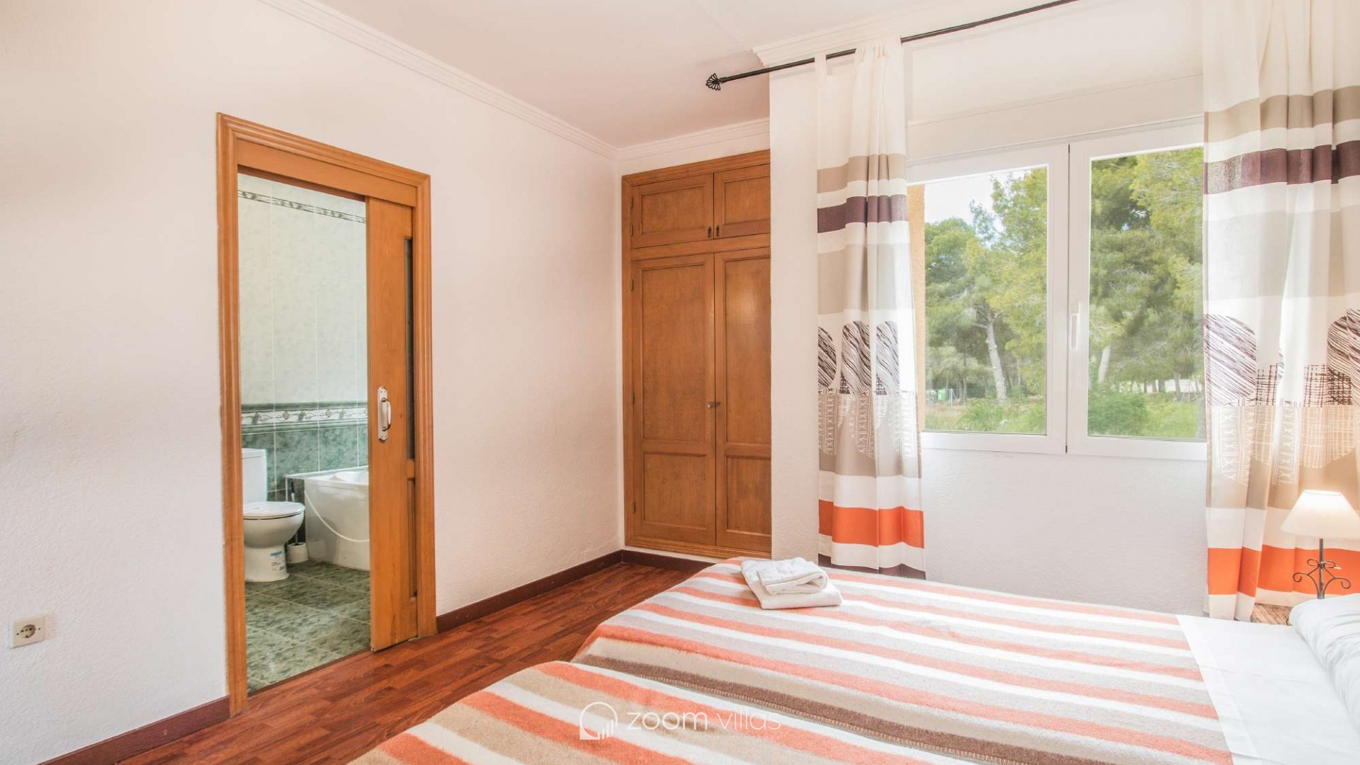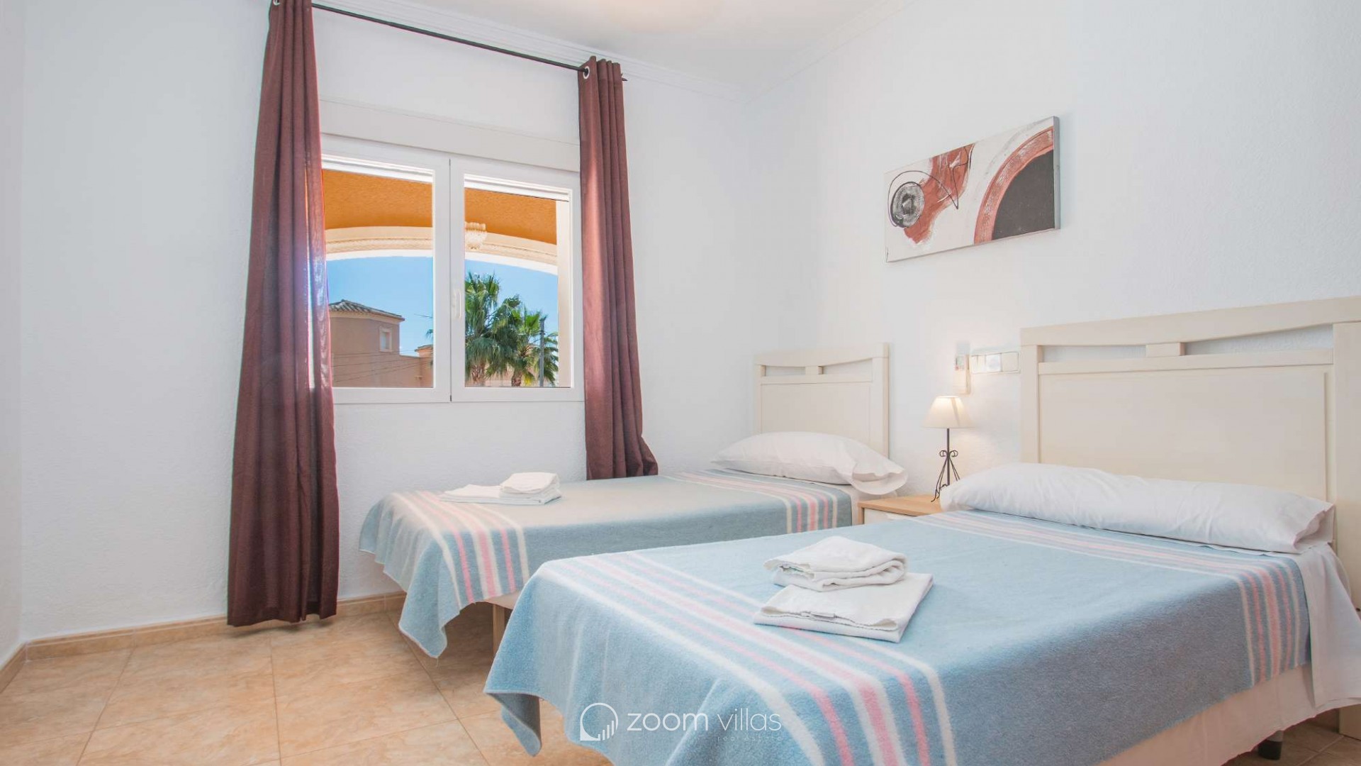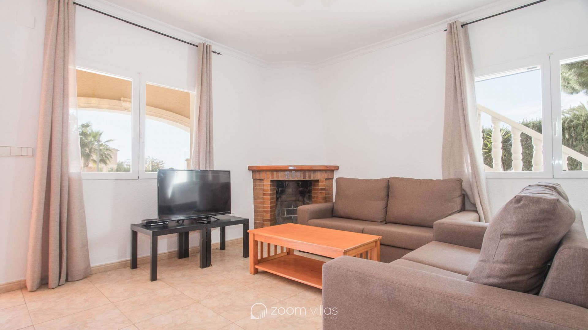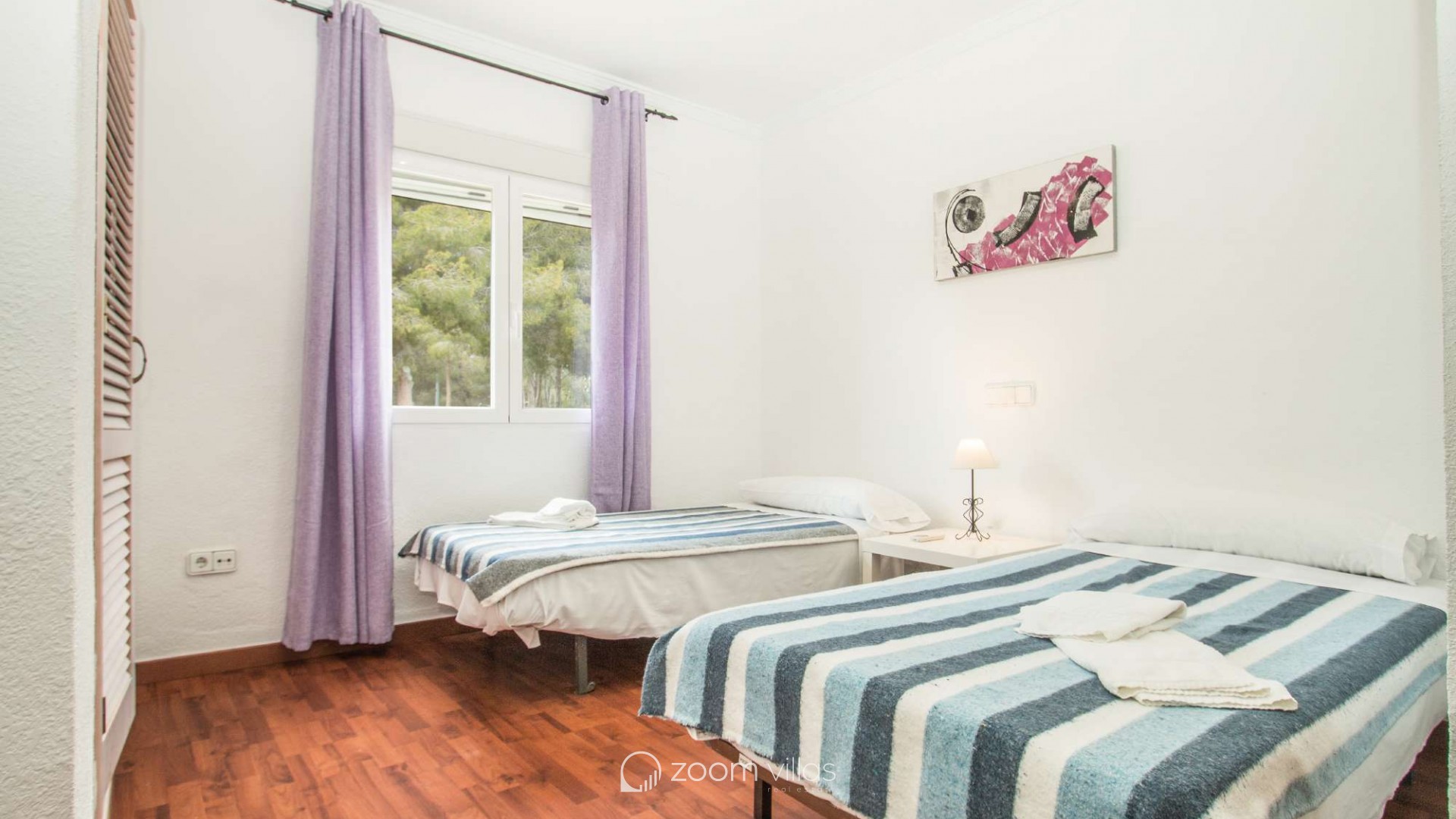 Villa con piscina privada en Calpe (Costa Blanca). La villa se encuentra ubicada en la urbanización residencial Costeres, zona privilegiada por su cercanía a la playa. Esta amplia villa, está formada por cuatro apartamentos independientes. Cada apartamento posee 120 m2 distribuidos en salón-comedor, cocina y tres dormitorios (en total doce dormitorios). INTERIOR: Planta baja: La planta baja está compuesta por dos apartamentos con entrada independiente en cada uno de ellos. Apartamento 1: (acceso por escalones desde zona de parking) Salón-comedor con mobiliario confortable, TV TDT/Sat, aire acondicionado y salida a terraza cubierta. Cocina independiente totalmente equipada. Tres dormitorios con aire acondicionado, uno de ellos con una cama de matrimonio y los otros dos con dos camas individuales. un baño con bañera, lavabo y wc. un aseo con lavabo y wc. Apartamento 2: Salón-comedor con mobiliario confortable, TV TDT/Sat, aire acondicionado y salida a terraza cubierta. Cocina independiente totalmente equipada. Tres dormitorios con aire acondicionado, los tres con dos camas individuales. Un baño con bañera, lavabo y wc. Y un aseo con lavabo y wc. Apartamento 3: (acceso por escalones desde zona de parking) Salón-comedor con mobiliario confortable, TV TDT/Sat, aire acondicionado y salida a terraza cubierta. Cocina independiente totalmente equipada. Tres dormitorios con aire acondicionado, uno de ellos con una cama de matrimonio y los otros dos con dos camas individuales. un baño con bañera, lavabo y wc. un aseo con lavabo y wc. Primera Planta: (Acceso por escaleras exteriores) La planta alta está compuesta por dos apartamentos con entrada independiente en cada uno de ellos. Apartamento 4: Salón-comedor con mobiliario confortable, TV TDT/Sat, aire acondicionado y salida a terraza cubierta. Cocina independiente totalmente equipada. Tres dormitorios con aire acondicionado, los tres con dos camas individuales. Un baño con bañera, lavabo y wc. Y un baño con ducha, lavabo y wc. EXTERIOR: La villa posee una parcela cerrada de 1450 m2, en la que se encuentra una extensa piscina con una zona de terraza llana. Ducha exterior. La villa dispone de una barbacoa de obra para realizar comidas. Parking dentro de la misma parcela para cinco-seis vehículos. UBICACIÓN: Ubicada a 1,8 km aproximadamente de la playa, paseo marítimo y todos los servicios. Calpe pueblo se encuentra a 3,5 km aproximadamente.