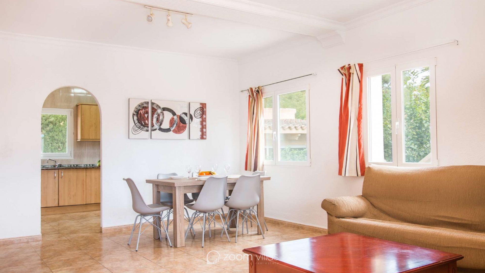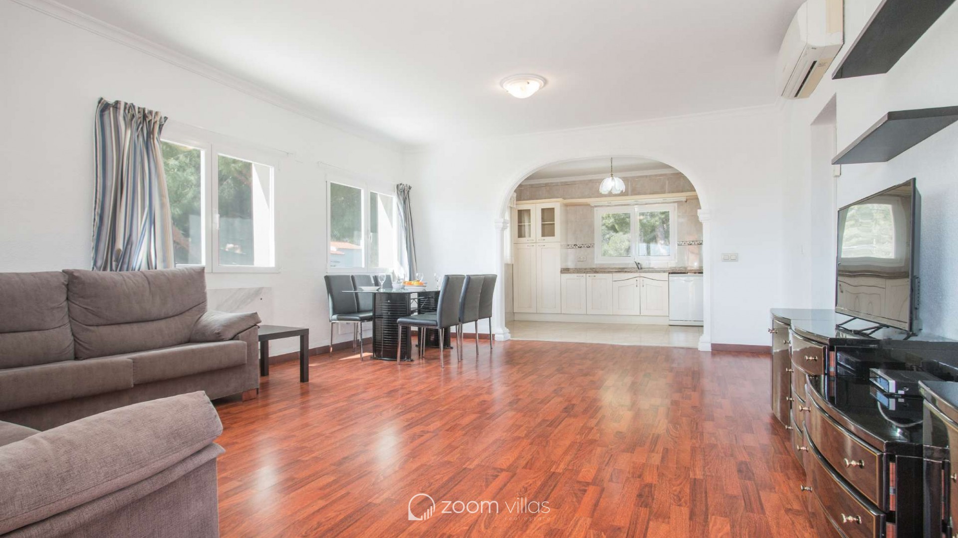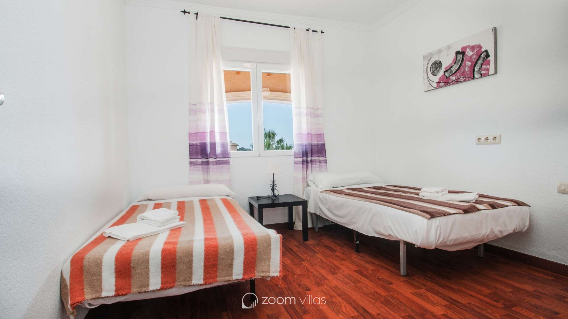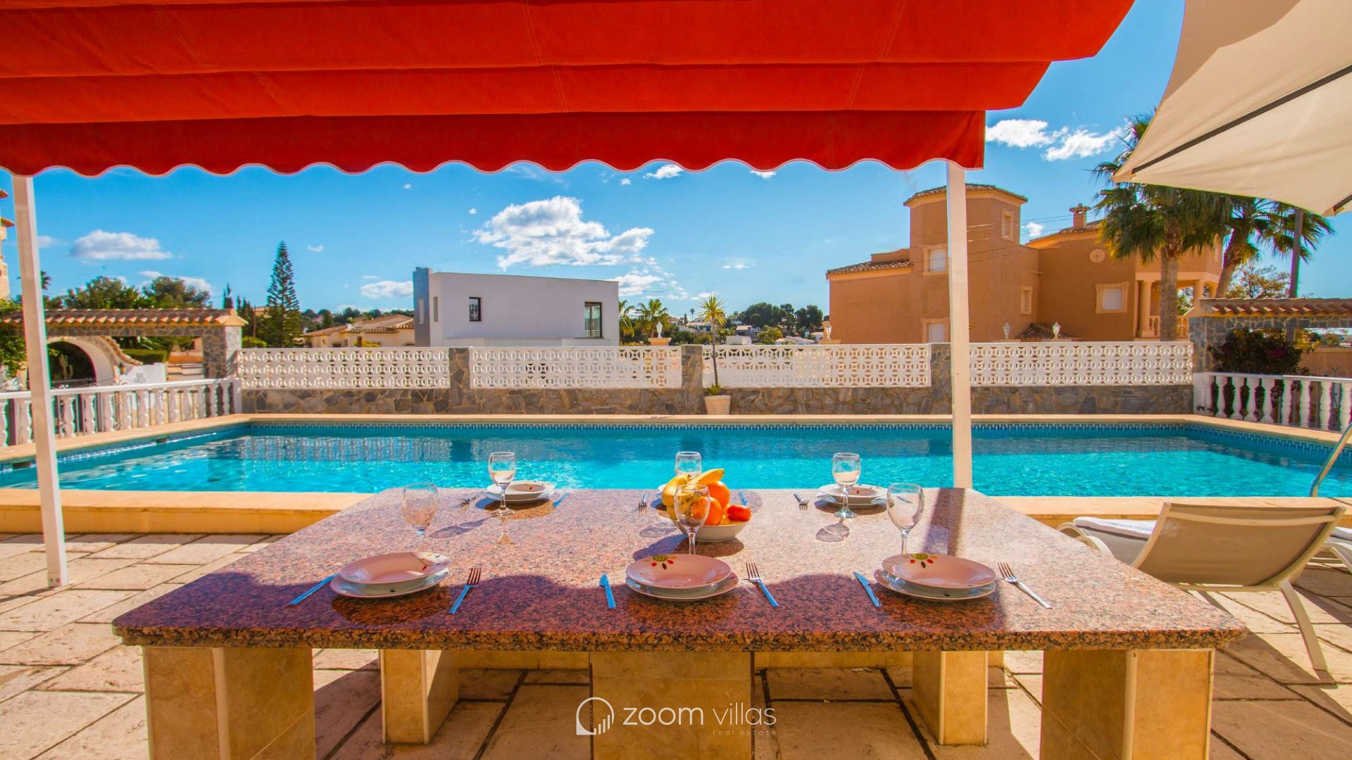 Villa con piscina privada en Calpe (Costa Blanca). La villa se encuentra ubicada en la urbanización residencial Costeres, zona privilegiada por su cercanía a la playa. Esta amplia villa, está formada por cuatro apartamentos independientes. Cada apartamento posee 120 m2 distribuidos en salón-comedor, cocina y tres dormitorios (en total doce dormitorios). INTERIOR: Planta baja: La planta baja está compuesta por dos apartamentos con entrada independiente en cada uno de ellos. Apartamento 1: (acceso por escalones desde zona de parking) Salón-comedor con mobiliario confortable, TV TDT/Sat, aire acondicionado y salida a terraza cubierta. Cocina independiente totalmente equipada. Tres dormitorios con aire acondicionado, uno de ellos con una cama de matrimonio y los otros dos con dos camas individuales. un baño con bañera, lavabo y wc. un aseo con lavabo y wc. Apartamento 2: Salón-comedor con mobiliario confortable, TV TDT/Sat, aire acondicionado y salida a terraza cubierta. Cocina independiente totalmente equipada. Tres dormitorios con aire acondicionado, los tres con dos camas individuales. Un baño con bañera, lavabo y wc. Y un aseo con lavabo y wc. Apartamento 3: (acceso por escalones desde zona de parking) Salón-comedor con mobiliario confortable, TV TDT/Sat, aire acondicionado y salida a terraza cubierta. Cocina independiente totalmente equipada. Tres dormitorios con aire acondicionado, uno de ellos con una cama de matrimonio y los otros dos con dos camas individuales. un baño con bañera, lavabo y wc. un aseo con lavabo y wc. Primera Planta: (Acceso por escaleras exteriores) La planta alta está compuesta por dos apartamentos con entrada independiente en cada uno de ellos. Apartamento 4: Salón-comedor con mobiliario confortable, TV TDT/Sat, aire acondicionado y salida a terraza cubierta. Cocina independiente totalmente equipada. Tres dormitorios con aire acondicionado, los tres con dos camas individuales. Un baño con bañera, lavabo y wc. Y un baño con ducha, lavabo y wc. EXTERIOR: La villa posee una parcela cerrada de 1450 m2, en la que se encuentra una extensa piscina con una zona de terraza llana. Ducha exterior. La villa dispone de una barbacoa de obra para realizar comidas. Parking dentro de la misma parcela para cinco-seis vehículos. UBICACIÓN: Ubicada a 1,8 km aproximadamente de la playa, paseo marítimo y todos los servicios. Calpe pueblo se encuentra a 3,5 km aproximadamente.