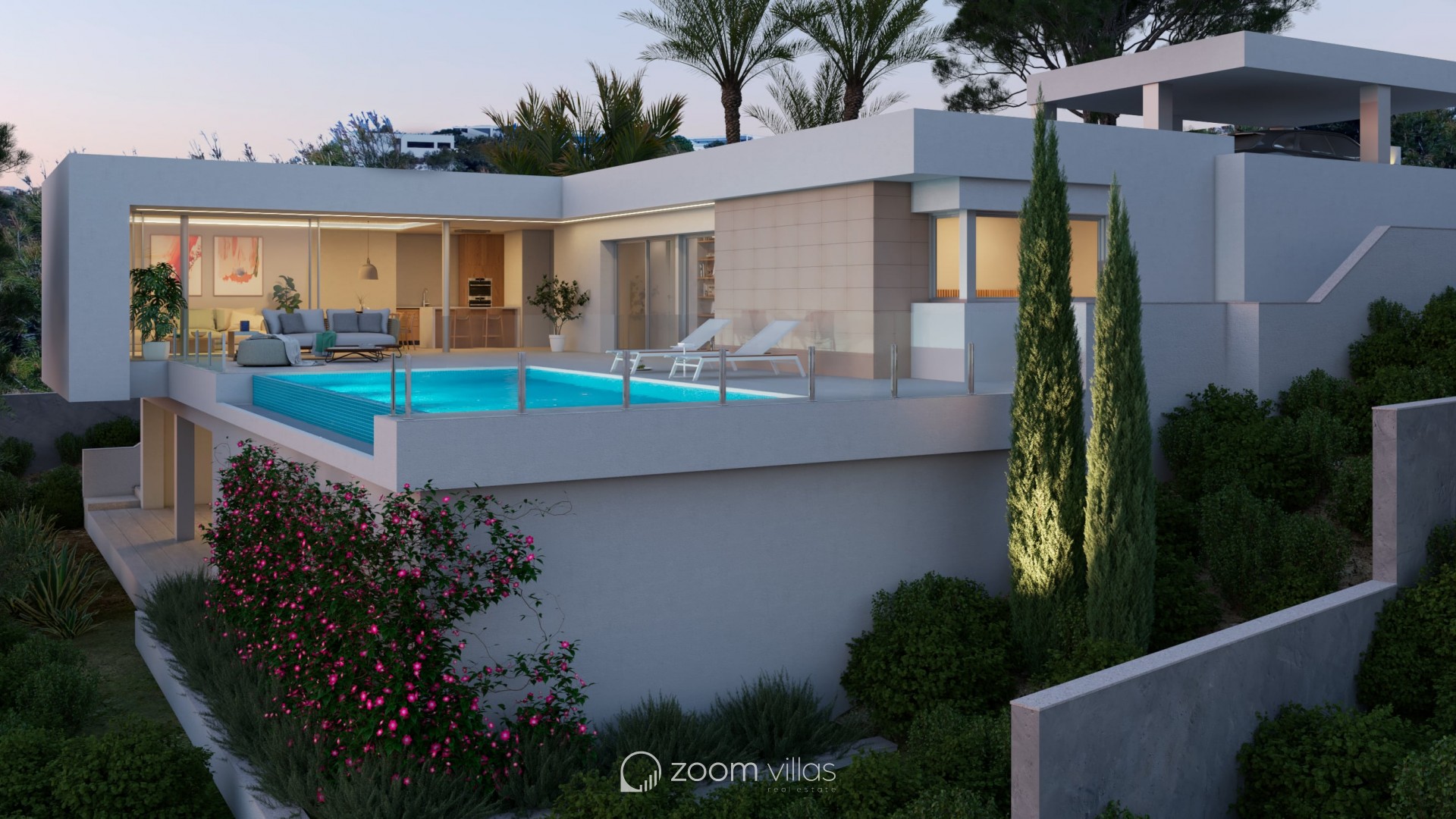 Residencial Magnolias en Cumbre del Sol, se levanta Villa Nara, una residencia en construcción diseñada para fundir interior y exterior en una experiencia de vida abierta y luminosa. Su ubicación en la Costa Blanca y su arquitectura contemporánea la convierten en un refugio perfecto para disfrutar de la tranquilidad y la belleza del entorno. La vivienda se desarrolla principalmente en una sola planta, lo que garantiza accesibilidad y comodidad. Este diseño, pensado para quienes prefieren evitar escaleras, organiza la vida diaria con fluidez y funcionalidad. Dispone de tres dormitorios dobles, incluyendo una suite principal con baño privado y acceso directo a la terraza. La zona de día destaca por su amplitud y distribución abierta: salón, comedor y cocina conviven en un único espacio conectado con el exterior mediante grandes ventanales. Villa Nara incorpora soluciones de eficiencia energética como aerotermia, ventilación con recuperación de calor, suelo radiante y preinstalación de punto de recarga de coche eléctrico, placas solares, alarma, interfono, electrodomésticos. La calidad de los materiales y el cuidado en cada detalle aseguran una vivienda preparada para el confort y el ahorro energético. La gran terraza exterior, con piscina privada, prolonga el interior hacia el cielo mediterráneo. Villa Nara no solo es una casa pensada para vivir, sino para disfrutar cada día del clima, la luz y el entorno que definen el estilo de vida en Cumbre del Sol.