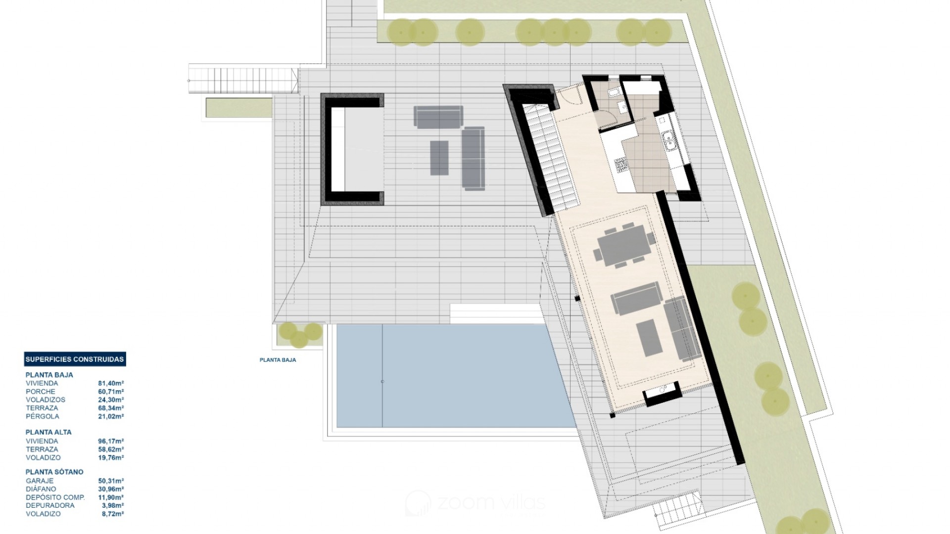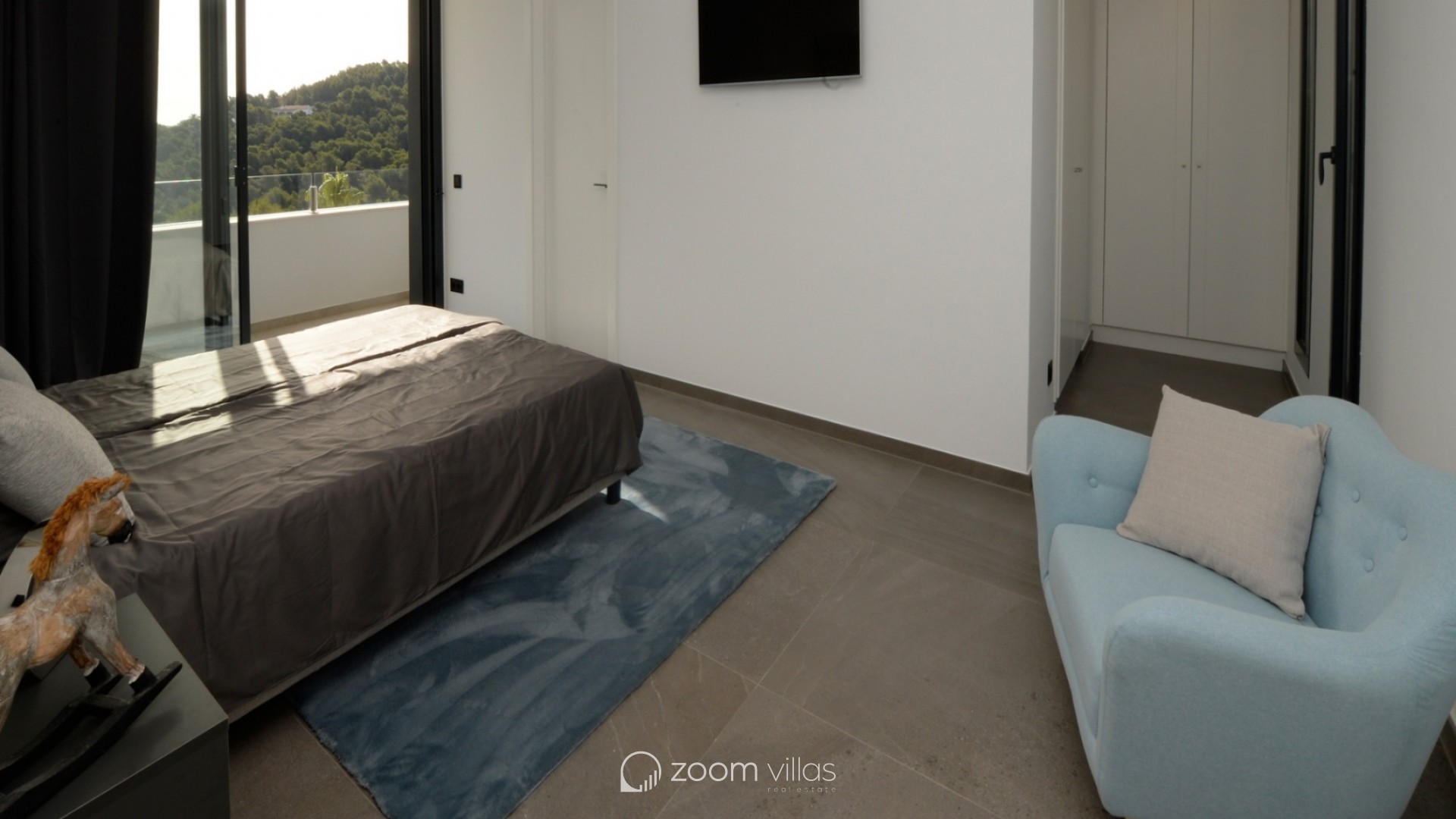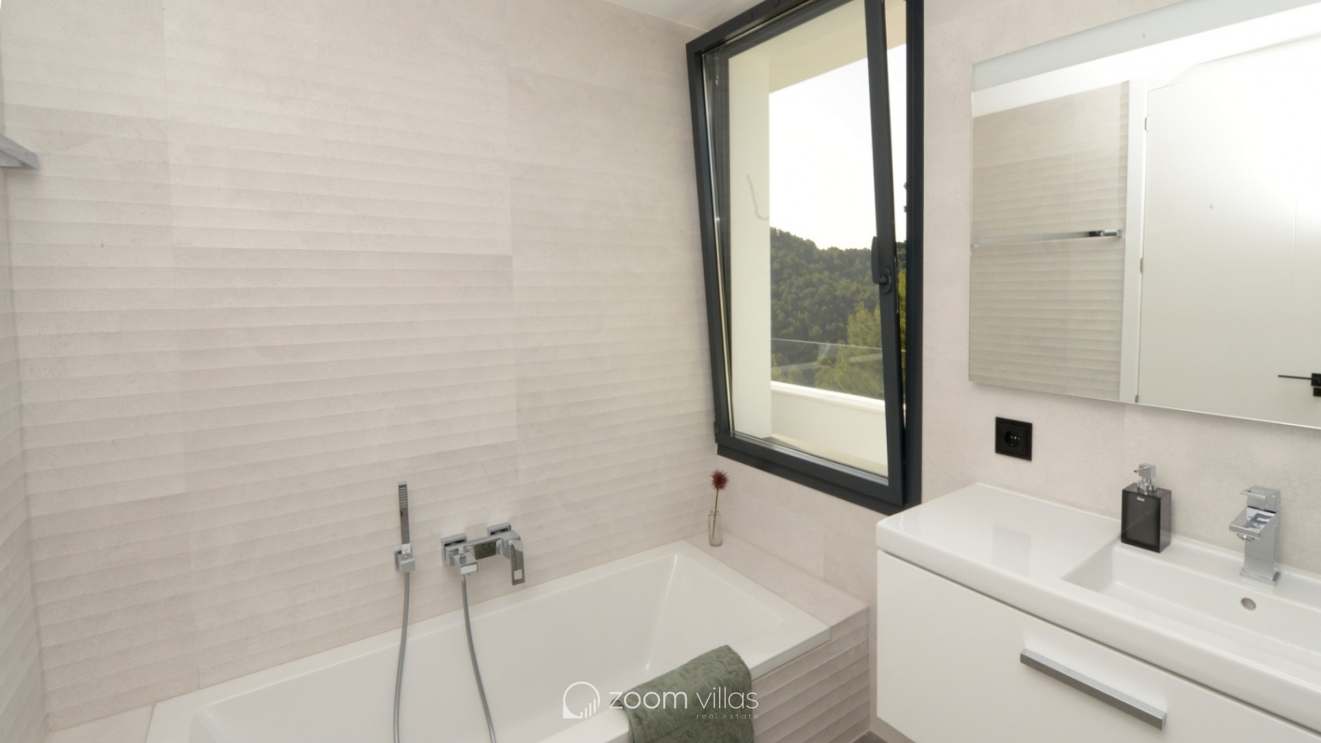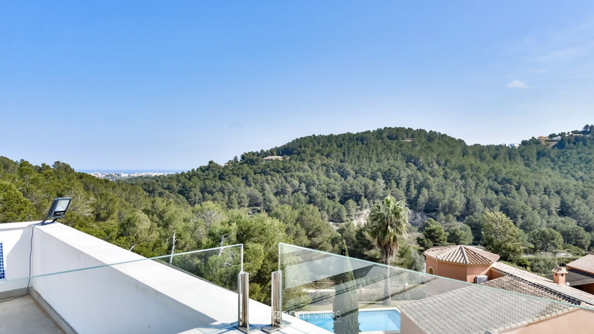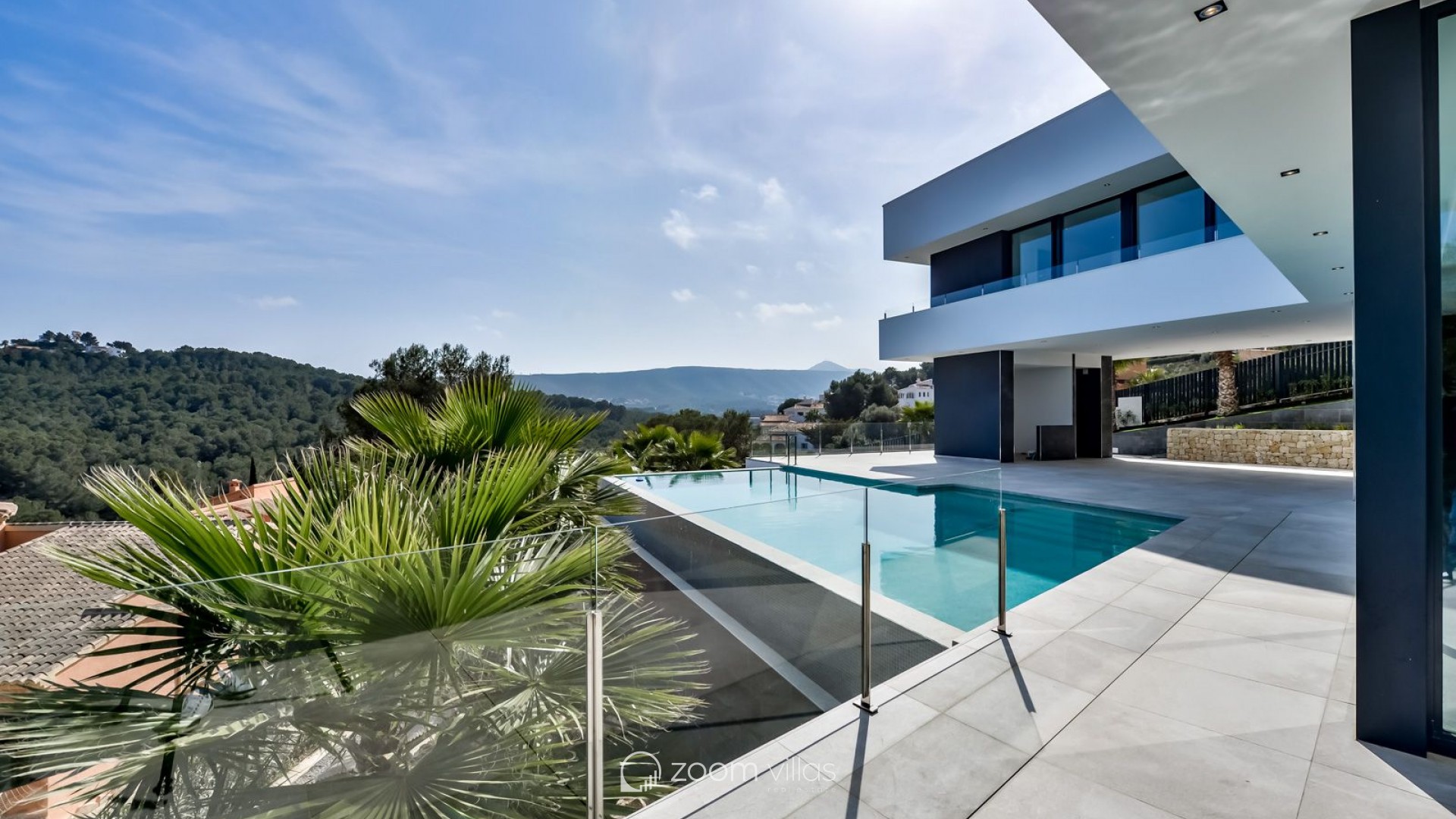 Esta impresionante villa moderna se encuentra en una ubicación privilegiada en Jávea, diseñada para integrarse perfectamente en el paisaje mediterráneo con una arquitectura de vanguardia que destaca por sus formas puras y líneas rectas. La propiedad ofrece una panorámica espectacular sobre las colinas verdes hasta alcanzar el azul del mar, permitiendo incluso contemplar la isla de Ibiza en los días más despejados. Su diseño logra una combinación emocionante de elementos clásicos con materiales de última generación, creando un ambiente de lujo y exclusividad. La planta principal se distribuye en un amplio y luminoso salón-comedor conectado con una cocina de alta gama totalmente amueblada y equipada con vitrocerámica, horno, microondas y lavavajillas. Esta zona se completa con un práctico lavadero contiguo y un aseo de cortesía. El espacio interior fluye de manera natural hacia una extensa terraza cubierta con zona de barbacoa, ideal para disfrutar de la sombra y las vistas marinas durante los meses de verano. El área exterior se corona con una espectacular piscina de efecto desbordante equipada con luces subacuáticas y una amplia zona de entrada. En la planta superior se sitúa la zona de descanso, que alberga tres dormitorios y dos baños completos. El dormitorio principal dispone de baño en suite, y todas las habitaciones cuentan con acceso directo a la terraza de la azotea para maximizar la entrada de luz natural. El nivel inferior de la vivienda ofrece un garaje doble con puerta automática y un espacioso sótano multiusos. En cuanto a las instalaciones técnicas, la villa cuenta con un sistema de aire acondicionado centralizado y calefacción mediante bomba de calor con apoyo de energía solar, garantizando el máximo confort y eficiencia energética en todas las estancias del edificio.