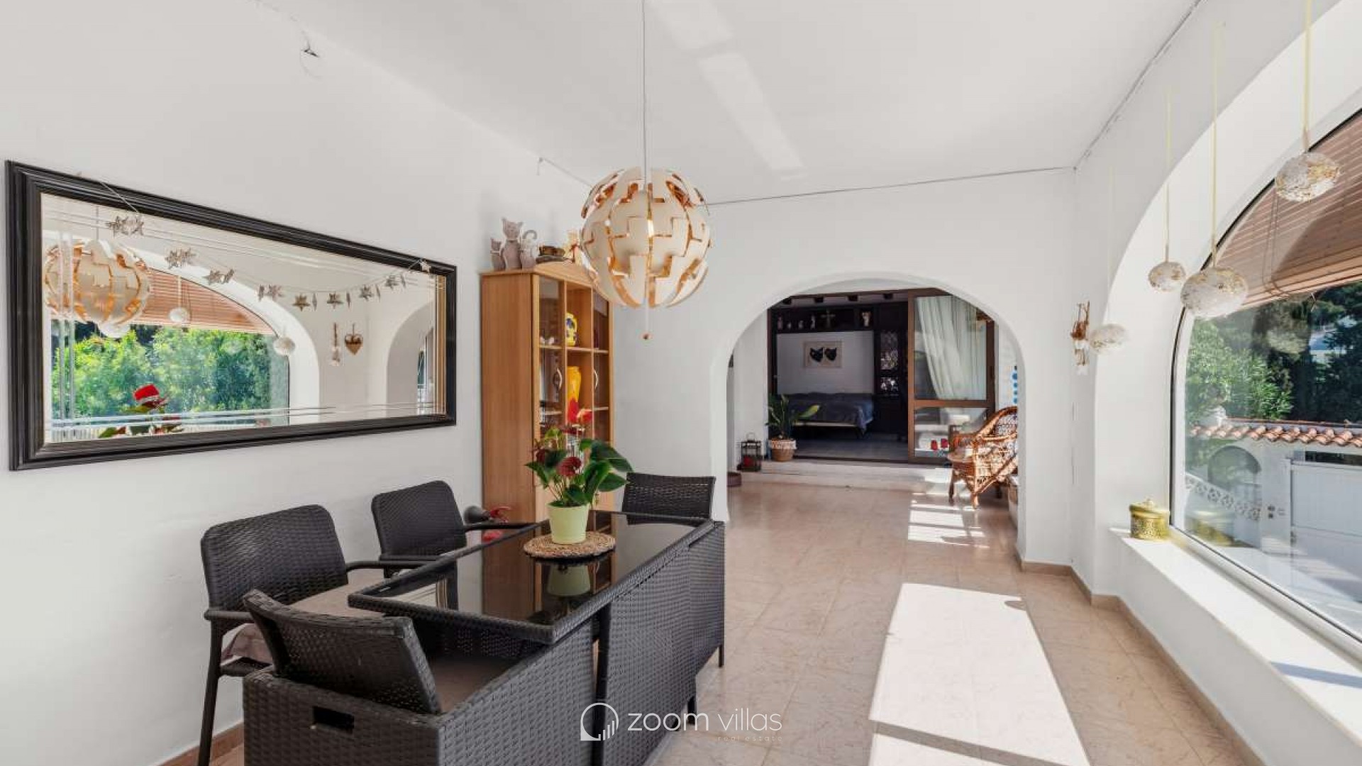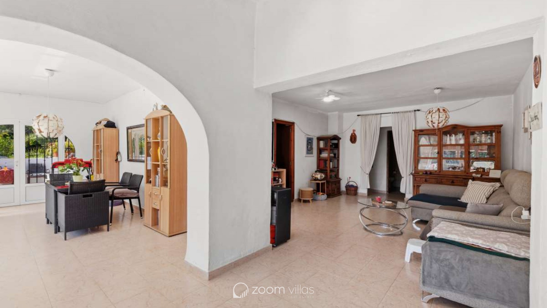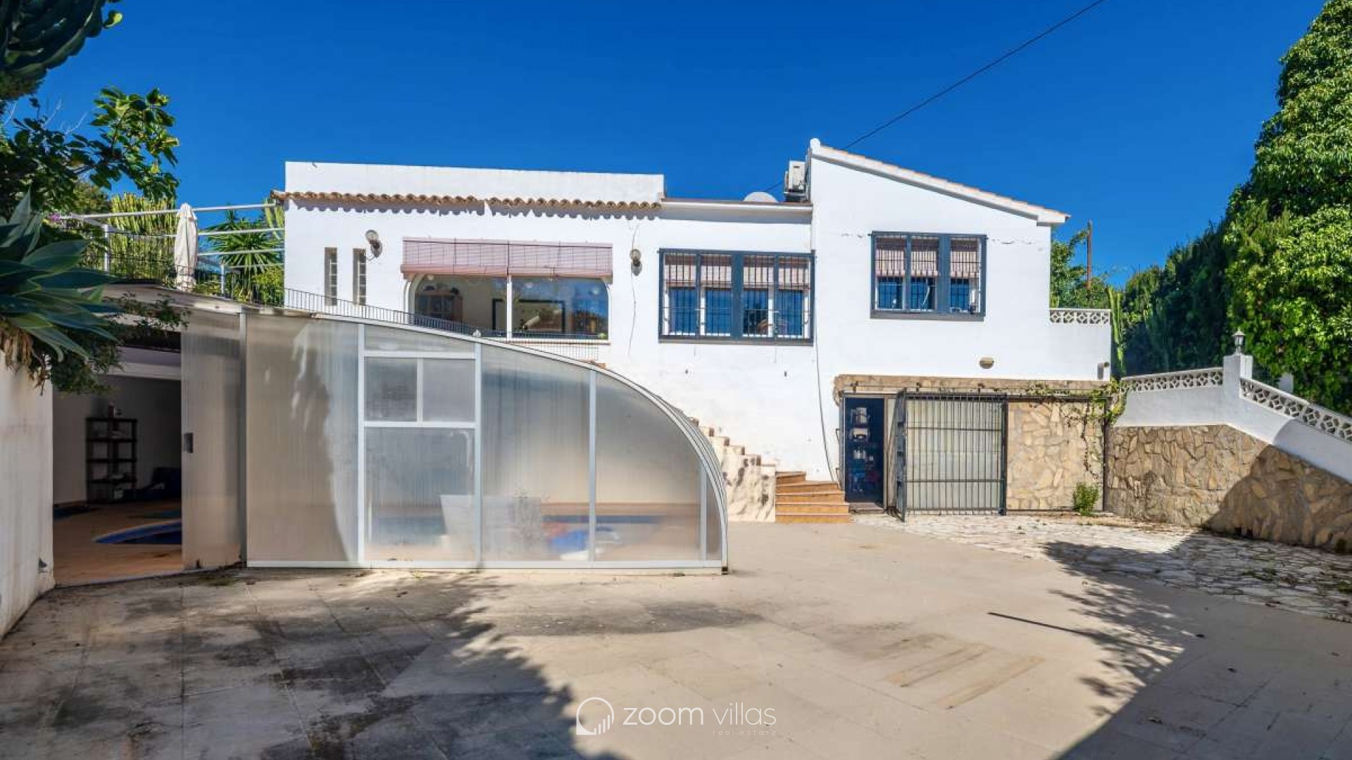 Ubicada en una zona tranquila y muy solicitada de Benissa, esta encantadora villa ofrece una combinación perfecta de privacidad, comodidad y conveniencia. La propiedad es ideal como casa de vacaciones o como inversión, con bares, restaurantes y la playa a poca distancia a pie. Construida en 1978, la villa se asienta sobre una parcela de 821 m² y cuenta con 166 m² de espacio habitable en una sola planta. La casa incluye un garaje privado, una plaza de aparcamiento adicional, un jardín bien cuidado, una piscina privada y un solárium con impresionantes vistas al mar, perfecto para disfrutar del estilo de vida mediterráneo. Al entrar, le da la bienvenida un amplio salón que constituye el corazón de la casa. El dormitorio principal incluye un vestidor y un baño en suite para máxima comodidad y privacidad. Tres dormitorios adicionales y un baño compartido son accesibles desde el salón. La propiedad también ofrece una cocina independiente y un comedor con acceso directo a una terraza con vistas al jardín, ideal para comer al aire libre y recibir invitados. Esta villa combina espacios prácticos con encantadores detalles mediterráneos, lo que la convierte en una propiedad versátil tanto para residencia permanente como para disfrutar de las vacaciones.