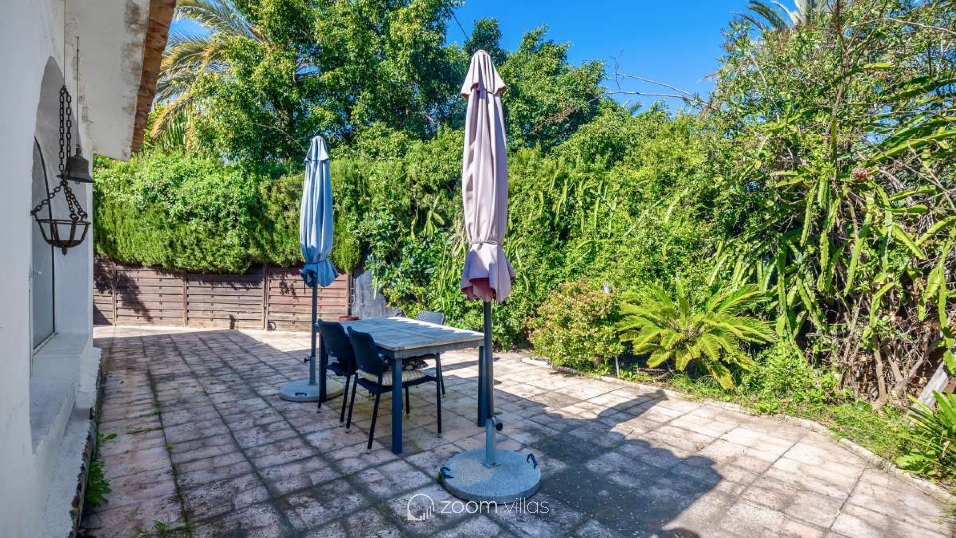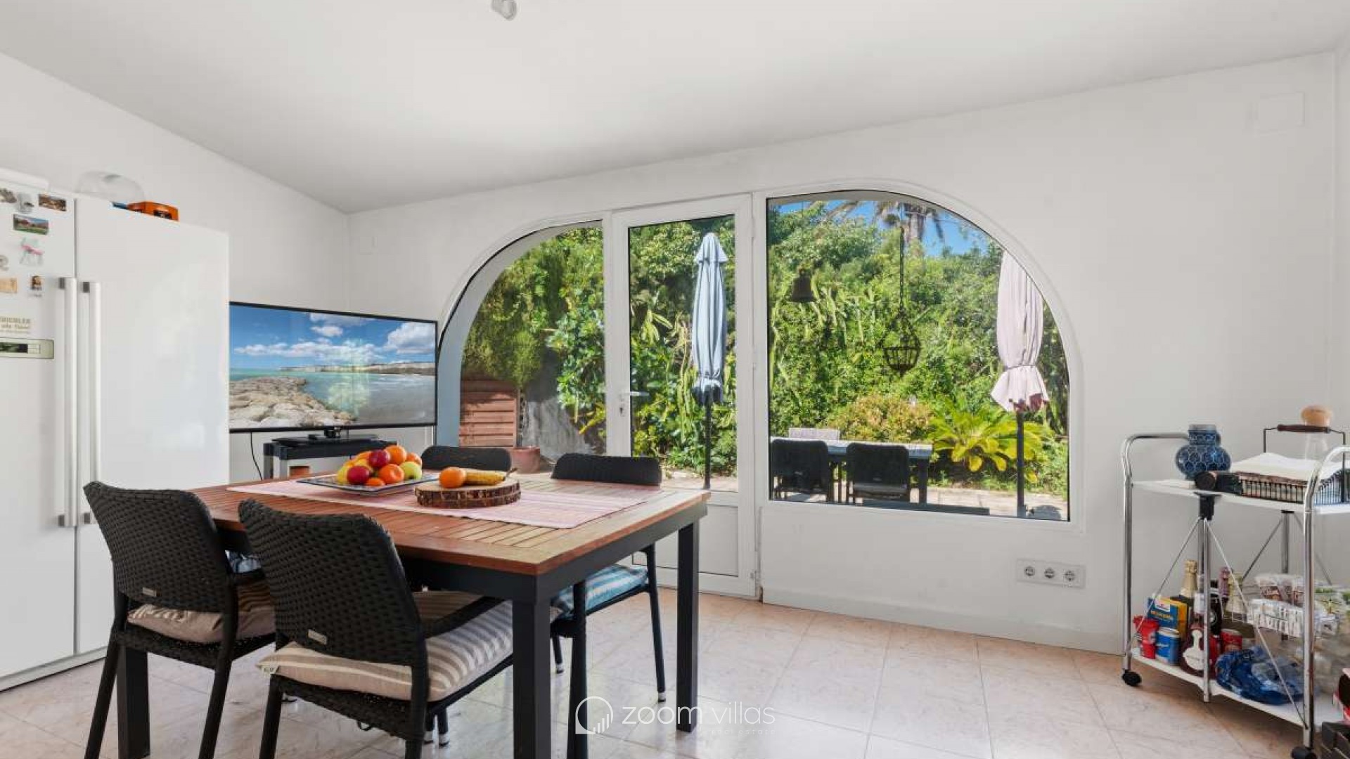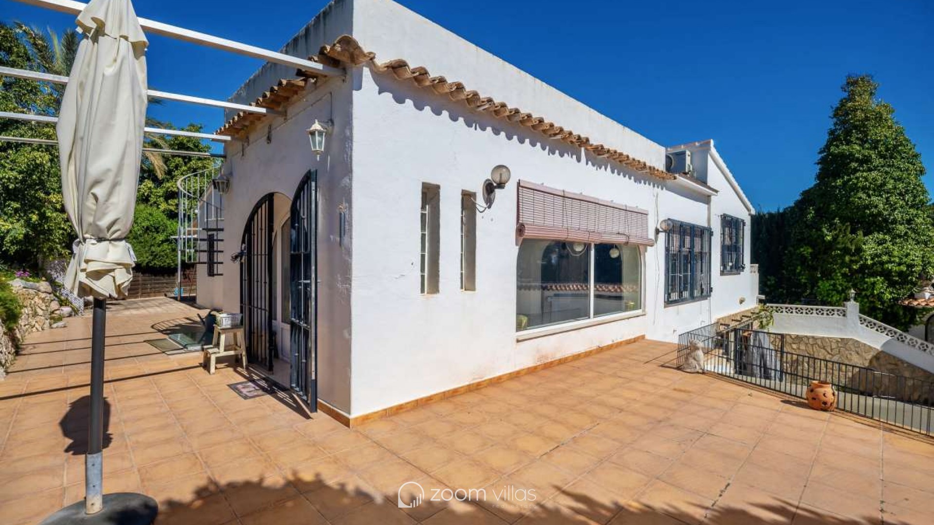 Ubicada en una zona tranquila y muy solicitada de Benissa, esta encantadora villa ofrece una combinación perfecta de privacidad, comodidad y conveniencia. La propiedad es ideal como casa de vacaciones o como inversión, con bares, restaurantes y la playa a poca distancia a pie. Construida en 1978, la villa se asienta sobre una parcela de 821 m² y cuenta con 166 m² de espacio habitable en una sola planta. La casa incluye un garaje privado, una plaza de aparcamiento adicional, un jardín bien cuidado, una piscina privada y un solárium con impresionantes vistas al mar, perfecto para disfrutar del estilo de vida mediterráneo. Al entrar, le da la bienvenida un amplio salón que constituye el corazón de la casa. El dormitorio principal incluye un vestidor y un baño en suite para máxima comodidad y privacidad. Tres dormitorios adicionales y un baño compartido son accesibles desde el salón. La propiedad también ofrece una cocina independiente y un comedor con acceso directo a una terraza con vistas al jardín, ideal para comer al aire libre y recibir invitados. Esta villa combina espacios prácticos con encantadores detalles mediterráneos, lo que la convierte en una propiedad versátil tanto para residencia permanente como para disfrutar de las vacaciones.