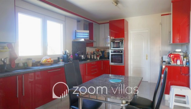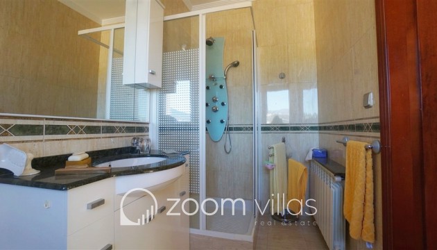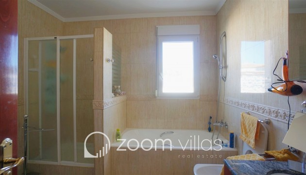 L'étage supérieur se compose de 3 chambres à coucher avec 4 salles de bain en suite et des toilettes, d'une cuisine séparée et d'un grand salon qui donne directement sur la terrasse. De la terrasse, vous pouvez admirer le Penon de Ifach qui se détache sur l'horizon tout en surplombant le quartier voisin de votre point de vue idéal.