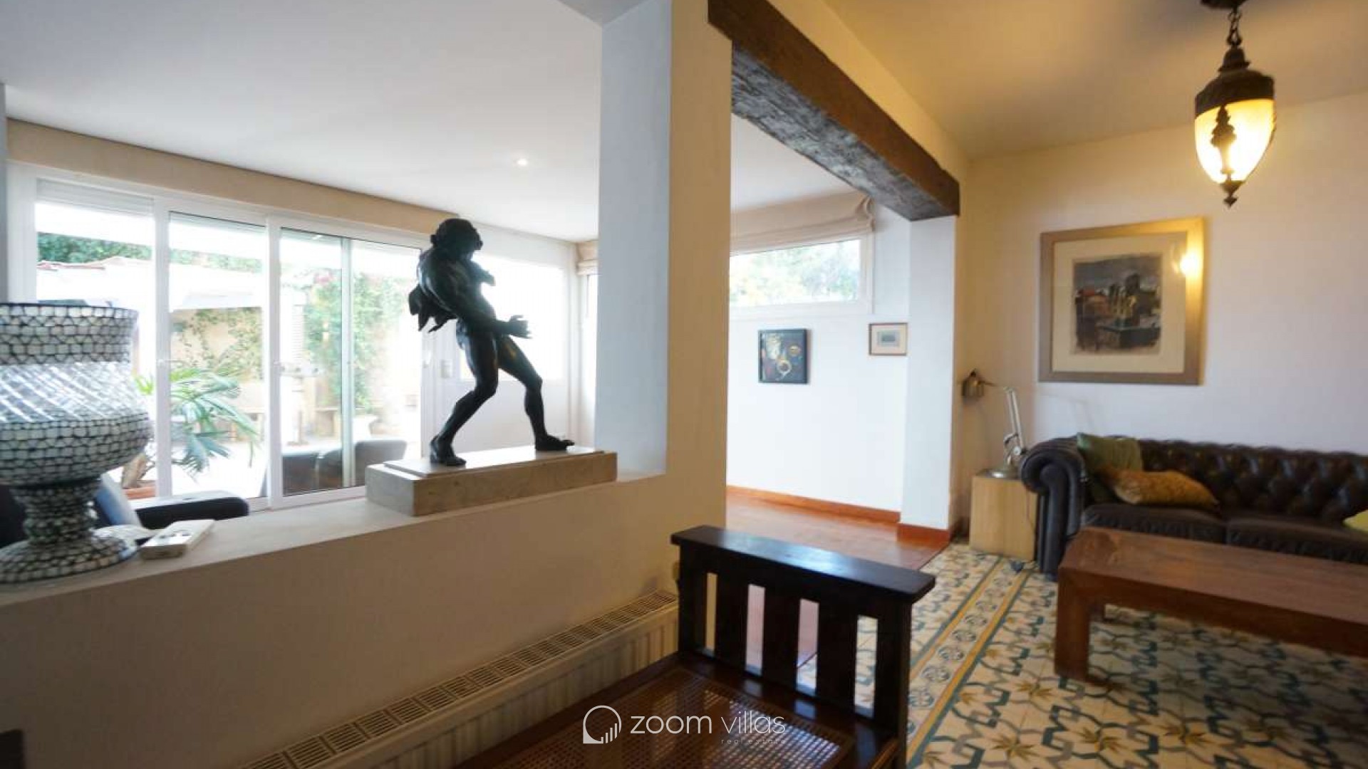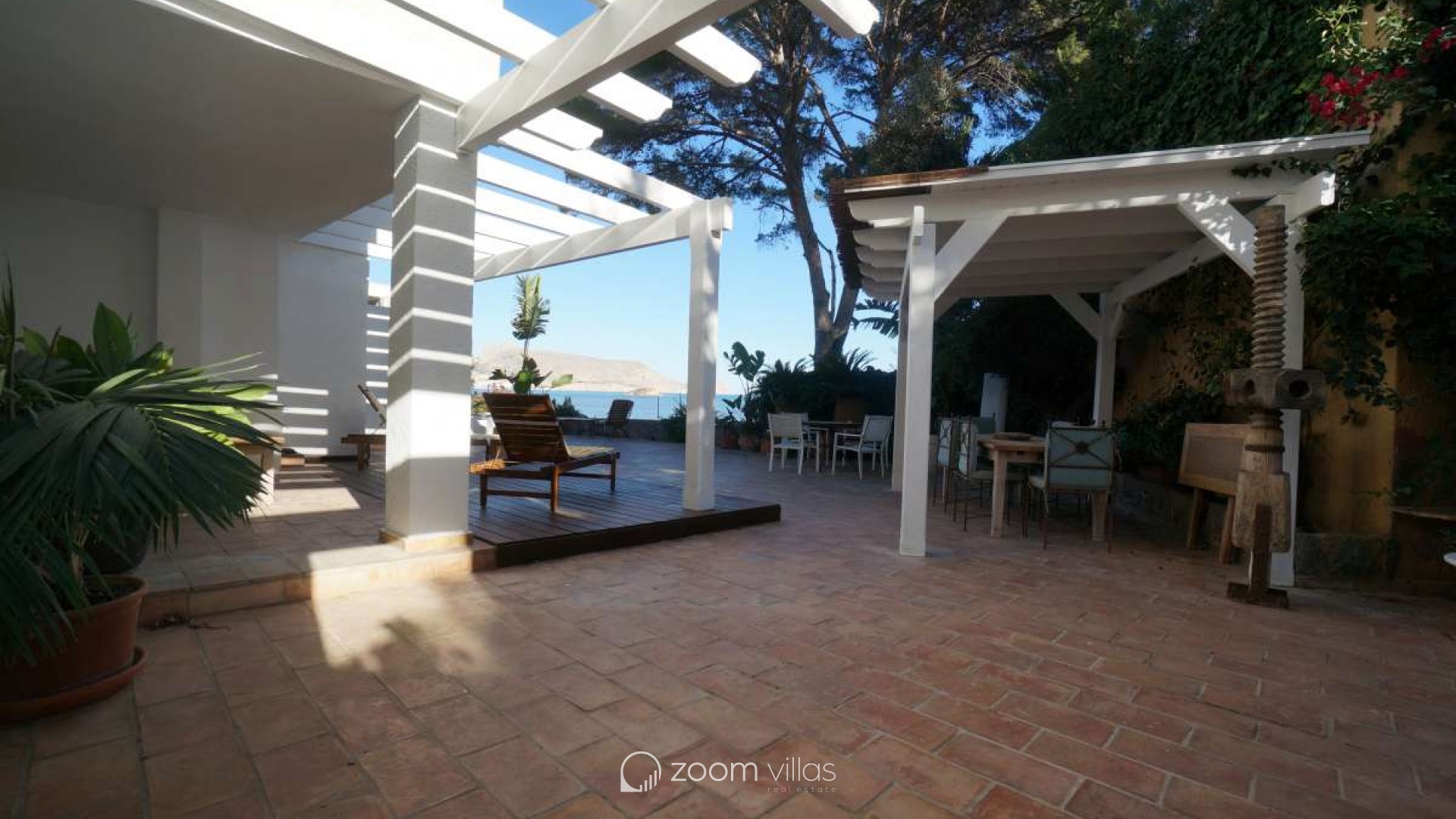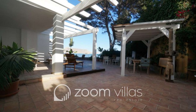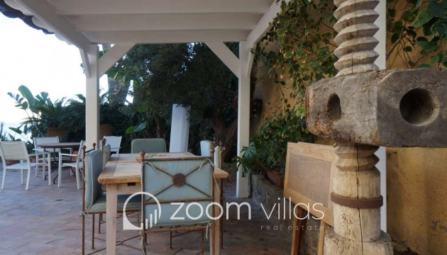 Cette magnifique propriété dispose d'un total de 5 chambres et QUATRE salles de bains et deux toilettes. ainsi que deux cuisines (une au rez-de-chaussée et une au premier étage). Au rez-de-chaussée se trouvent de grands salons, dont un avec cheminée et une salle à manger avec accès à deux beaux porches à côté de la magnifique et exclusive terrasse. Aux deuxième et troisième étages se trouvent les chambres, salles de bains, deuxième cuisine, buanderie, grands salons avec deux belles terrasses avec des vues spectaculaires sur la mer.
