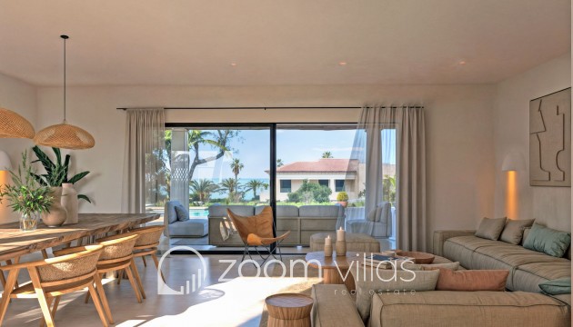 DENIA - Villa à vendre à Denia - construction neuve. Dans un emplacement imbattable, à quelques mètres de la mer, dans le prestigieux quartier de Rotas à Dénia, vous trouverez cette élégante villa neuve qui allie à la perfection design contemporain, confort et style de vie méditerranéen. Située sur un grand terrain de 803 mètres carrés, cette propriété de plain-pied, d'une superficie construite de 245 mètres carrés, a été conçue pour offrir des espaces spacieux, lumineux et fonctionnels.
