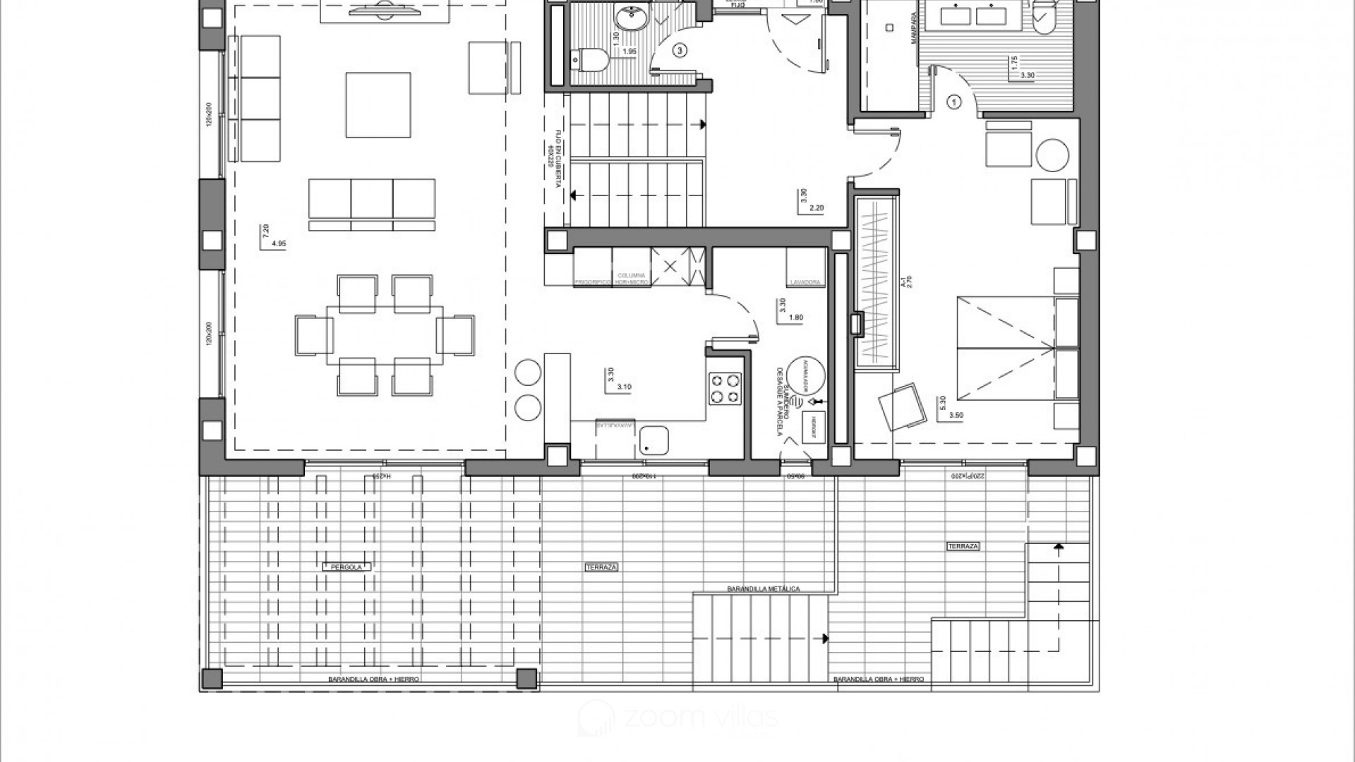 Au rez-de-chaussée inférieur, vous trouverez deux autres chambres avec placards intégrés, dont l'une peut être agrandie pour créer une troisième chambre à cet étage, une grande salle de séjour et une deuxième salle de bains. Cet espace flexible est parfait pour accueillir des invités, travailler à domicile ou compléter la vie de famille.Le point fort de la propriété est le solarium de 65 m² avec piscine privée et naya couverte, un lieu parfait pour profiter du soleil. Depuis cet espace, vous profitez d’une vue dégagée sur les environs et d’une magnifique vue sur la mer qui renforce l’attrait de la villa.