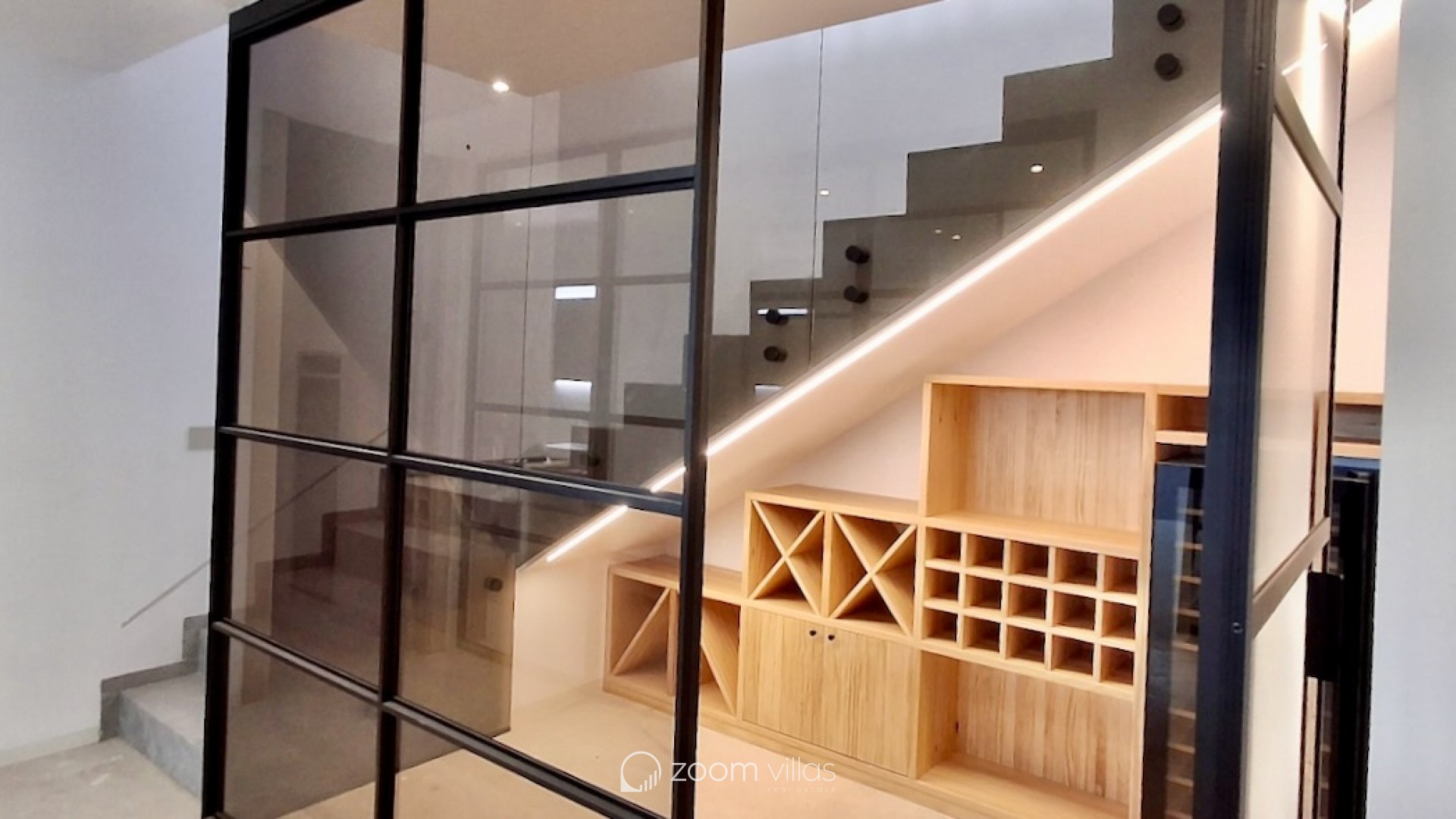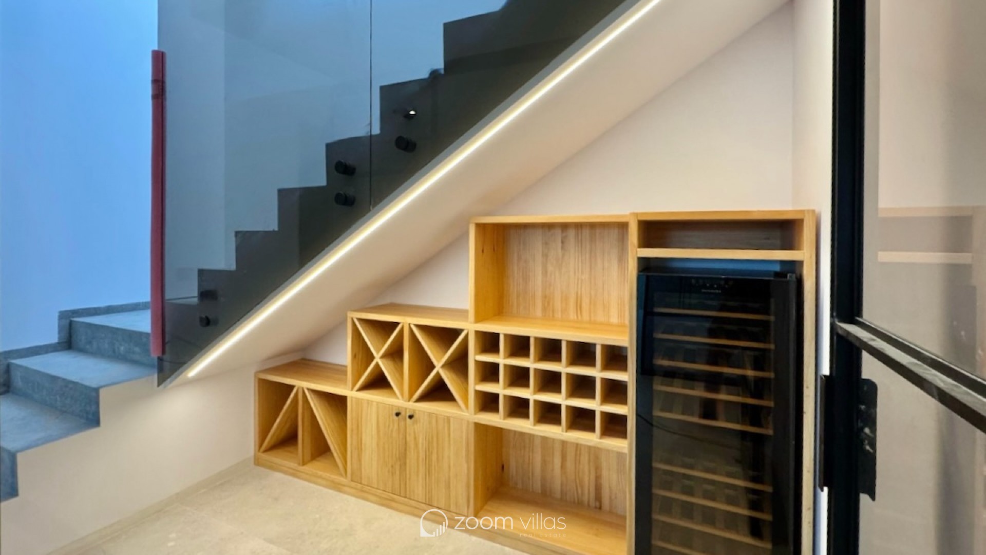 Des escaliers mènent au premier étage où se trouvent les deux autres chambres, chacune avec sa propre salle de bains et son balcon.