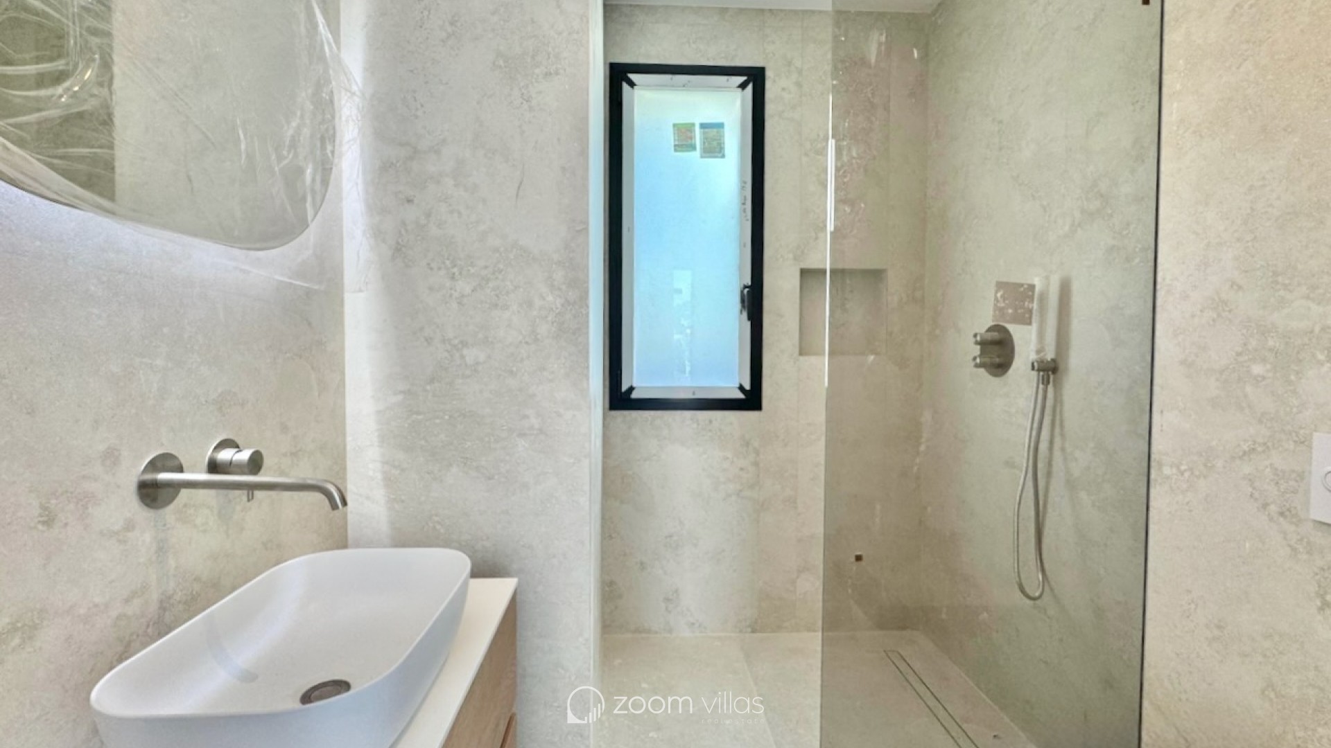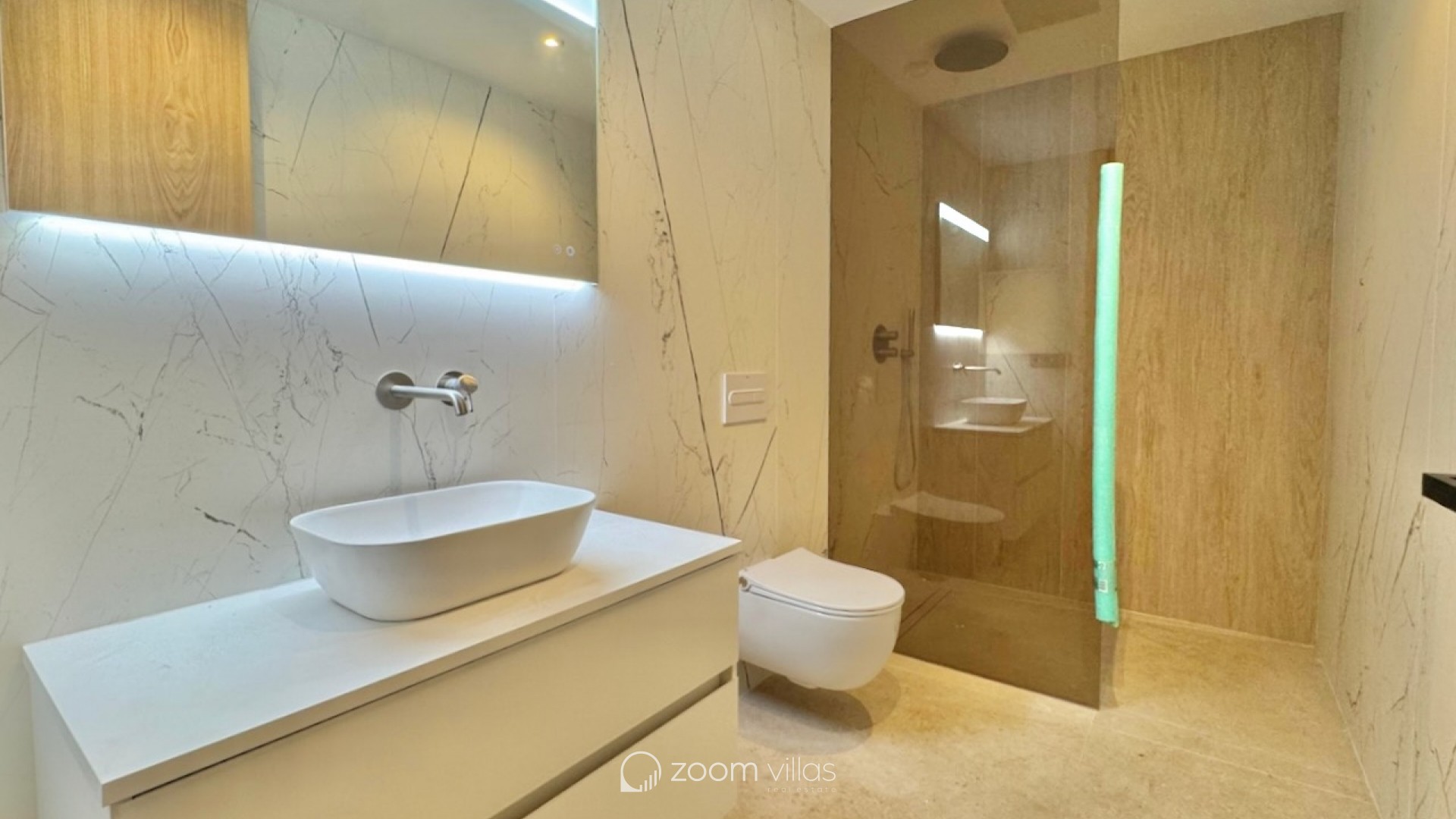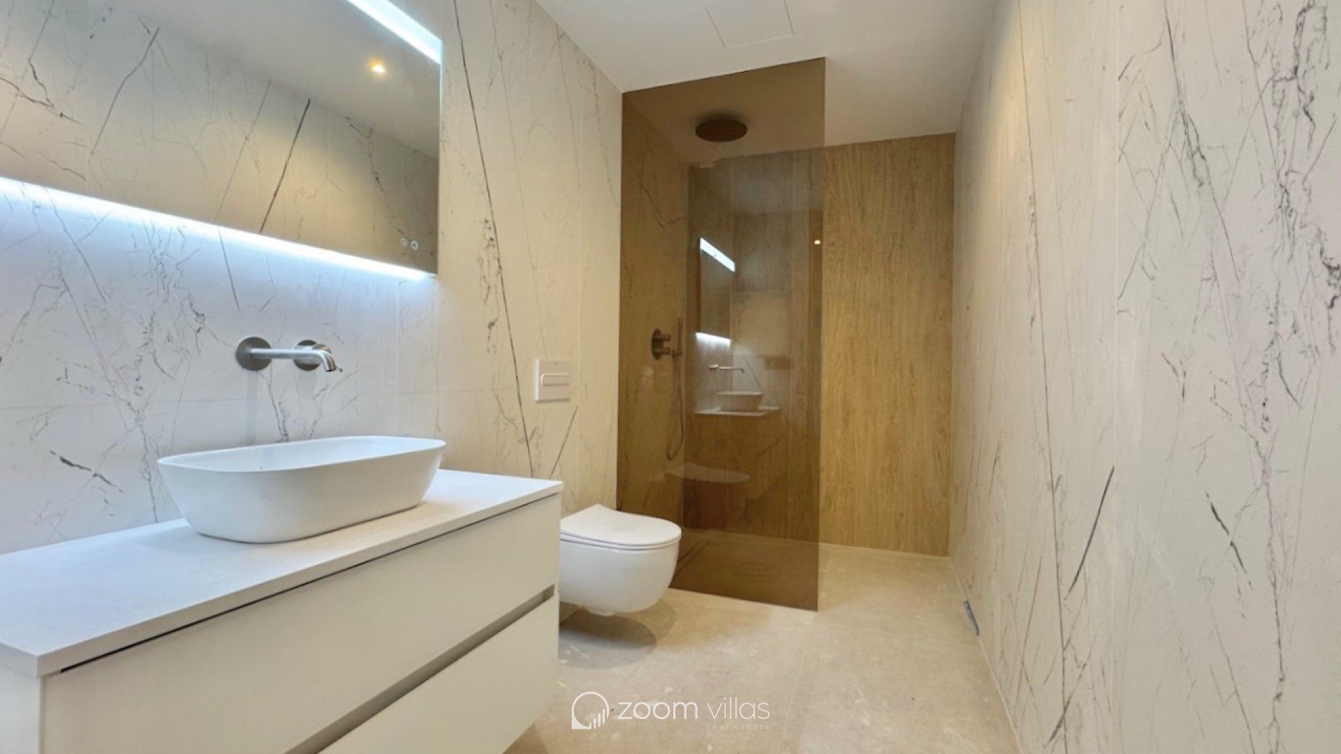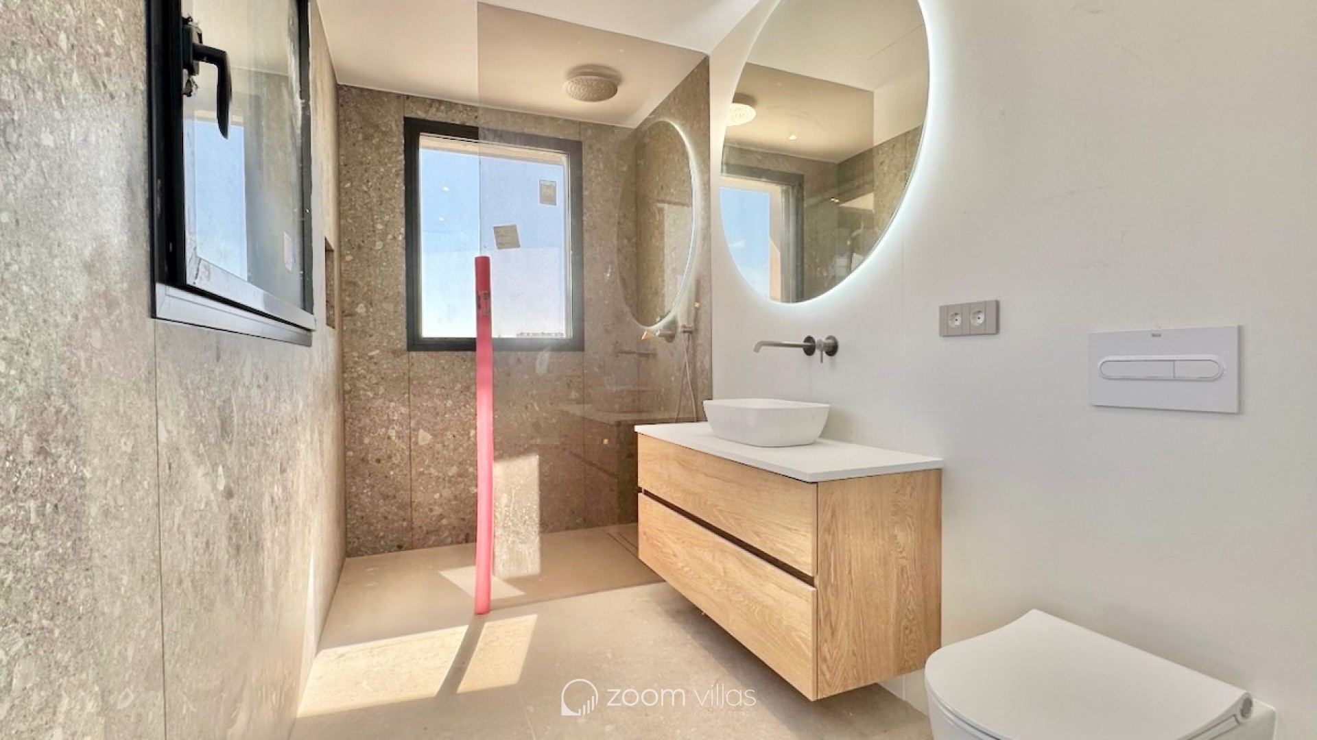 La villa sera entièrement équipée d'un chauffage par le sol et d'une climatisation centralisée, il y aura également des panneaux solaires et la propriété aura une étiquette énergétique A. Il y aura également une alarme avec pré-installation pour les caméras. Toutes les chambres seront équipées de placards et de volets électriques.