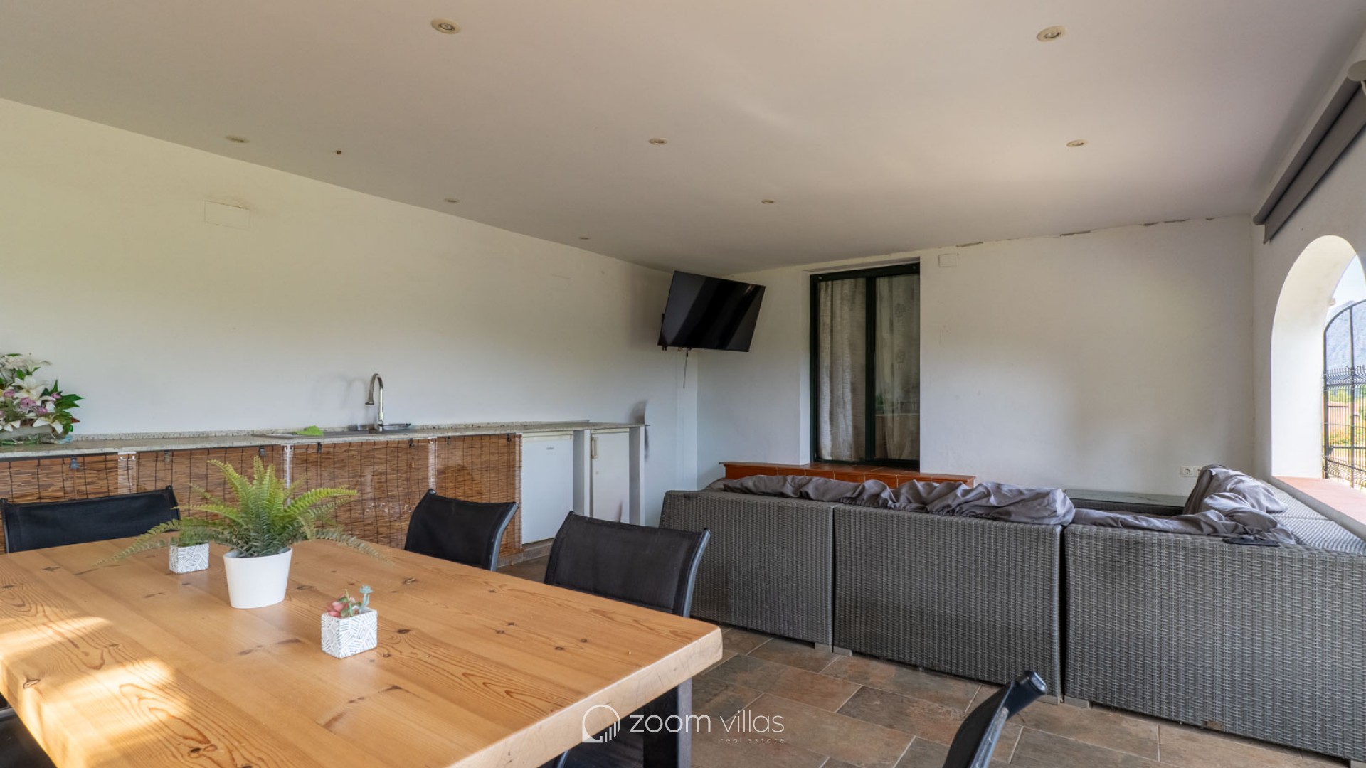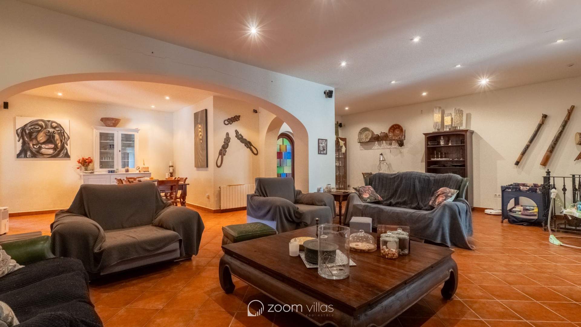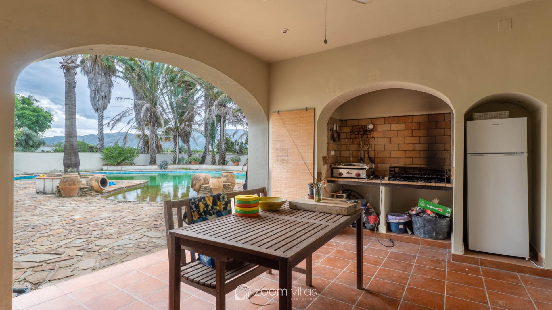 Villa de 5 chambres avec un terrain de 10 000 m² à vendre à Ondara. Cette propriété allie le charme méditerranéen au confort moderne et bénéficie d'un emplacement stratégique, offrant une opportunité unique pour y vivre ou investir dans la location saisonnière. Dès l'entrée, le paysage se déploie comme un petit paradis privé. Des allées serpentent à travers des jardins luxuriants, un bassin japonais où les poissons évoluent à l'ombre, et de petites volières abritent oiseaux et autres animaux. L'irrigation est assurée par un puits privé et un système d'irrigation, garantissant durabilité et faibles coûts. Le domaine comprend une maison principale, une maison d'amis indépendante et plusieurs parkings couverts, conçus pour profiter pleinement de l'espace et de la nature. La maison principale, répartie sur trois niveaux, allie espace et convivialité. Au rez-de-chaussée, un vaste séjour, un bureau, un dressing, des toilettes et une cuisine avec cellier offrent des espaces parfaits pour se détendre et recevoir. À l'étage, quatre chambres avec salles de bains et dressings s'ouvrent sur une terrasse spectaculaire qui fait le tour de la maison, offrant une vue imprenable sur la vallée, la piscine et les jardins. Au rez-de-chaussée, le sous-sol abrite un garage couvert, un grand cellier et une cave à vin reliée au salon principal par un escalier en colimaçon, un espace idéal pour les amateurs de vin et ceux qui recherchent une expérience plus intime. La maison d'hôtes est un refuge chaleureux avec sa propre entrée et son patio couvert. Elle comprend une chambre, une salle de bains avec douche, un salon et une cuisine entièrement équipée : l'endroit idéal pour recevoir des amis, de la famille ou même des locataires indépendants qui participeraient aux frais d'entretien en échange du logement. La maison bénéficie du double vitrage, de stores dans les chambres, de la climatisation, de radiateurs à gaz, du chauffage au sol et d'un accès internet. Sur le patio extérieur plus intime, vous trouverez une grande piscine de plus de 3 mètres de profondeur, vous invitant à la détente et à l'intimité, entourée de jardins et de palmiers. Une salle de bains extérieure complète est également à votre disposition. Plus loin, une vaste installation de panneaux solaires ultramoderne, composée de 30 panneaux, garantit l'autonomie énergétique. Située à quelques minutes du centre commercial La Marina, à 10 km de Dénia et de ses plages, et à deux pas d'Ondara, cette propriété est idéale pour ceux qui recherchent le calme et la tranquillité sans renoncer à la proximité de toutes les commodités. L'autoroute, facilement accessible en quelques minutes, permet de rejoindre directement des villes voisines comme Valence et Alicante. Plus qu'une maison, c'est une expérience : un espace où nature, durabilité et confort coexistent en parfaite harmonie. Un havre de paix idyllique qui invite à ralentir le rythme, à profiter du grand air et à se laisser bercer par la sérénité méditerranéenne.