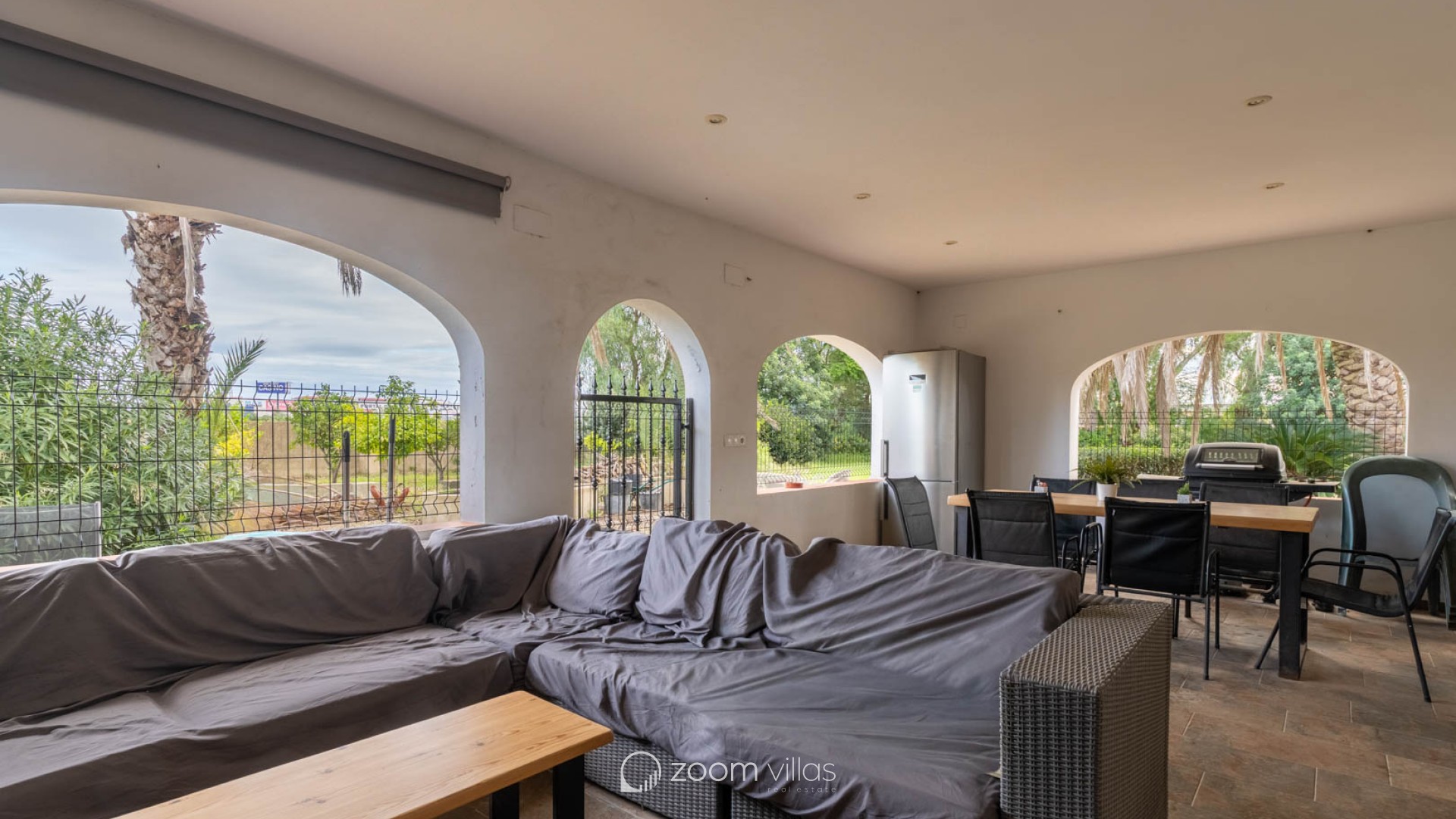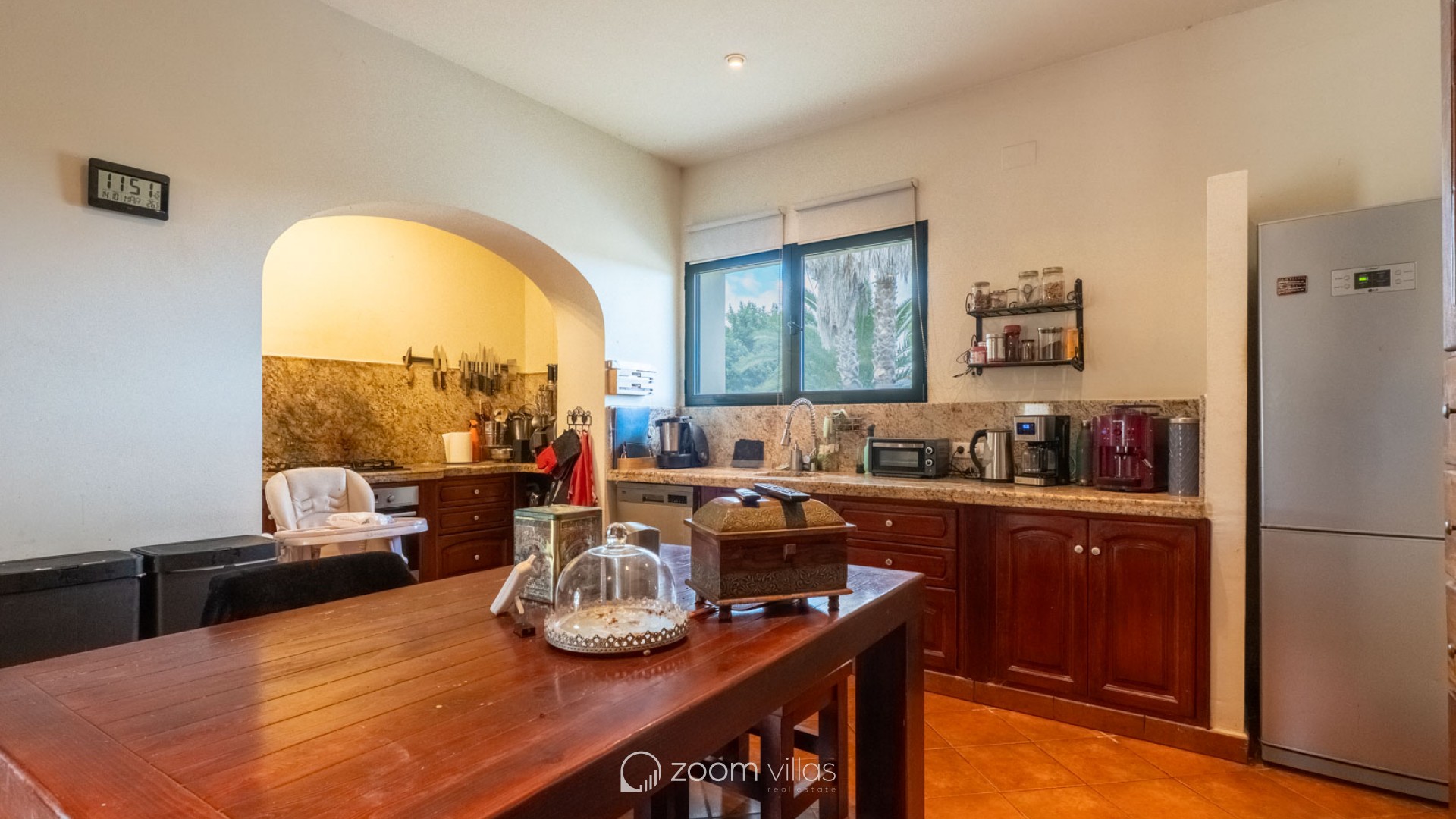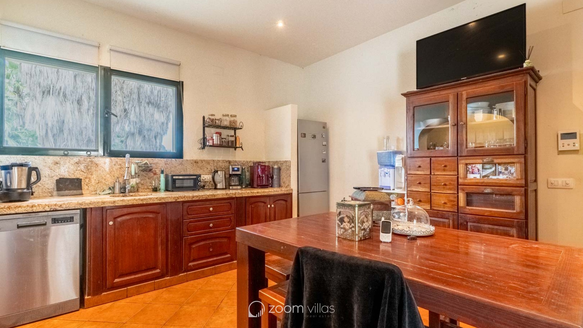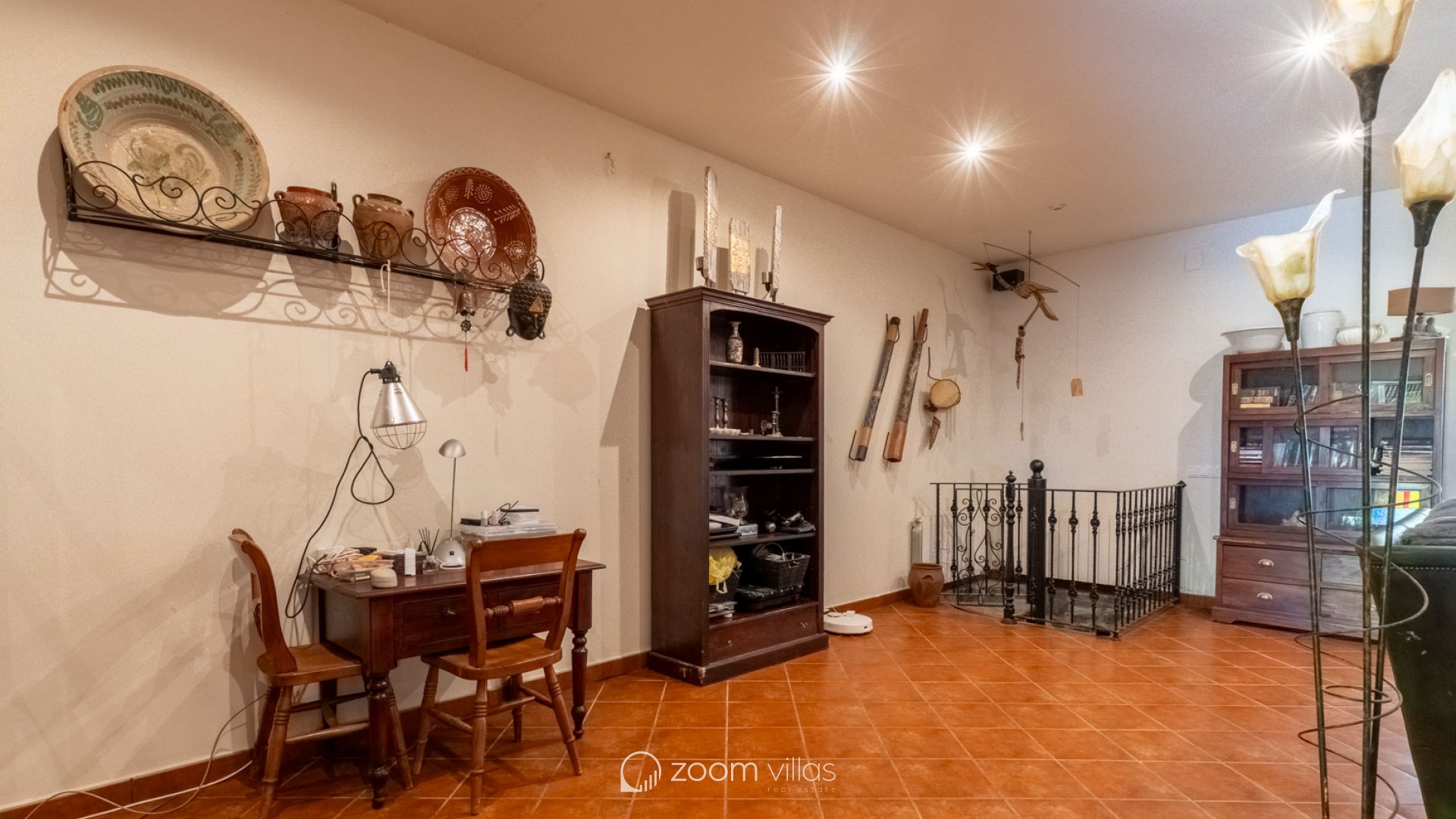 Villa de 5 chambres avec un terrain de 10 000 m² à vendre à Ondara. Cette propriété allie le charme méditerranéen au confort moderne et bénéficie d'un emplacement stratégique, offrant une opportunité unique pour y vivre ou investir dans la location saisonnière. Dès l'entrée, le paysage se déploie comme un petit paradis privé. Des allées serpentent à travers des jardins luxuriants, un bassin japonais où les poissons évoluent à l'ombre, et de petites volières abritent oiseaux et autres animaux. L'irrigation est assurée par un puits privé et un système d'irrigation, garantissant durabilité et faibles coûts. Le domaine comprend une maison principale, une maison d'amis indépendante et plusieurs parkings couverts, conçus pour profiter pleinement de l'espace et de la nature. La maison principale, répartie sur trois niveaux, allie espace et convivialité. Au rez-de-chaussée, un vaste séjour, un bureau, un dressing, des toilettes et une cuisine avec cellier offrent des espaces parfaits pour se détendre et recevoir. À l'étage, quatre chambres avec salles de bains et dressings s'ouvrent sur une terrasse spectaculaire qui fait le tour de la maison, offrant une vue imprenable sur la vallée, la piscine et les jardins. Au rez-de-chaussée, le sous-sol abrite un garage couvert, un grand cellier et une cave à vin reliée au salon principal par un escalier en colimaçon, un espace idéal pour les amateurs de vin et ceux qui recherchent une expérience plus intime. La maison d'hôtes est un refuge chaleureux avec sa propre entrée et son patio couvert. Elle comprend une chambre, une salle de bains avec douche, un salon et une cuisine entièrement équipée : l'endroit idéal pour recevoir des amis, de la famille ou même des locataires indépendants qui participeraient aux frais d'entretien en échange du logement. La maison bénéficie du double vitrage, de stores dans les chambres, de la climatisation, de radiateurs à gaz, du chauffage au sol et d'un accès internet. Sur le patio extérieur plus intime, vous trouverez une grande piscine de plus de 3 mètres de profondeur, vous invitant à la détente et à l'intimité, entourée de jardins et de palmiers. Une salle de bains extérieure complète est également à votre disposition. Plus loin, une vaste installation de panneaux solaires ultramoderne, composée de 30 panneaux, garantit l'autonomie énergétique. Située à quelques minutes du centre commercial La Marina, à 10 km de Dénia et de ses plages, et à deux pas d'Ondara, cette propriété est idéale pour ceux qui recherchent le calme et la tranquillité sans renoncer à la proximité de toutes les commodités. L'autoroute, facilement accessible en quelques minutes, permet de rejoindre directement des villes voisines comme Valence et Alicante. Plus qu'une maison, c'est une expérience : un espace où nature, durabilité et confort coexistent en parfaite harmonie. Un havre de paix idyllique qui invite à ralentir le rythme, à profiter du grand air et à se laisser bercer par la sérénité méditerranéenne.