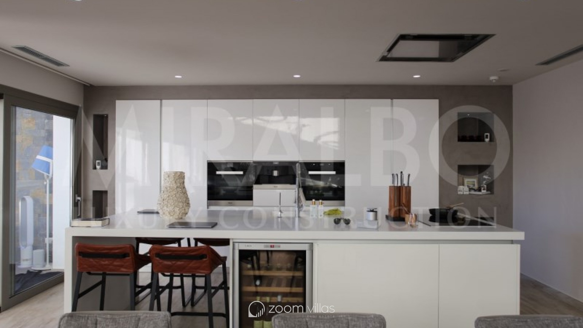 Villa moderne exclusive sur la ligne de front du club de golf Don Cayo à Altea La Vella Découvrez le luxe et l'exclusivité de cette villa au design contemporain, construite en 2015 par la prestigieuse société MIRALBO URBANA S.L. Située dans un cul-de-sac tranquille à côté du célèbre club de golf Don Cayo à Altea La Vella, cette propriété bénéficie d'une position privilégiée qui combine intimité, excellentes vues et une orientation solaire imbattable. La Villa Hierro s'intègre harmonieusement dans le paysage naturel, offrant une expérience de vie unique. Réparti sur deux niveaux, il dispose d'un élégant abri d'auto d'une capacité de deux véhicules. À l'étage supérieur, la propriété dispose de quatre chambres spacieuses, de deux salles de bains complètes et d'un grand débarras avec accès indépendant de l'extérieur. Un élégant escalier mène au rez-de-chaussée, où de hauts plafonds et de grandes fenêtres inondent l'espace de lumière naturelle. Vous y trouverez la luxueuse chambre principale, avec une salle de bains privative moderne, un dressing et un bureau privé, idéale pour travailler à domicile. La villa dispose également d'une cuisine design avec îlot, équipée d'appareils Miele, qui s'ouvre sur le salon et les deux espaces ont un accès direct à une terrasse spacieuse avec une piscine à débordement, d'où vous pourrez profiter d'une vue inégalée. La pierre naturelle utilisée dans les finitions ajoute une touche d'élégance et de sophistication. De plus, la propriété dispose de toilettes invités, d'un grand garde-manger, d'un chauffage au sol et d'une climatisation centrale avec régulation de la température dans toutes les pièces, garantissant un confort maximal à tout moment de l'année. #ref:MRD5-200