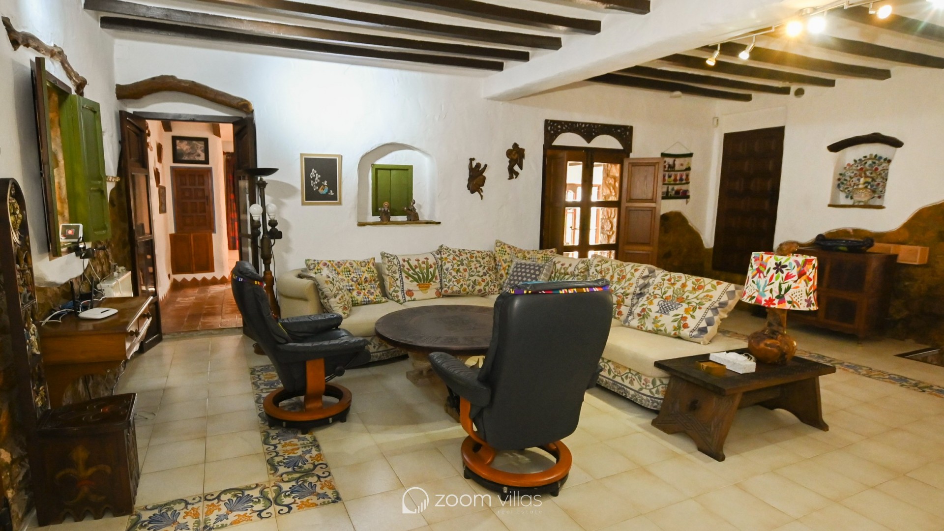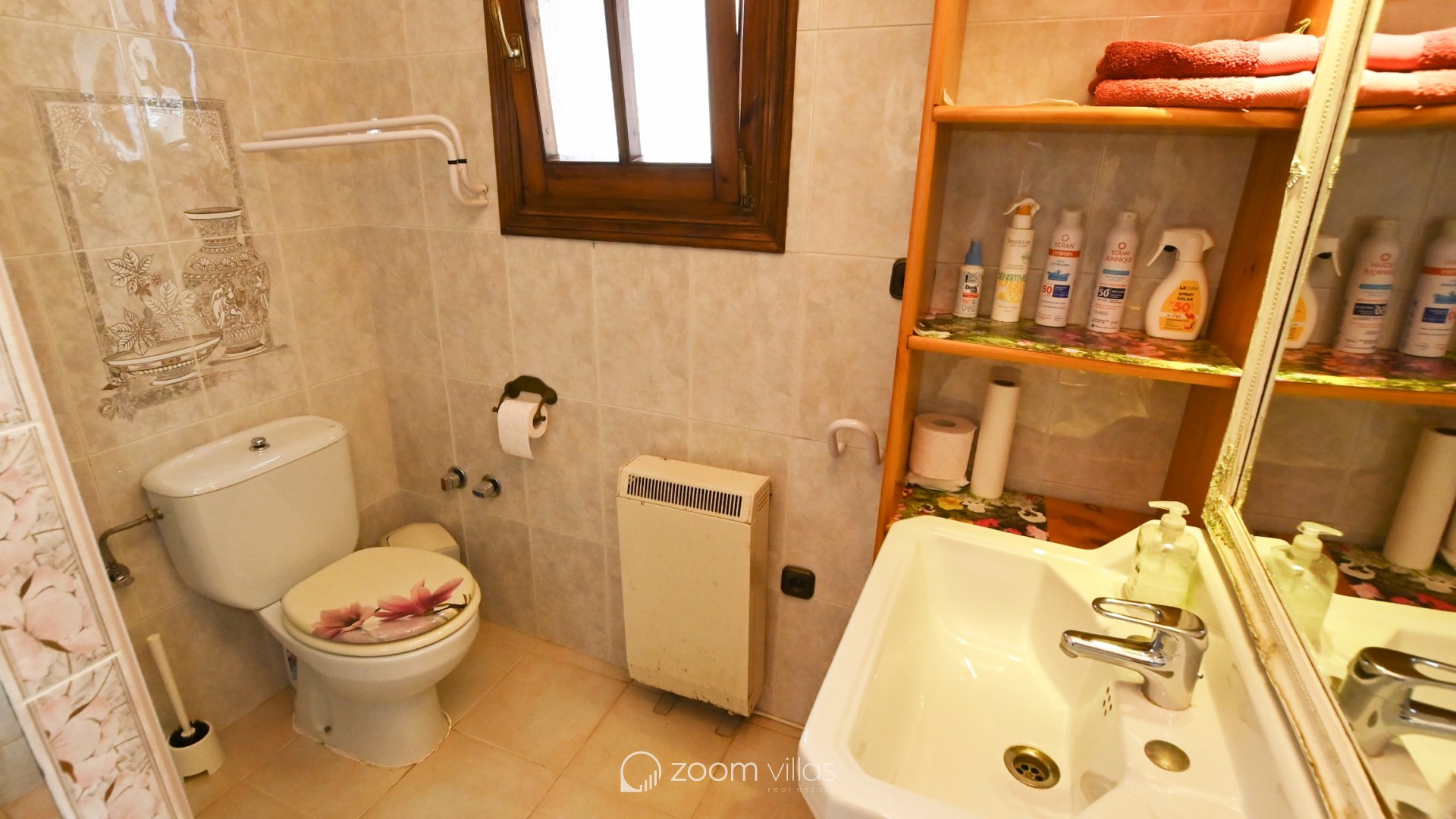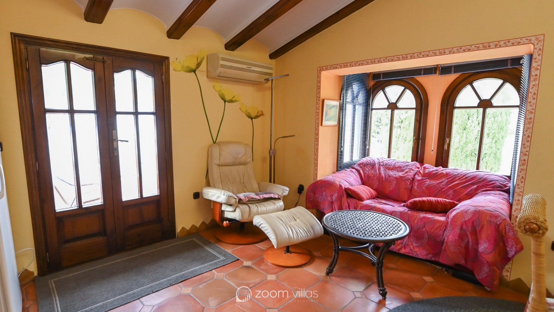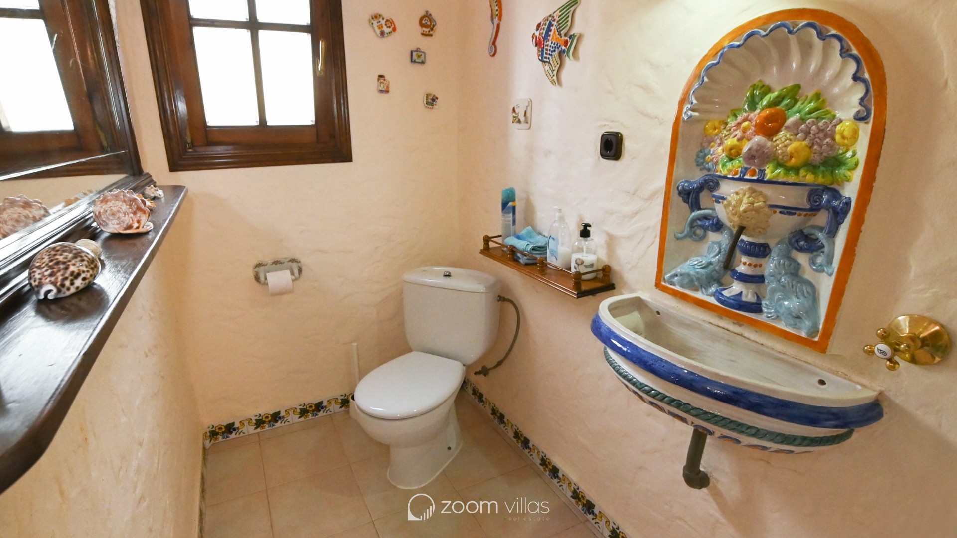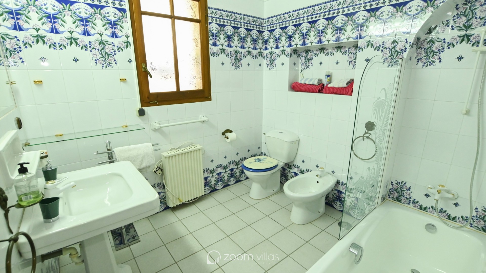 Magnifique et unique finca de plus de 200 ans, rénovée au début des années 90. Elle a une surface habitable de 400m2 sur un terrain rustique de 11.000m2. La propriété a deux étages, reliés par un escalier intérieur. A l´étage : Chambre principale de 36m2 avec air conditionné, TV, armoires encastrées et accès à une terrasse avec une belle vue sur la mer. De la chambre, on accède à la salle de bains attenante avec baignoire, douche, double lavabo, WC et bidet. La salle de bain se trouve juste sous le toit, elle a donc une partie basse, attention à la tête. Chambre double de 25m2 avec air conditionné, sortie sur le balcon et salle de bain attenante avec douche, bidet, lavabo et WC. En bas : 1 chambre double avec lits superposés pour enfants, air conditionné et sortie sur la terrasse extérieure avec vue sur la palmeraie. Salle de bain avec baignoire, bidet, lavabo et WC. 1 chambre double avec climatisation et salle de bain attenante avec douche, lavabo et WC. Salon de 49m2 avec cheminée et accès à un bureau. Salle de jeux. Salle à manger principale de 20m2. Cuisine ouverte avec four, plaque de cuisson au gaz, lave-vaisselle, micro-ondes et coin repas avec vue sur la piscine et la mer. Coin salon à côté de la salle à manger. Buanderie (derrière la maison) avec réfrigérateur et machine à laver. Toilettes. La finca est meublée dans un style rustique avec des meubles et une décoration provenant d´Amérique latine, en particulier de Bolivie, du Chili et du Mexique. Extérieur : Piscine (non clôturée) avec île au milieu, 17m x 9m de large (forme irrégulière), avec des marches romaines, belles vues sur la mer et le Peñon d´Ifach. A côté de la piscine il y a une pelouse avec des palmiers et des vues dégagées. La piscine est entourée d´une grande terrasse avec des meubles d´extérieur, un barbecue intégré, un parasol et une salle à manger intégrée. Zone de palmiers avec cascade, pelouse et grande table ronde pour 8-10 personnes. Parc avec route asphaltée, pins, bougainvilliers, aires de repos et vues dégagées sur la mer. Le jardin est un paradis et entoure la villa. Vous pouvez vous promener entre les sentiers du parc et autour de la propriété. Terrain de pétanque. Douche extérieure juste à côté de la piscine. Murs en pierre naturelle. Parking pour plusieurs voitures (1 couvert). La maison est équipée d´une alarme, de l´éclairage de la piscine, de moustiquaires aux fenêtres des chambres et d´un coffre-fort. A l´extérieur, il y a plusieurs pièces de rangement et un garage. Située à 1,2km de Puerto Blanco, 2,5km du centre de Calpe et 3km de la plage de sable. Supermarché à 2,5km, pharmacie à 2km et restaurant le plus proche à 1km. Aéroport d´Alicante à 70 km et aéroport de Valence à 120 km.