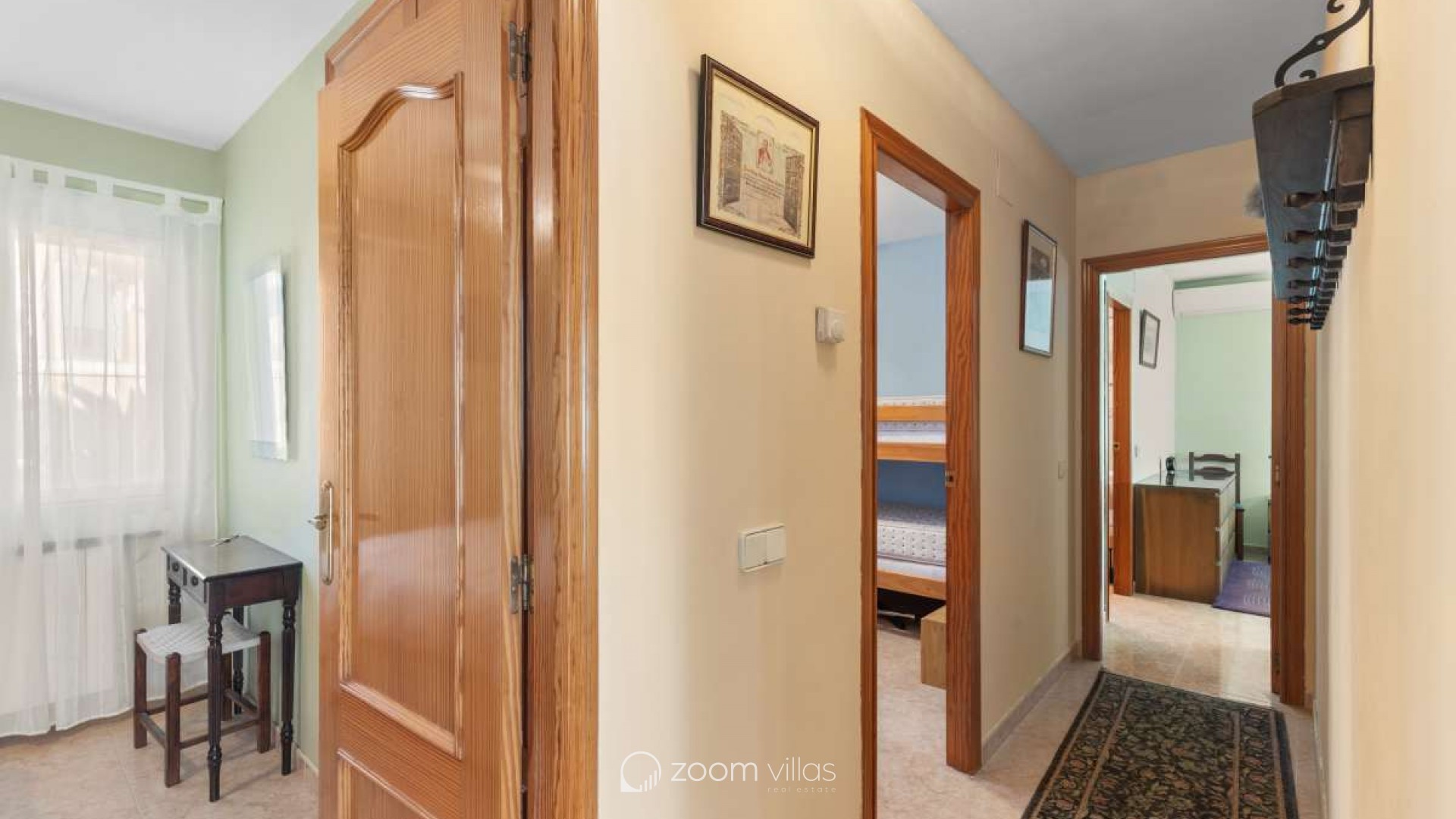 Située dans un quartier résidentiel paisible, cette charmante maison offre un équilibre parfait entre tranquillité et commodités. À quelques minutes en voiture, vous trouverez de magnifiques plages de sable fin, des criques, des bars et restaurants animés, des supermarchés et des écoles internationales. Le quartier est idéal pour des vacances ou pour y vivre à l'année, grâce à son environnement calme, ses infrastructures de qualité et son accès facile à toutes les commodités. Construite en 1998, la maison de plain-pied offre un confort optimal. Une accueillante terrasse couverte donne sur un salon lumineux avec cheminée, créant une ambiance chaleureuse et conviviale en toute saison. La cuisine séparée est fonctionnelle et bien ouverte sur le séjour. L'espace nuit comprend deux chambres, une salle de bain commune et une suite parentale avec salle de bain privative, garantissant intimité et confort à la famille et aux invités. La maison est construite sur un sous-sol pour prévenir l'humidité, assurant ainsi sa durabilité et un climat intérieur sain. Elle est équipée d'un chauffage central au gaz et d'un chauffe-eau électrique, la rendant agréable en toute saison. À l'extérieur, la propriété dispose d'un jardin facile d'entretien, idéal pour un style de vie méditerranéen décontracté. Cette maison offre un parking pour plusieurs voitures, un garage double, ainsi qu'une buanderie et un cellier, pour un quotidien des plus pratiques. Orientée plein sud, elle bénéficie d'un ensoleillement optimal tout au long de la journée, baignant les pièces de lumière naturelle et créant une atmosphère lumineuse et agréable. Solide et bien entretenue, cette maison promet confort, soleil et un cadre de vie exceptionnel, que ce soit comme résidence principale ou secondaire sur la Costa Blanca.