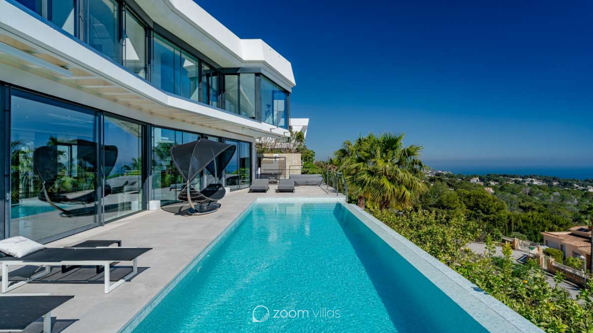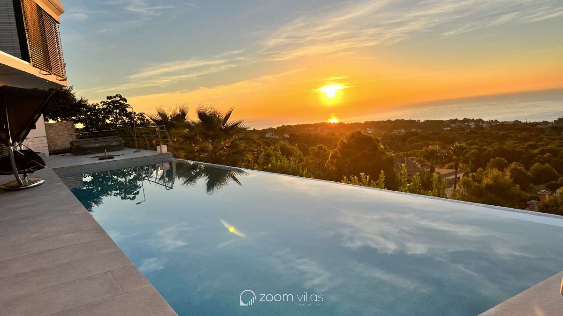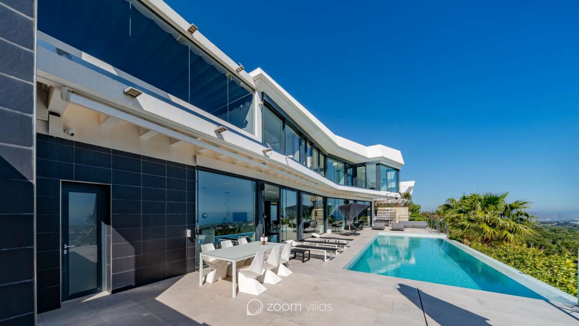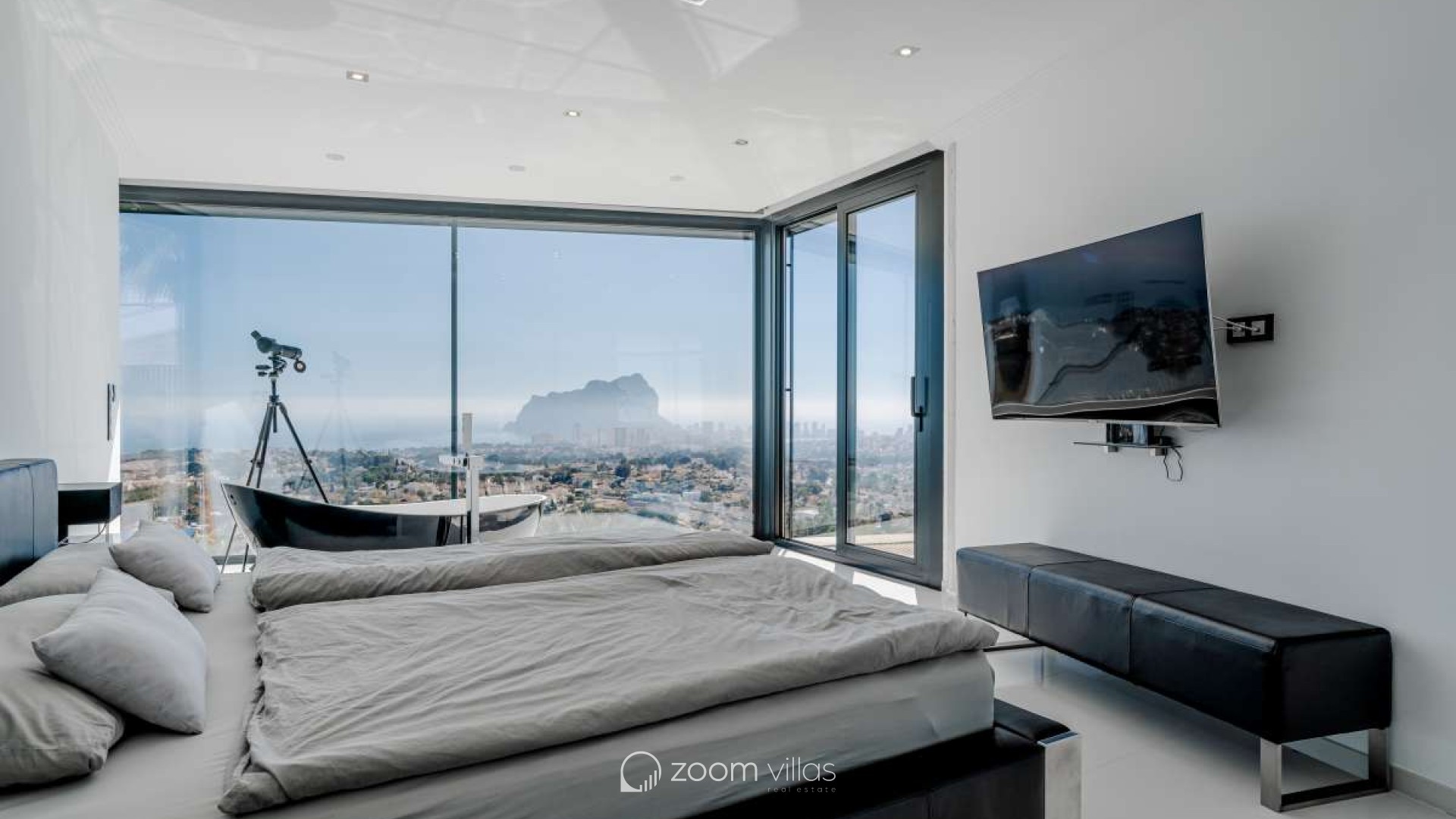 Magnifique villa de luxe à vendre à Calpe, située dans le prestigieux quartier de Gran Sol, à proximité de l'urbanisation exclusive de Rincón de Galeno, l'un des ensembles résidentiels les plus prisés de la Costa Blanca pour son intimité, son élégance et ses vues imprenables sur la Méditerranée. À seulement 2,7 km de la charmante plage de La Fustera et de sa célèbre promenade écologique longeant la côte de Benissa, et à 3,5 km du port de plaisance des Bassetes et de la plage de Levante La Fosa, cette propriété bénéficie d'un emplacement privilégié. Le quartier allie calme absolu et excellente desserte des centres-villes de Calpe et Moraira, où vous trouverez restaurants gastronomiques, boutiques de luxe, services médicaux et une large gamme d'activités de loisirs tout au long de l'année. La villa offre une vue panoramique à couper le souffle à 180° sur la mer et le majestueux Peñón de Ifach, emblème naturel de la Costa Blanca. Son orientation plein sud garantit un ensoleillement optimal et une luminosité exceptionnelle dans toutes les pièces. Située dans une impasse tranquille, cette propriété offre une intimité et une sérénité maximales. Nichée sur un magnifique terrain de 890 m², cette propriété de 560 m² habitables se répartit sur deux étages et un sous-sol, reliés par un ascenseur panoramique en verre et un élégant escalier design en marbre. L'étage supérieur abrite trois chambres spacieuses, chacune avec sa propre salle de bains et une vue imprenable sur la mer. La suite parentale comprend une baignoire îlot sophistiquée, transformant la salle de bains en un véritable havre de bien-être privé. Le rez-de-chaussée offre un spectaculaire espace de vie ouvert de plus de 150 m² intégrant salon, salle à manger et cuisine design avec îlot central, créant une ambiance contemporaine et élégante, idéale pour recevoir. Cet espace s'ouvre directement sur une superbe terrasse de 150 m² agrémentée d'une piscine à débordement chauffée de 15 x 4 mètres, d'un jacuzzi, d'une pergola bioclimatique, d'une cuisine d'été avec barbecue, d'un espace repas extérieur et d'un espace détente exclusif, conçu pour savourer pleinement le style de vie méditerranéen en tout confort. Le niveau inférieur offre un luxe supplémentaire avec une pièce polyvalente dissimulée, une salle de sport entièrement équipée, un sauna, une cave à vin climatisée, une chambre supplémentaire avec salle de bains privative et divers espaces techniques et de service. Cette villa se distingue par son architecture avant-gardiste, ses grandes baies vitrées, sa luminosité exceptionnelle et ses finitions haut de gamme. Elle est équipée d'un chauffage au sol, d'une climatisation gainable via un système aérothermique haute performance, d'une installation photovoltaïque de 8 kW, de menuiseries extérieures de luxe, d'intérieurs design exclusifs, d'un éclairage LED, d'un système d'alarme avec caméras et d'un système de contrôle de l'humidité. Le jardin, conçu avec soin pour s'intégrer harmonieusement à l'architecture contemporaine de la maison, offre un cadre élégant et facile d'entretien grâce à son système d'arrosage automatique. La propriété comprend également un garage fermé pour deux véhicules et un vaste parking extérieur privé. Une résidence d'exception qui allie design, technologie, confort et exclusivité dans l'un des emplacements les plus privilégiés de la Méditerranée.