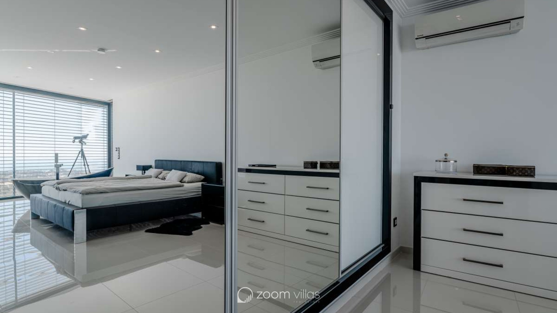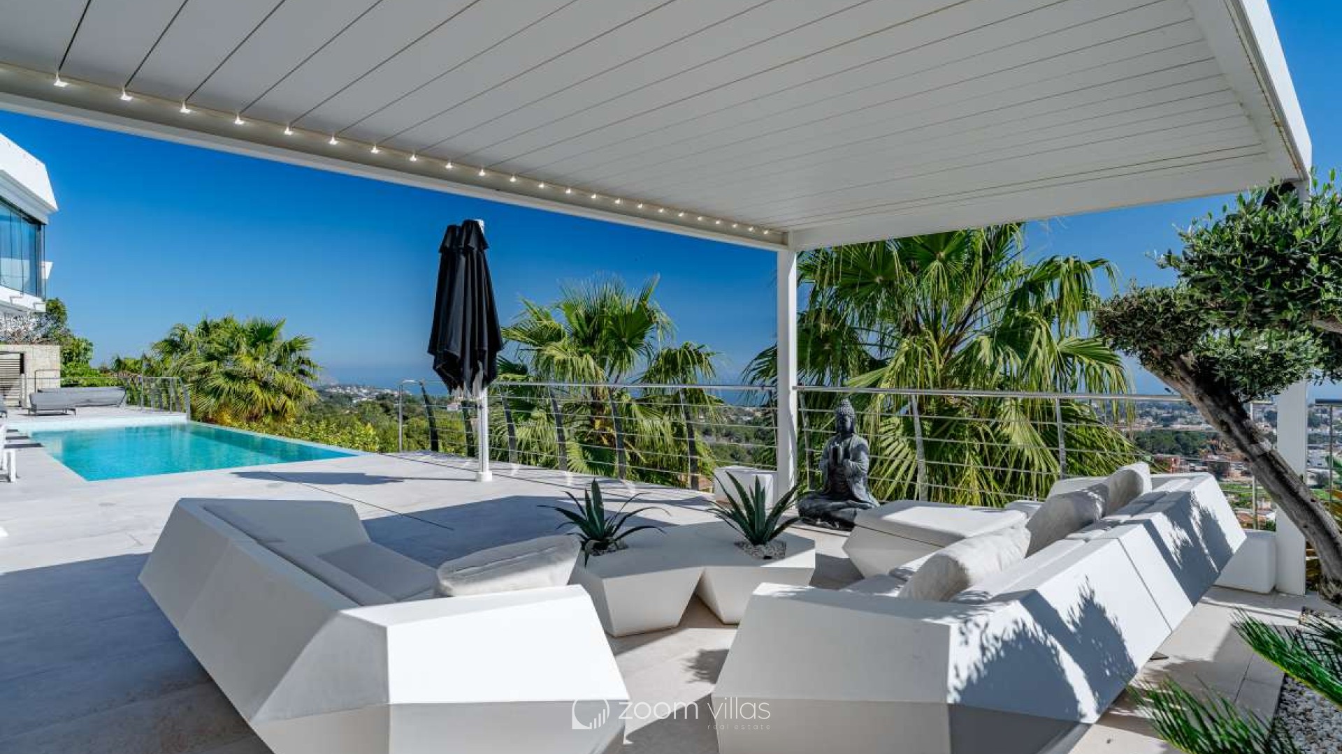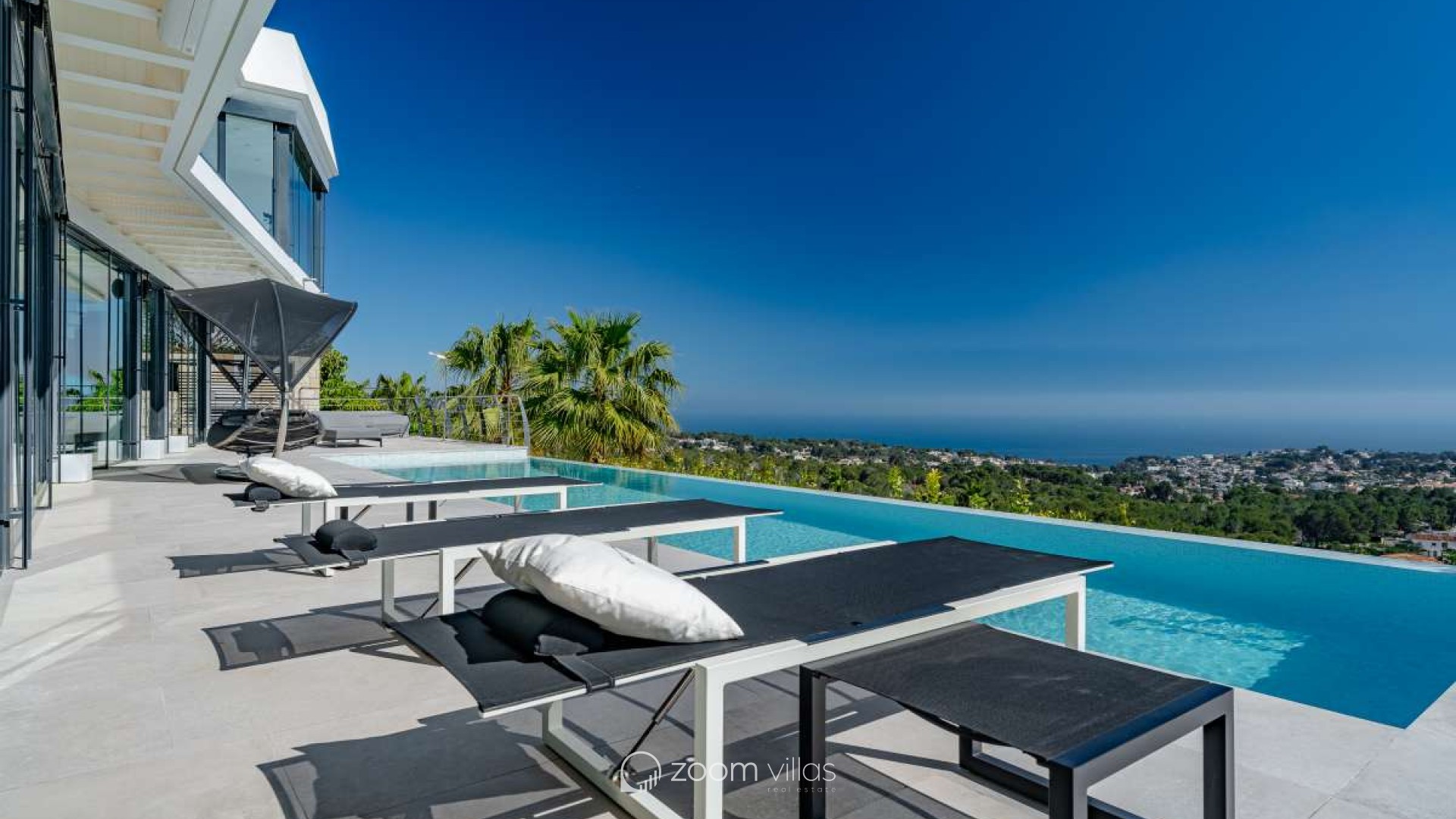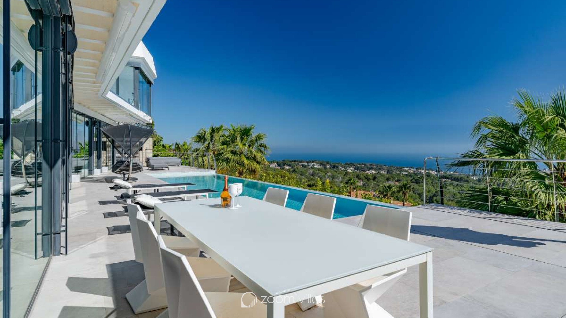 Magnifique villa de luxe à vendre à Calpe, située dans le prestigieux quartier de Gran Sol, à proximité de l'urbanisation exclusive de Rincón de Galeno, l'un des ensembles résidentiels les plus prisés de la Costa Blanca pour son intimité, son élégance et ses vues imprenables sur la Méditerranée. À seulement 2,7 km de la charmante plage de La Fustera et de sa célèbre promenade écologique longeant la côte de Benissa, et à 3,5 km du port de plaisance des Bassetes et de la plage de Levante La Fosa, cette propriété bénéficie d'un emplacement privilégié. Le quartier allie calme absolu et excellente desserte des centres-villes de Calpe et Moraira, où vous trouverez restaurants gastronomiques, boutiques de luxe, services médicaux et une large gamme d'activités de loisirs tout au long de l'année. La villa offre une vue panoramique à couper le souffle à 180° sur la mer et le majestueux Peñón de Ifach, emblème naturel de la Costa Blanca. Son orientation plein sud garantit un ensoleillement optimal et une luminosité exceptionnelle dans toutes les pièces. Située dans une impasse tranquille, cette propriété offre une intimité et une sérénité maximales. Nichée sur un magnifique terrain de 890 m², cette propriété de 560 m² habitables se répartit sur deux étages et un sous-sol, reliés par un ascenseur panoramique en verre et un élégant escalier design en marbre. L'étage supérieur abrite trois chambres spacieuses, chacune avec sa propre salle de bains et une vue imprenable sur la mer. La suite parentale comprend une baignoire îlot sophistiquée, transformant la salle de bains en un véritable havre de bien-être privé. Le rez-de-chaussée offre un spectaculaire espace de vie ouvert de plus de 150 m² intégrant salon, salle à manger et cuisine design avec îlot central, créant une ambiance contemporaine et élégante, idéale pour recevoir. Cet espace s'ouvre directement sur une superbe terrasse de 150 m² agrémentée d'une piscine à débordement chauffée de 15 x 4 mètres, d'un jacuzzi, d'une pergola bioclimatique, d'une cuisine d'été avec barbecue, d'un espace repas extérieur et d'un espace détente exclusif, conçu pour savourer pleinement le style de vie méditerranéen en tout confort. Le niveau inférieur offre un luxe supplémentaire avec une pièce polyvalente dissimulée, une salle de sport entièrement équipée, un sauna, une cave à vin climatisée, une chambre supplémentaire avec salle de bains privative et divers espaces techniques et de service. Cette villa se distingue par son architecture avant-gardiste, ses grandes baies vitrées, sa luminosité exceptionnelle et ses finitions haut de gamme. Elle est équipée d'un chauffage au sol, d'une climatisation gainable via un système aérothermique haute performance, d'une installation photovoltaïque de 8 kW, de menuiseries extérieures de luxe, d'intérieurs design exclusifs, d'un éclairage LED, d'un système d'alarme avec caméras et d'un système de contrôle de l'humidité. Le jardin, conçu avec soin pour s'intégrer harmonieusement à l'architecture contemporaine de la maison, offre un cadre élégant et facile d'entretien grâce à son système d'arrosage automatique. La propriété comprend également un garage fermé pour deux véhicules et un vaste parking extérieur privé. Une résidence d'exception qui allie design, technologie, confort et exclusivité dans l'un des emplacements les plus privilégiés de la Méditerranée.
