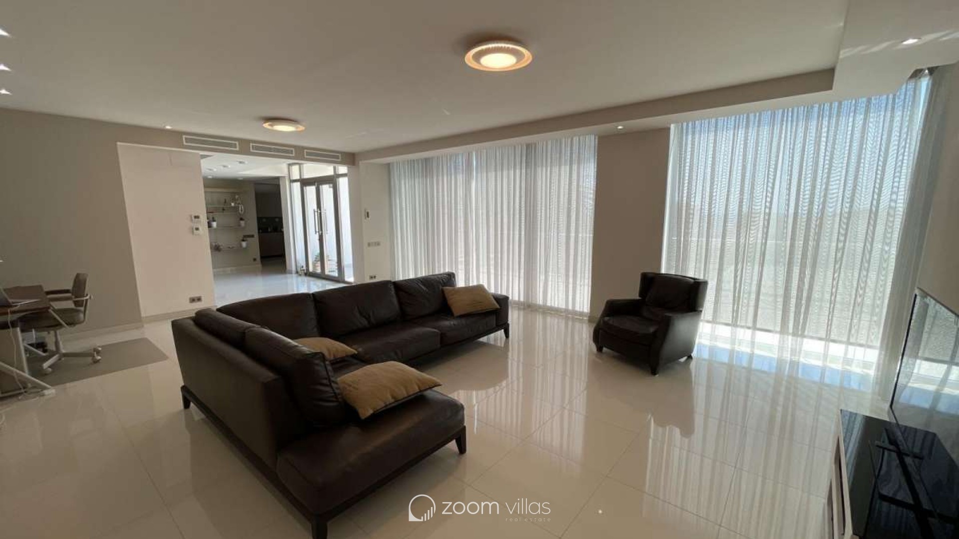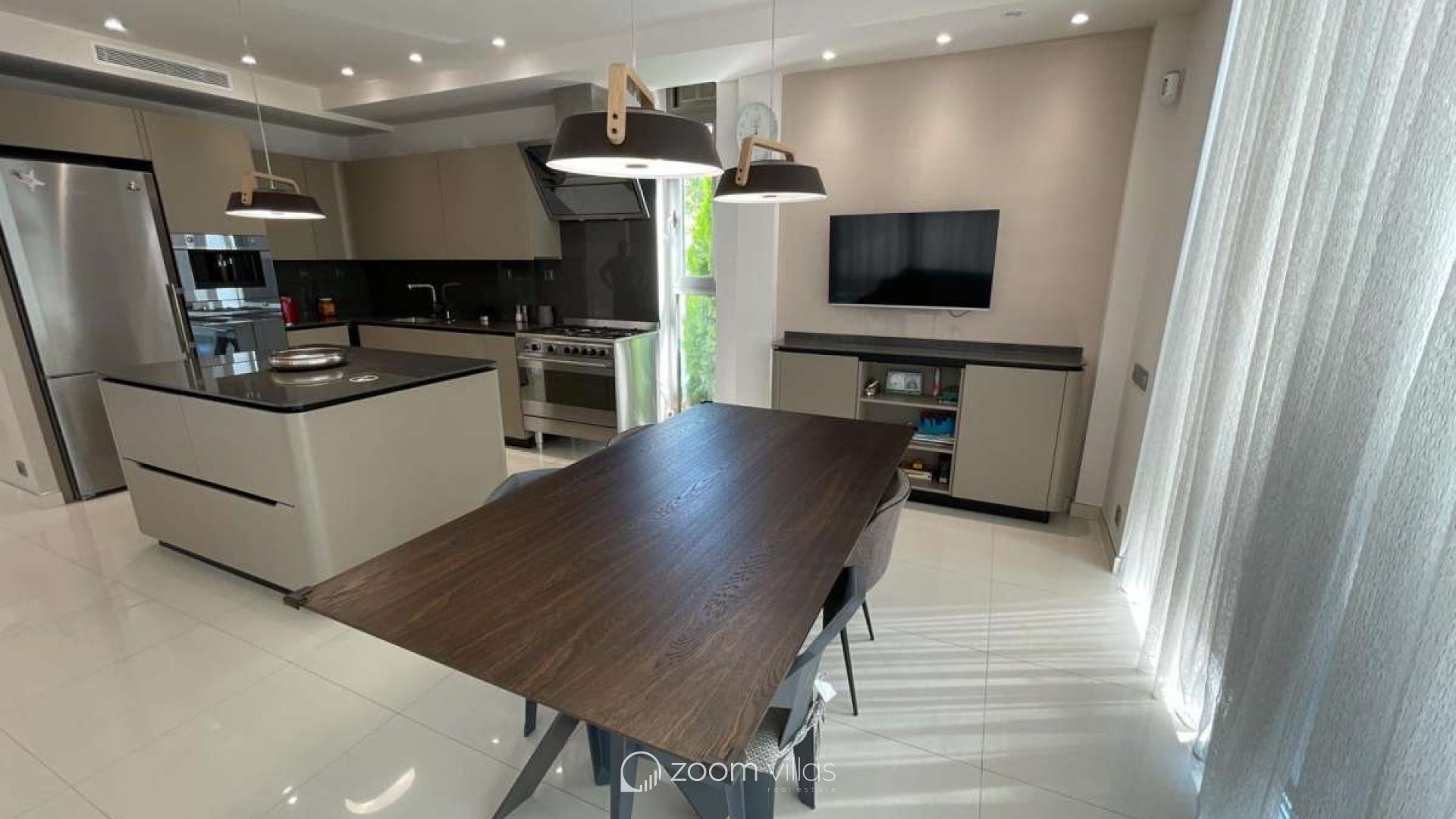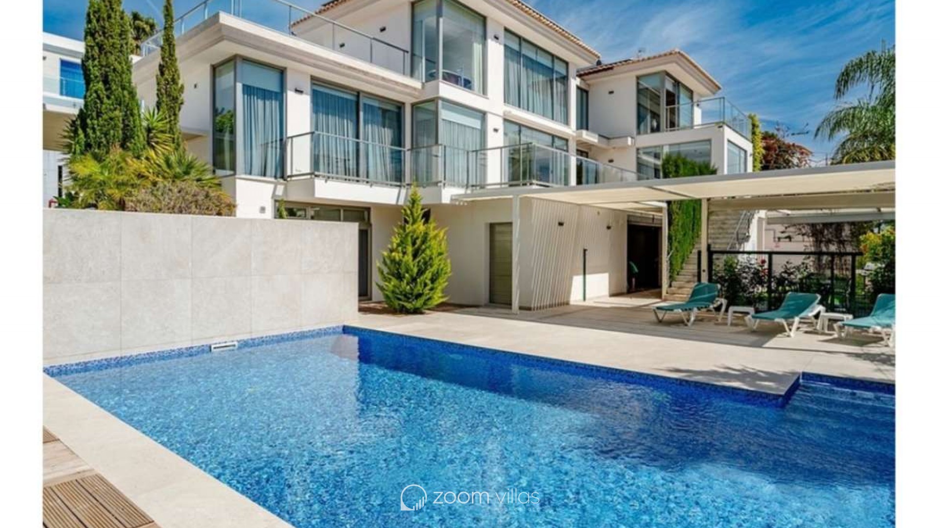 Cette villa moderne d'exception bénéficie d'une situation idéale dans l'un des quartiers les plus prisés de Calpe, à deux pas de la mer et à proximité des plages réputées de La Fossa et La Fustera. Orientée plein sud, elle offre un ensoleillement optimal tout au long de la journée, une intimité préservée et un style de vie méditerranéen authentique – parfait comme résidence secondaire ou principale. Construite en 2019 sur un terrain de 800 m², la villa propose 395 m² de surface habitable répartis sur deux niveaux et un demi-sous-sol. Elle se distingue par son architecture contemporaine, ses matériaux haut de gamme et ses vues panoramiques à couper le souffle sur la mer et l'emblématique Peñón de Ifach. Le rez-de-chaussée comprend un hall d'entrée élégant, une chambre spacieuse avec dressing et salle de bains privative, des toilettes invités et une cuisine américaine moderne avec îlot central, ouverte sur une salle à manger lumineuse. L'impressionnant séjour de 70 m² s'ouvre sur une vaste terrasse de 60 m² équipée de stores automatiques, créant une harmonie parfaite entre intérieur et extérieur. À l'étage, deux chambres spacieuses disposent chacune d'un dressing, d'une salle de bains privative (dont une avec baignoire îlot) et d'une terrasse offrant une vue imprenable. Le demi-sous-sol offre un espace de vie supplémentaire comprenant deux chambres, une salle de bains complète, une pièce multifonctionnelle de 25 m² pouvant servir de salle de cinéma, de salle de sport ou de salle de jeux, ainsi qu'une buanderie et un espace de rangement. Ce niveau peut également être aménagé en appartement indépendant avec entrée privée. L'espace extérieur est conçu pour un confort et une détente absolus : un magnifique jardin paysager avec arrosage automatique, une grande terrasse avec pergola en aluminium, une piscine d'eau salée rectangulaire de 9,5 x 5 m, une cuisine d'été entièrement équipée avec barbecue et store rétractable, et un sauna privé pouvant accueillir jusqu'à cinq personnes. Cette villa offre des prestations exceptionnelles, notamment le chauffage au sol, la climatisation, un système photovoltaïque pour une efficacité énergétique optimale, des menuiseries haut de gamme, des salles de bains design, une cuisine entièrement équipée, un système d'alarme avec caméras, un éclairage LED et un vaste parking couvert pour deux véhicules. Elle allie à la perfection luxe moderne, confort et emplacement idéal – une opportunité remarquable pour ceux qui recherchent une propriété d'exception sur la Costa Blanca.