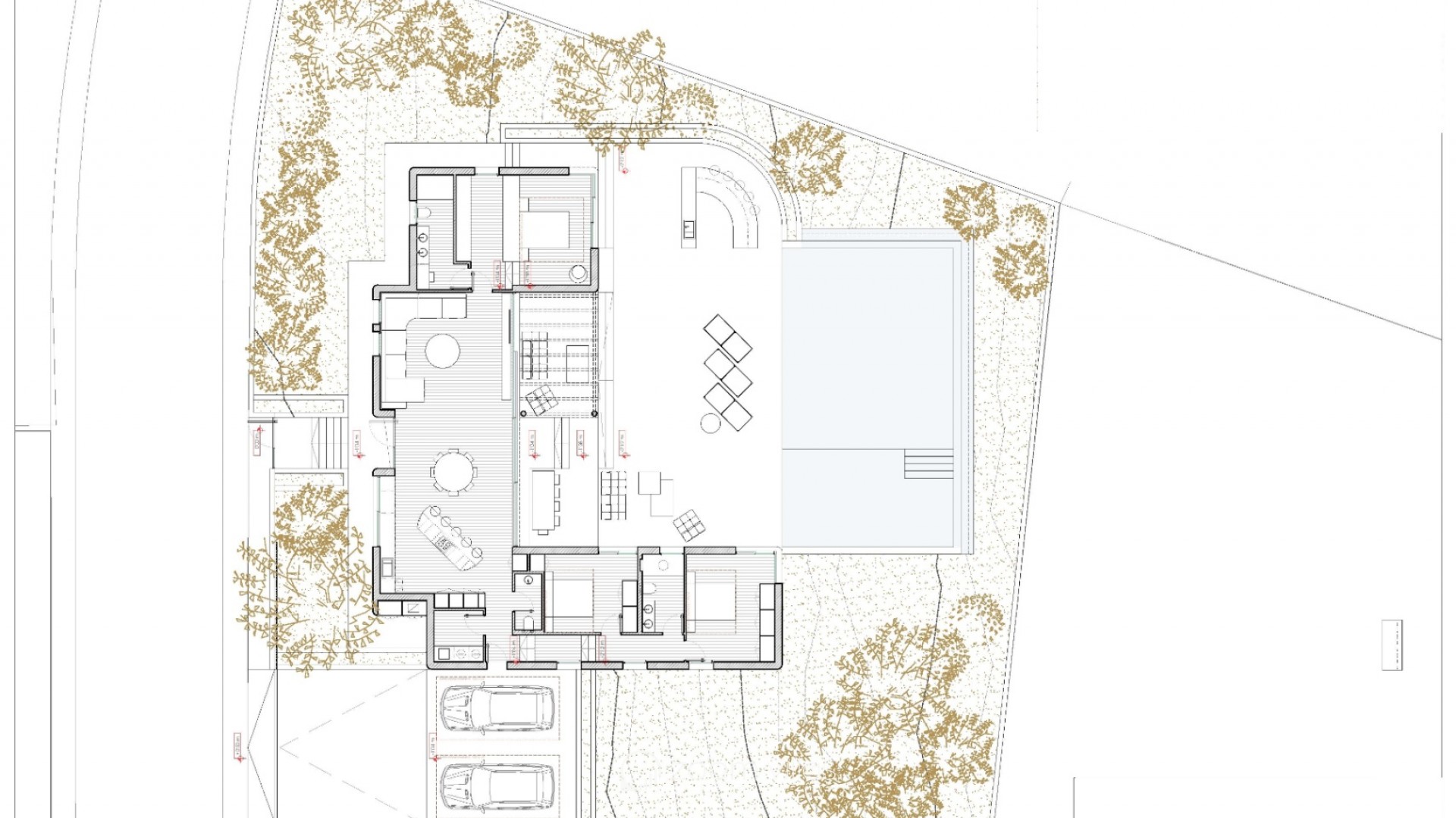 Buiten zijn er overdekte terrassen, een privézwembad, een bar, een carport en extra parkeerruimte.
