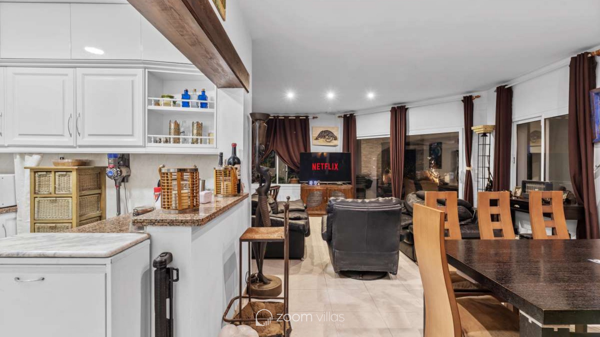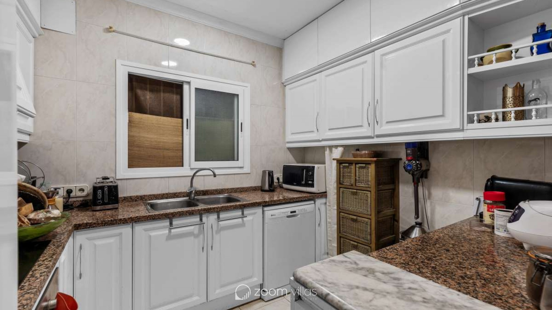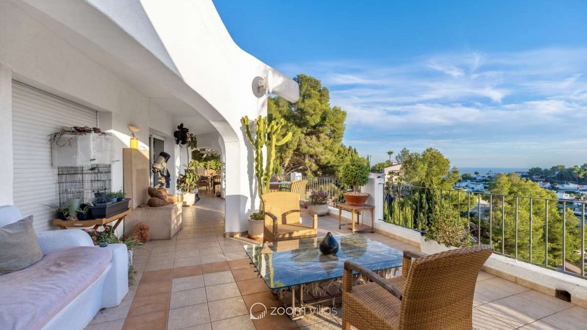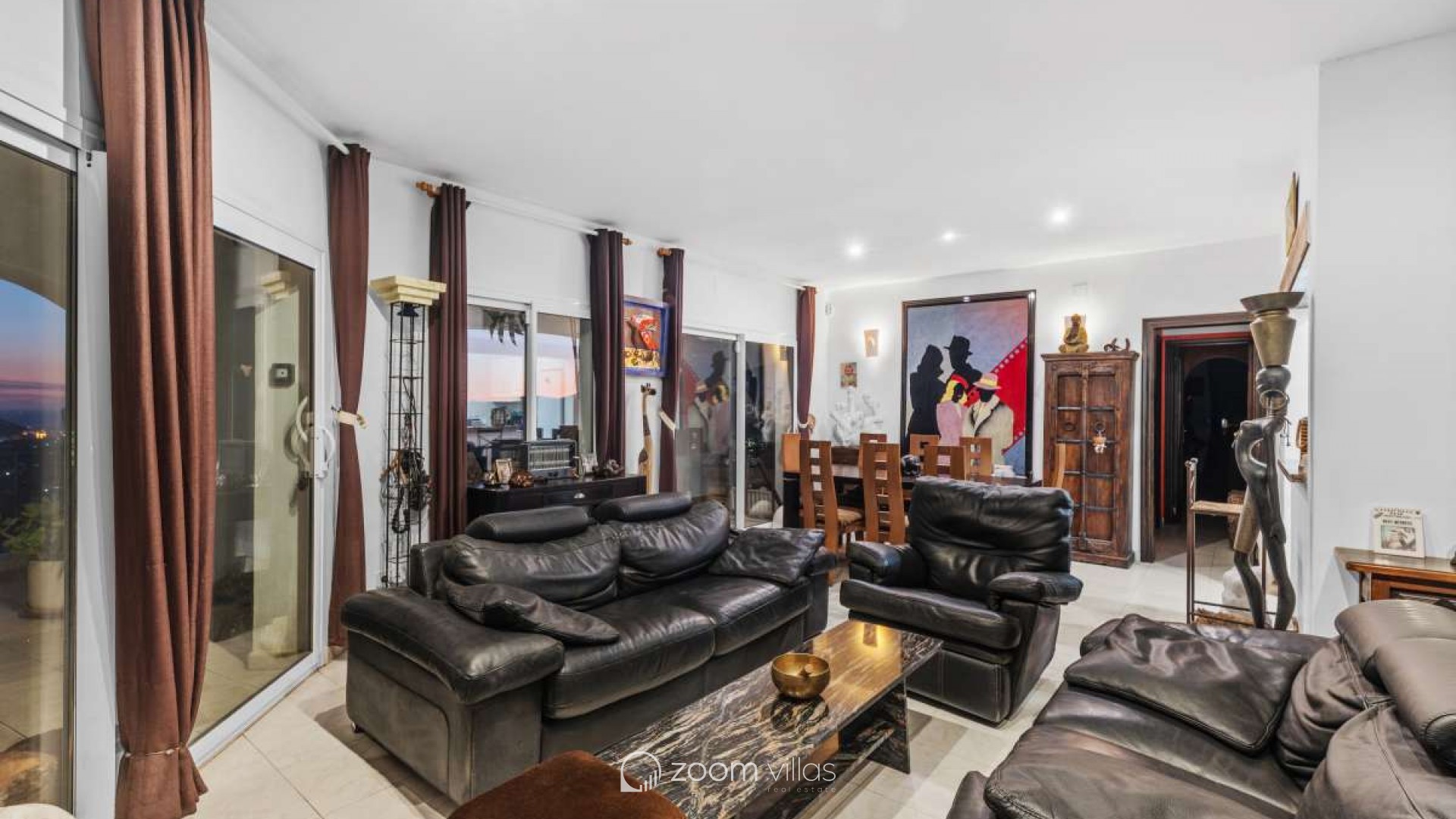 Deze charmante mediterrane villa, gelegen in een van de meest rustige en gewilde woonwijken van Benissa, biedt een adembenemend uitzicht op zee en de iconische Peñón de Ifach. Gelegen op korte rijafstand van zandstranden, restaurants, supermarkten en het bruisende stadje Calpe, combineert de woning comfort, privacy en een uitzonderlijke omgeving. Gebouwd in 2000, is het huis verdeeld over drie volledig onafhankelijke verdiepingen, elk met een eigen ingang - ideaal voor grote gezinnen, het ontvangen van gasten of het genereren van huurinkomsten. Eerste verdieping: De eerste verdieping beschikt over een lichte studio-stijl keuken met directe toegang tot een gezellig terras - perfect voor ochtendkoffie met een zeebriesje. Deze verdieping omvat ook twee slaapkamers met een gedeelde badkamer. Beide slaapkamers bieden een prachtig uitzicht op zee en de Peñón, wat een serene en ontspannen sfeer creëert. Tweede verdieping: De tweede verdieping beschikt over een ruim terras met uitzicht op Calpe en de glinsterende Middellandse Zee. Binnen vindt u een royale woonkamer, een volledig uitgeruste keuken, drie slaapkamers en twee badkamers. Deze verdieping is perfect als de belangrijkste woonruimte van het huis en biedt comfort en ruimte voor het dagelijks leven. Derde verdieping: De bovenste verdieping biedt een charmante kleine tuin, een keuken in studiostijl, een badkamer en twee extra slaapkamers. Deze verdieping biedt volledige privacy en onafhankelijkheid, waardoor het ideaal is voor gasten of een uitgebreide familie. Extra voorzieningen: Privégarage, Buitenparkeerplaats, Zwembad, Eigen ingangen op elke verdieping, Rustige en privélocatie. Deze woning is een geweldige kans voor wie op zoek is naar een veelzijdige woning met een prachtig uitzicht, royale buitenruimtes en een onovertroffen locatie nabij de kust.