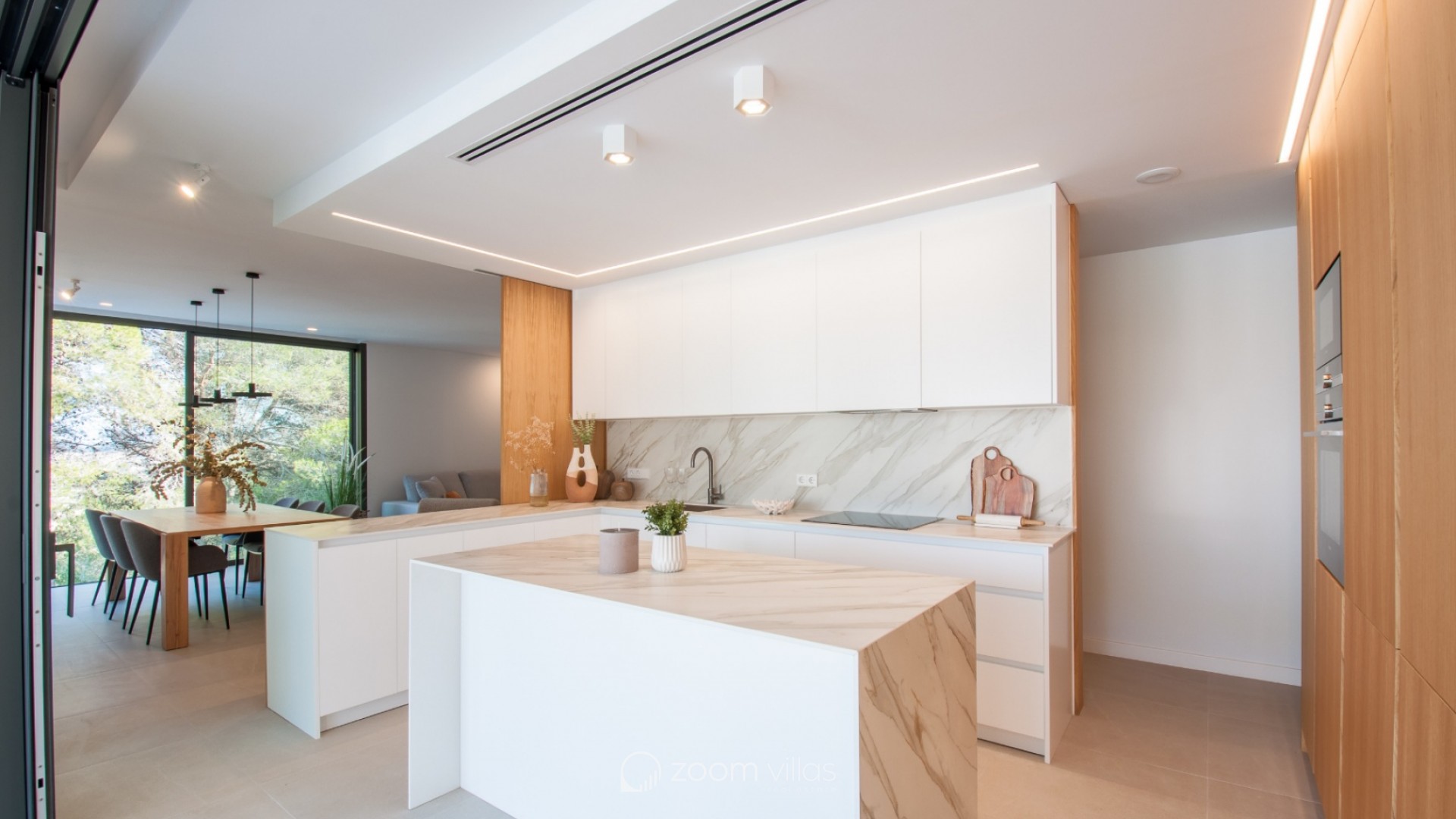 EXCLUSIEVE, DUURZAAM ONTWORPEN VILLA OP SLECHT 4 KM VAN MORAIRAGelegen op slechts 4 km van Moraira en haar schitterende stranden, ligt deze unieke, duurzame villa, ontworpen met gebruik van lokale, natuurlijke materialen. De woning combineert moderne architectuur met een hoog niveau van comfort en energie-efficiëntie. De villa is verdeeld over drie verdiepingen. In het souterrain bevindt zich parkeergelegenheid voor twee voertuigen, een berging, een technische ruimte en de verticale circulatiekern die alle niveaus met elkaar verbindt. Op de begane grond bevindt zich het leefgedeelte met een en-suite slaapkamer, een open woon- en eetkamer met keuken, en een prachtig buitenterras met zwembad. Het terras wordt omringd door niveaus met inheemse beplanting die perfect samengaan met het mediterrane landschap. Op de bovenverdieping bevinden zich drie slaapkamers, waaronder een en-suite hoofdslaapkamer met een aparte kleedruimte en een ruim terras. Belangrijkste kenmerken4 ruime slaapkamers met veel natuurlijk licht4 complete badkamers met hoogwaardige afwerkingPrivézwembad met voorinstallatie voor verwarming en aangelegde mediterrane buitenzonesGrote terrassen op beide verdiepingen, ideaal om te ontspannen en te genieten van het klimaatAirconditioning in de gehele woning met temperatuurregeling per kamerVloerverwarmingBuitenschrijnwerk van topkwaliteit met thermische onderbreking voor optimale isolatieVoorinstallatie van een beveiligingssysteemBarbecuezoneSouterrain met fitnessruimte en wasruimteDubbele garage en extra bergruimteDe villa is voorzien van platte daken met grindafwerking en hoogwaardige zwarte aluminium kozijnen met thermische onderbreking. Binnen vinden we uitstekende afwerkingen, waaronder porseleinen vloertegels door de gehele woning en op de terrassen. De keuken beschikt over een marmeren werkblad en kasten in eikenmelamine, terwijl de badkamers zijn uitgerust met keramische tegels van nationale merken en sanitair van hoogwaardige kwaliteit. Daarnaast zal de woning worden uitgerust met een AEROTERMIA-systeem voor airconditioning en vloerverwarming of radiatoren door het hele huis. Het perceel wordt volledig omheind met betonnen wanden en natuurstenen muren, en beschikt over een overdekte voetgangersingang en een gemotoriseerde toegangspoort voor voertuigen. Op zoek naar een woning aan de Costa Blanca?Ontdek onze zorgvuldig geselecteerde villa’s aan de Costa Blanca, waar mediterrane charme en modern comfort samenkomen. Of u nu verhuist, investeert of op zoek bent naar een tweede huis, dit is slechts een van de vele uitzonderlijke mogelijkheden in een van de meest gewilde kustgebieden van Spanje. Moraira Invest Group, makelaars in Moraira, begeleidt u bij elke stap van het aankoopproces — van de eerste bezichtiging tot de sleuteloverdracht.
