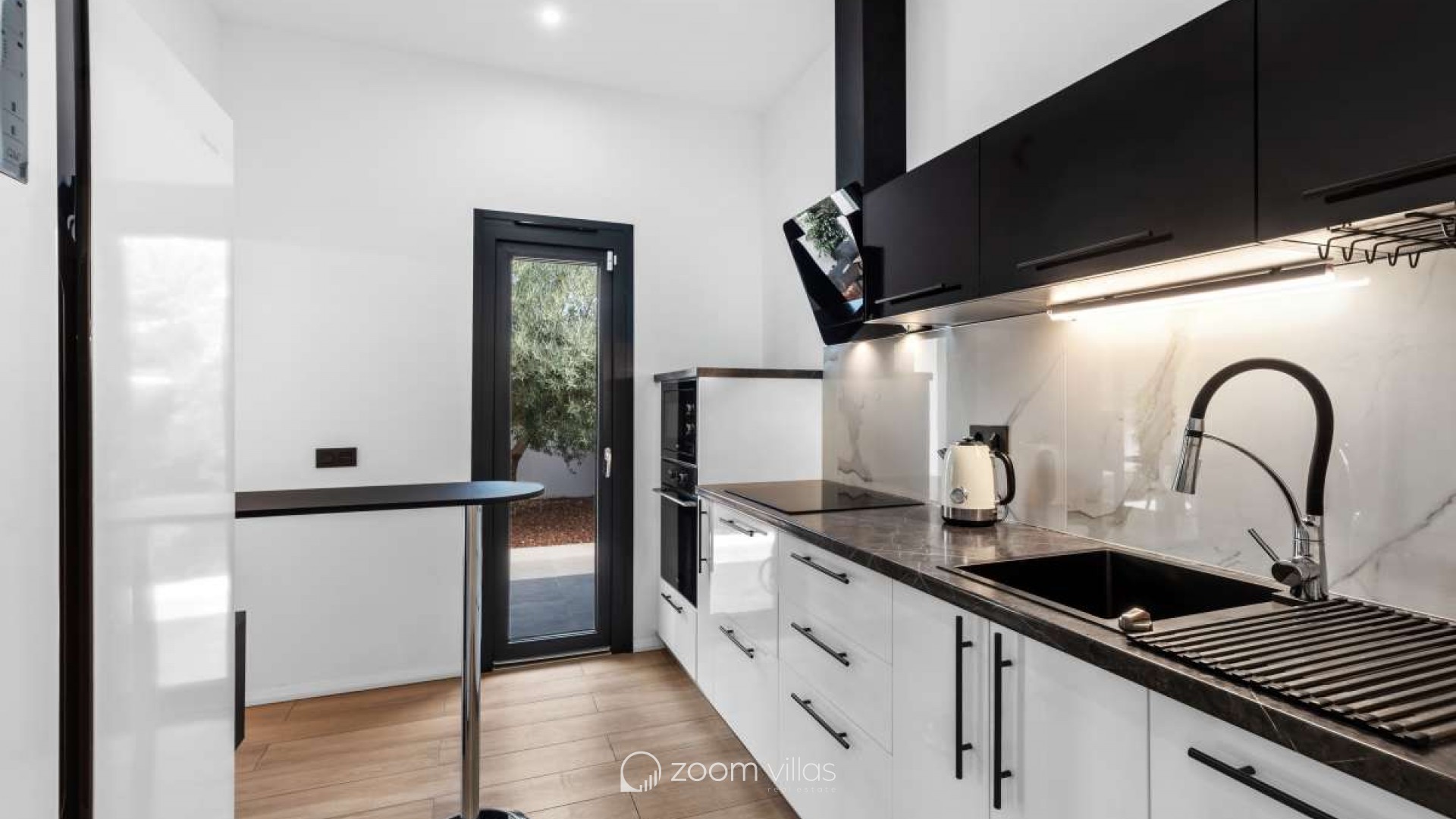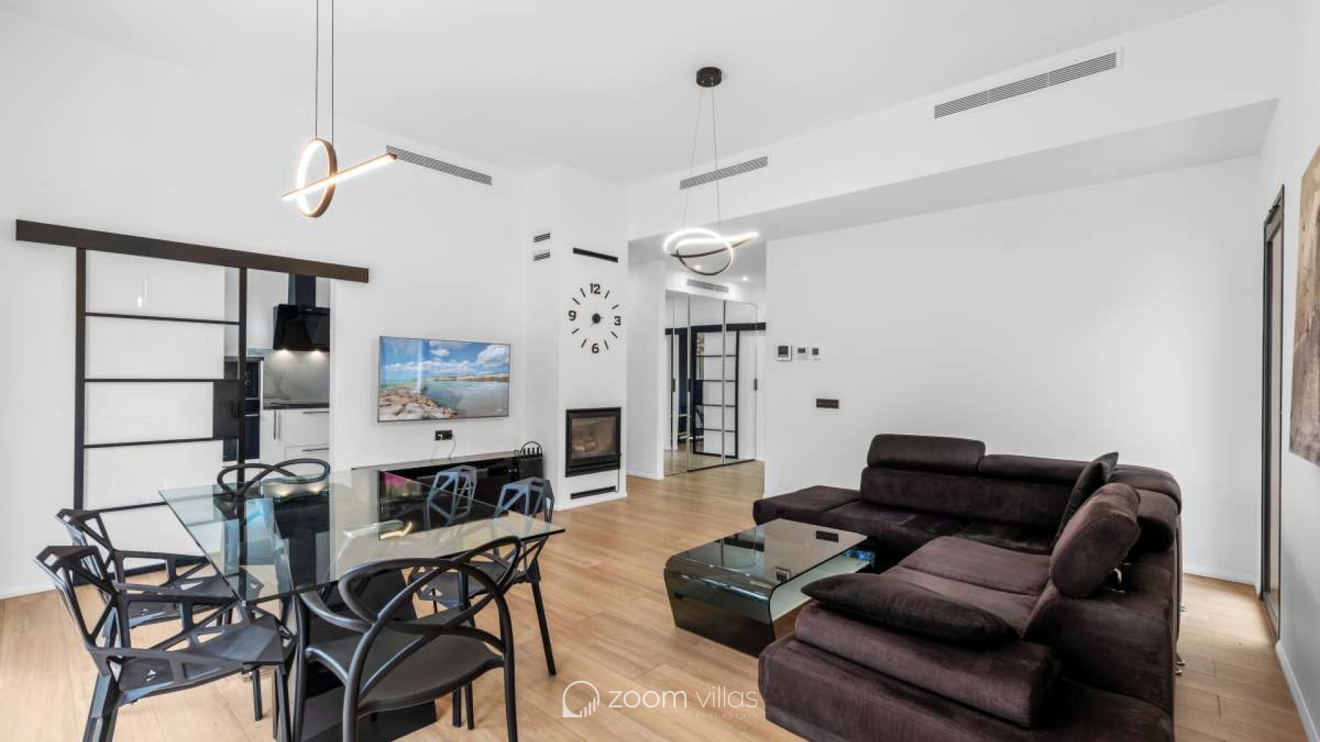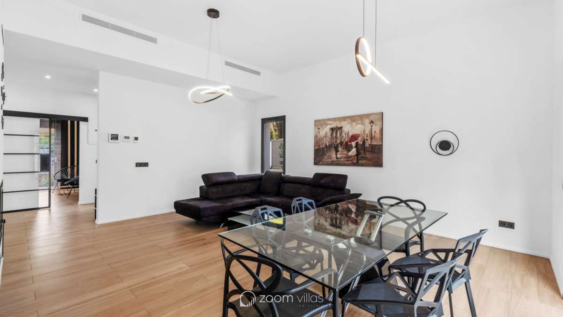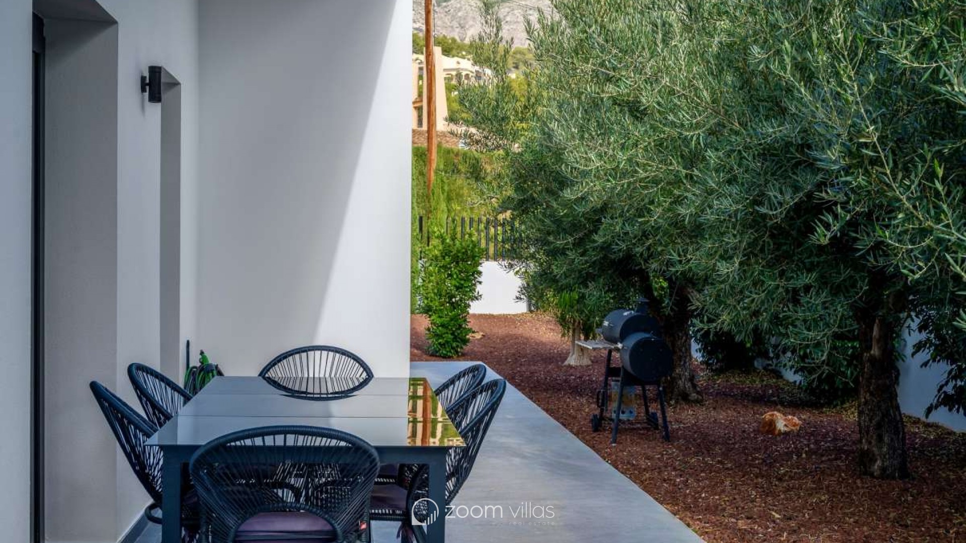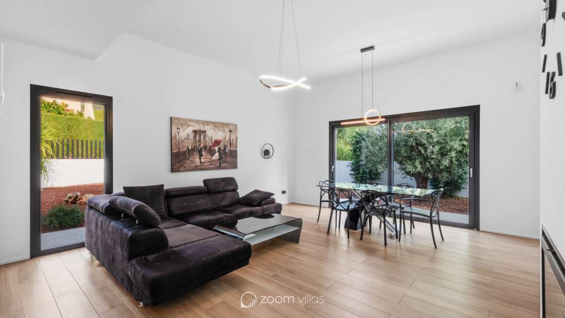 Deze woning is gelegen in de exclusieve woonwijk Santa Clara, vlakbij Altea, en geniet van een rustige en privéomgeving, terwijl alle essentiële voorzieningen toch binnen handbereik zijn. De Middellandse Zeekust en stranden liggen op slechts 5-8 minuten afstand, het stadje Altea met zijn restaurants en bars is binnen 5-10 minuten te bereiken en diverse golfbanen zijn in circa 10-30 minuten met de auto te bereiken. De internationale luchthaven van Alicante ligt op ongeveer 60-65 minuten afstand, waardoor dit een ideale woning is voor zowel permanent wonen als vakanties. Deze vrijstaande, moderne villa, gebouwd in 2021, combineert perfect modern design met alledaagse functionaliteit en biedt een harmonieuze mix van verfijning en comfort. De strakke architectonische lijnen en neutrale stijl maken het voor de nieuwe eigenaar gemakkelijk om een persoonlijke decoratieve touch toe te voegen. De woning is direct te betrekken en behoeft geen renovatie. Met een royale woonoppervlakte van 226 m² staat de villa op een vlak perceel van 840 m² en profiteert van een ligging op het zuiden, wat zorgt voor overvloedig natuurlijk licht gedurende de dag en een warme, uitnodigende sfeer. Of u nu op zoek bent naar een stijlvolle gezinswoning of een luxe mediterrane retraite, deze villa past zich moeiteloos aan uw wensen aan met vier goed ingerichte slaapkamers en drie elegante badkamers. Het doordacht ontworpen interieur beschikt over een lichte en uitnodigende woonkamer met een houtkachel, perfect voor een gezellige sfeer op koelere avonden. Grenzend aan de woonkamer bevindt zich de aparte keuken, een waar hoogtepunt, volledig uitgerust met hoogwaardige apparatuur en aangevuld met een aparte wasruimte voor extra gemak. Buiten nodigt een terras van 10 m² u uit om te genieten van het uitzonderlijke mediterrane klimaat van Altea. De privétuin maakt eveneens indruk met een barbecue en een prachtig zoutwaterzwembad van 27 m², voorbereid voor verwarmd water, zodat u er het hele jaar door van kunt genieten. Een privésauna completeert de buitenbeleving en biedt maximale ontspanning voor zowel bewoners als gasten. Elk detail van deze villa is zorgvuldig overwogen om comfort en levenskwaliteit te verhogen. De woning beschikt over een eigen parkeerplaats voor twee auto's, extra bergruimte en inbouwkasten in de slaapkamers. Airconditioning en centrale verwarming zorgen het hele jaar door voor comfort. Milieubewuste kopers zullen de zonnepanelen waarderen, die de energie-efficiëntie van de woning verbeteren. Geluidsisolerend dubbel glas zorgt voor uitstekende isolatie en rust, terwijl elektrische rolluiken en een versterkte veiligheidsdeur zowel veiligheid als gemak bieden. Met zijn elegante ontwerp, hoogwaardige voorzieningen en zeer gewilde locatie nabij de zee en het stadje Altea, biedt deze villa een uitzonderlijke kans om een verfijnde woning te bezitten in een van de meest gewilde kustplaatsen van Spanje.